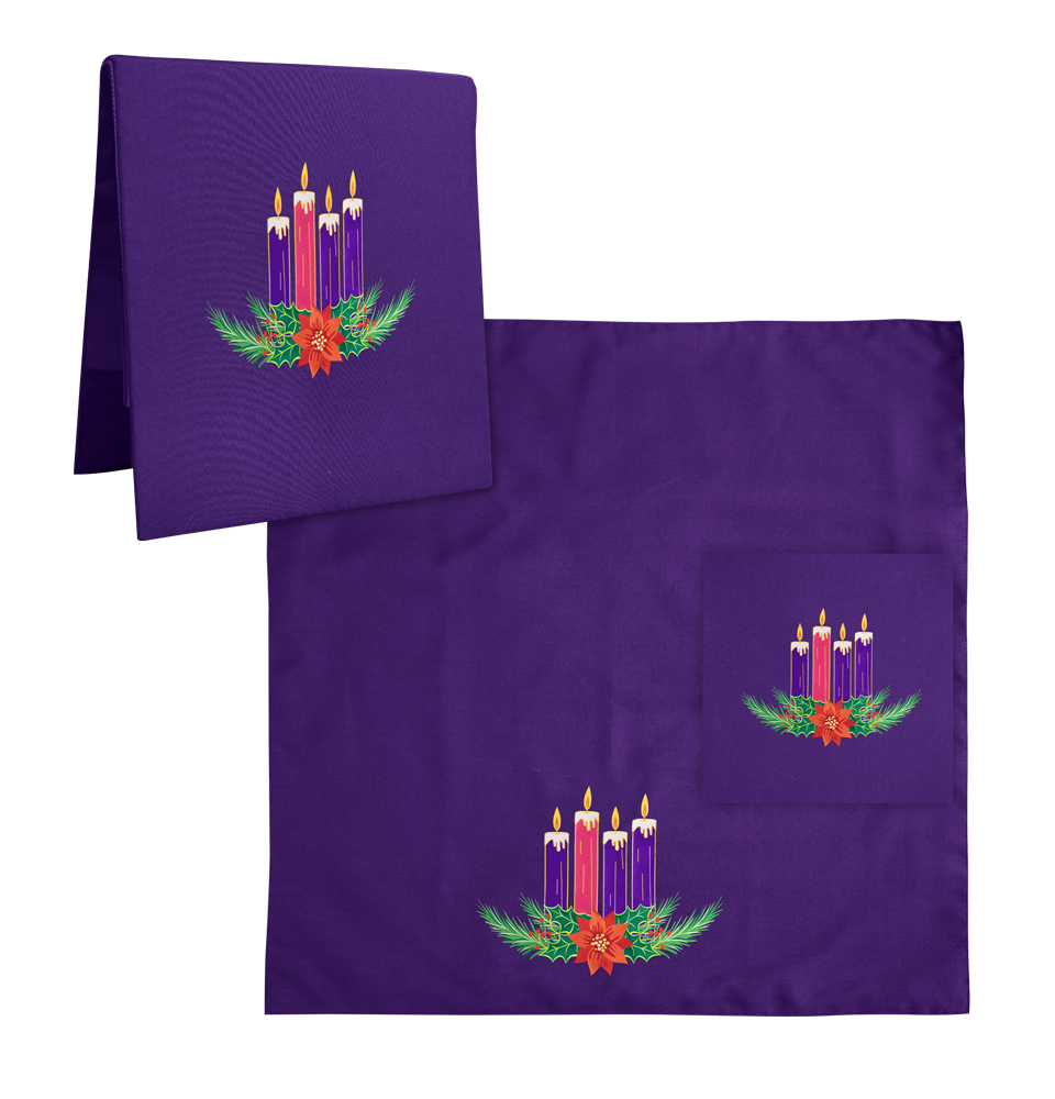 Celebrate Advent with our Advent Paraments Collection, featuring superfrontals, pulpit falls, banners, mass sets, and antependium. Crafted for beauty and reverence, each piece enriches the sacred atmosphere with traditional colors and elegant designs for the Advent season.