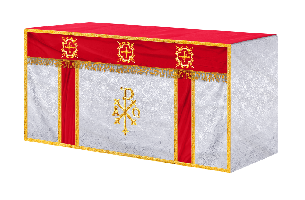 Enhance your sanctuary with the Church Altar Cloth with Spiritual Cross, crafted from premium damask fabric. Each cloth is carefully selected for luxury, durability, and elegance, making it perfect for churches, chapels, and sacred ceremonies. The fully interlined satin drop ensures a lavish drape that maintains its beauty through repeated use.