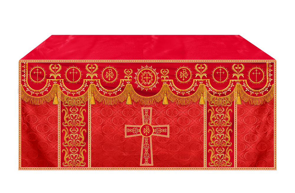 Elevate your sanctuary with the liturgical Altar Cloth Adorned with Detailed Trims and Motif, a perfect blend of sacred tradition and fine craftsmanship. Each cloth is handcrafted by skilled artisans, reflecting timeless beauty, devotion, and the dignity of your worship space.