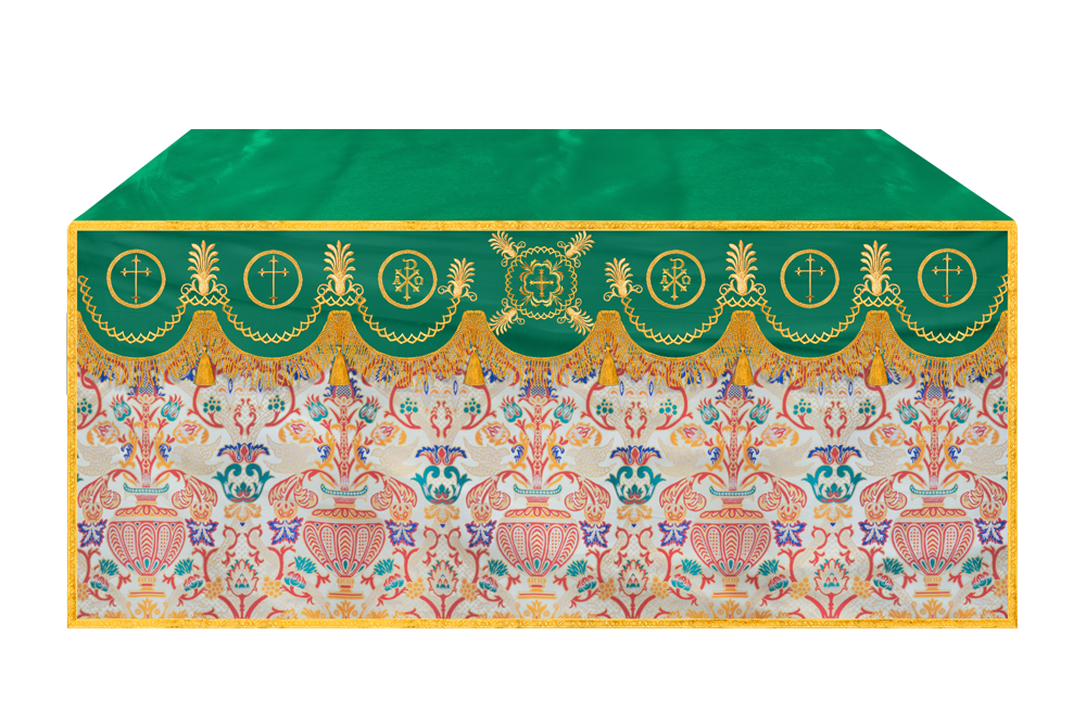 • Embroidered orphrey enhances the altar with sacred symbolism