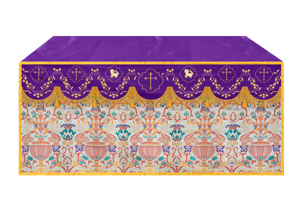 • Embroidered orphrey enhances the altar with sacred symbolism