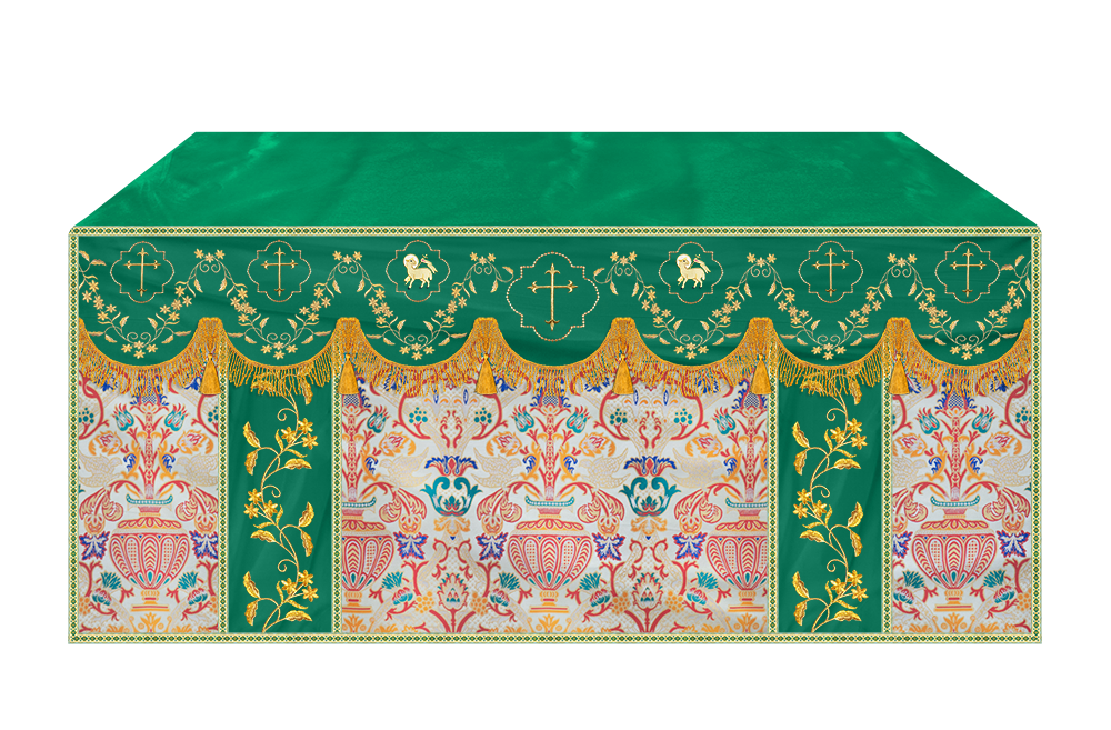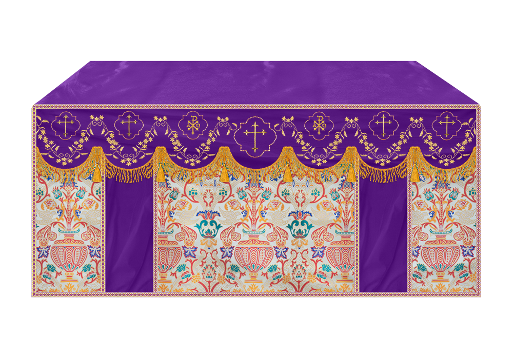 • Embroidered orphrey enhances the altar with sacred symbolism