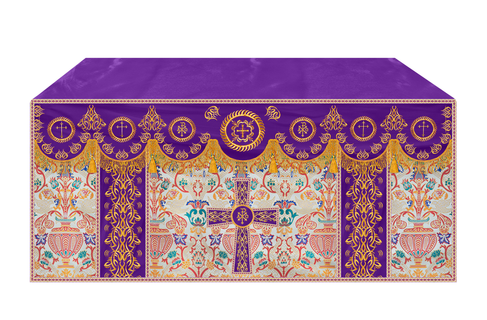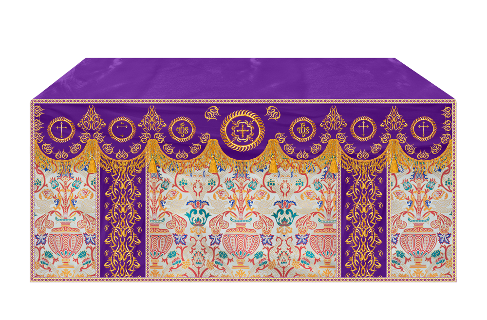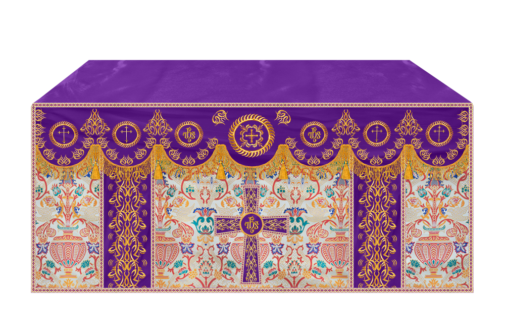 • Embroidered orphrey enhances the altar with sacred symbolism