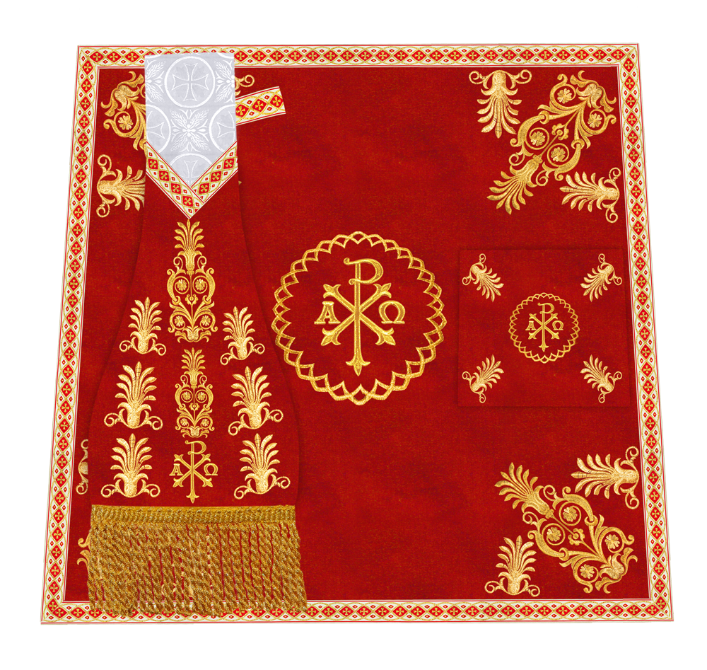 An intricately embroidered spiritual motif adorns the center, symbolising devotion and spiritual grace. The detailed craftsmanship highlights both heritage and holiness, making this cloth a true centerpiece of liturgical tradition.
