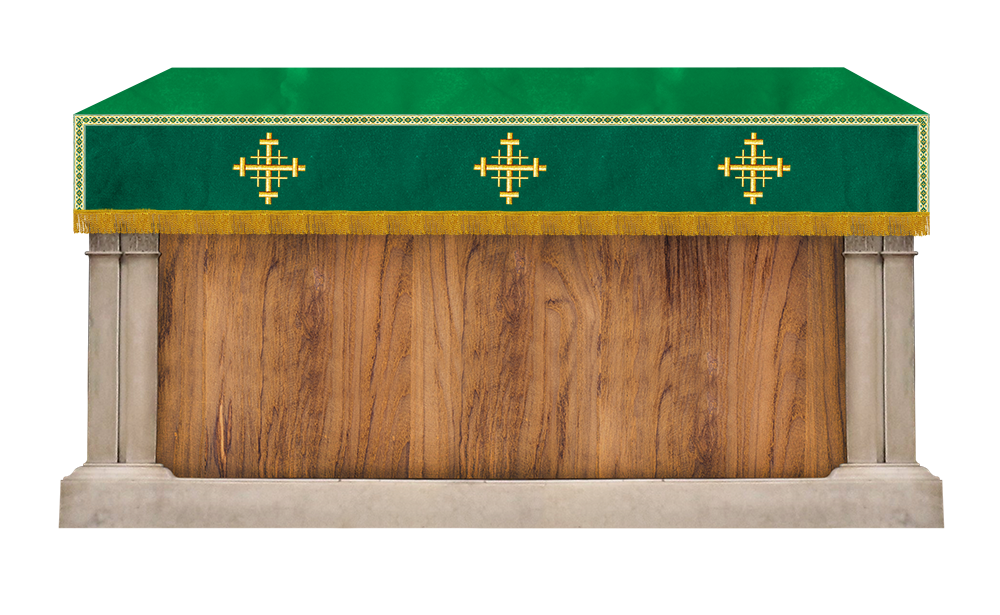 Enhance your church altar with the Embroidered Superfrontal with Liturgical Motif and Trims, a beautifully handcrafted altar frontal that embodies reverence, artistry, and timeless devotion.