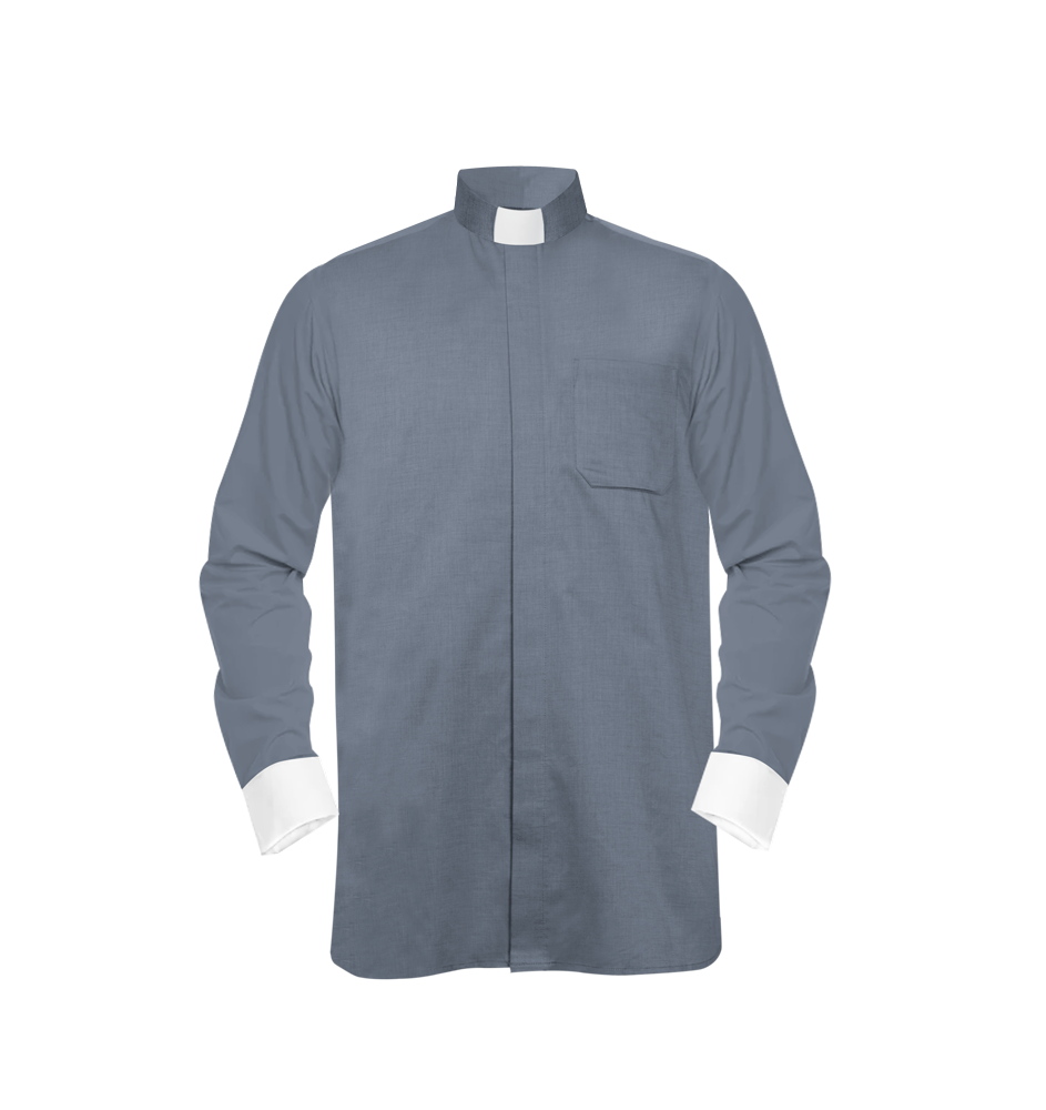 Elevate your clergy attire with this premium Grey long-sleeve clergy shirt, a distinguished garment that blends comfort, craftsmanship, and tradition.