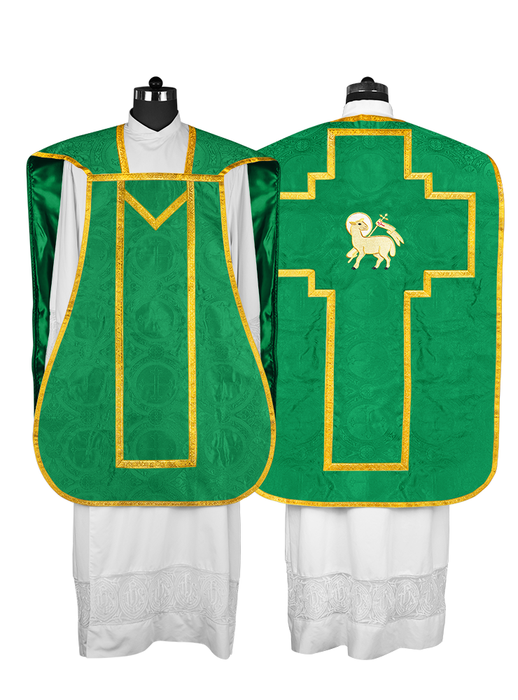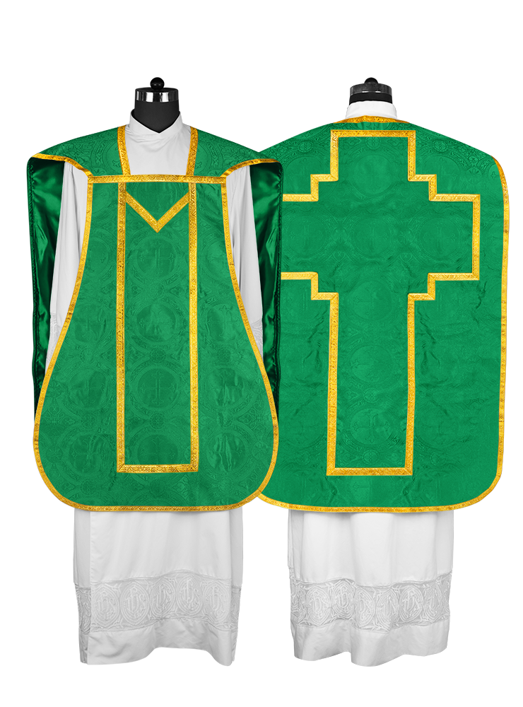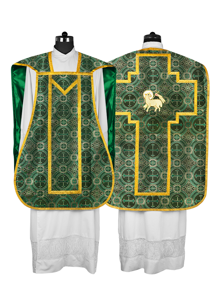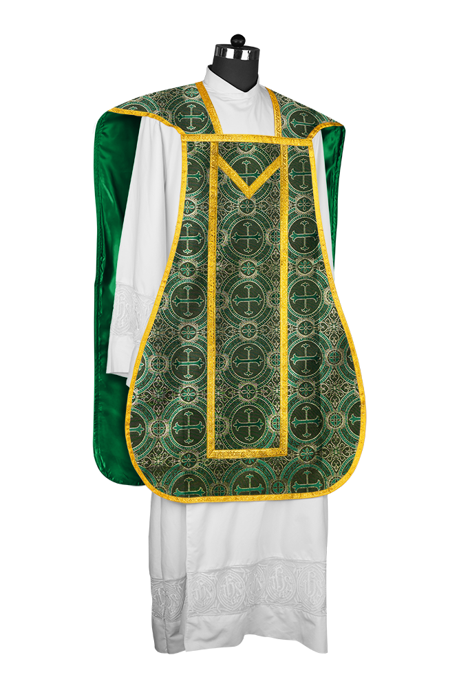 Celebrate sacred tradition with this handcrafted Roman Chasuble, adorned with beautifully embellished motifs that elevate every liturgical service.