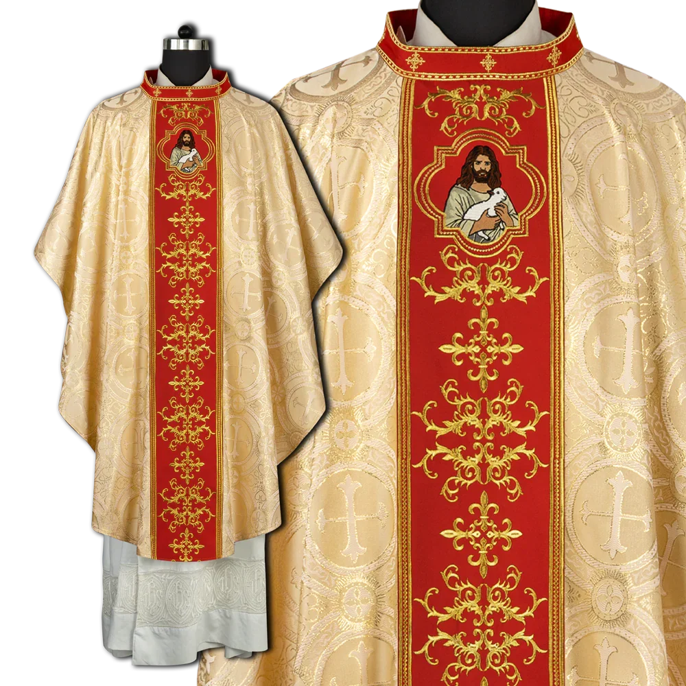 Liturgical Chasuble with Intricate Embroidery of Jesus and the Lamb