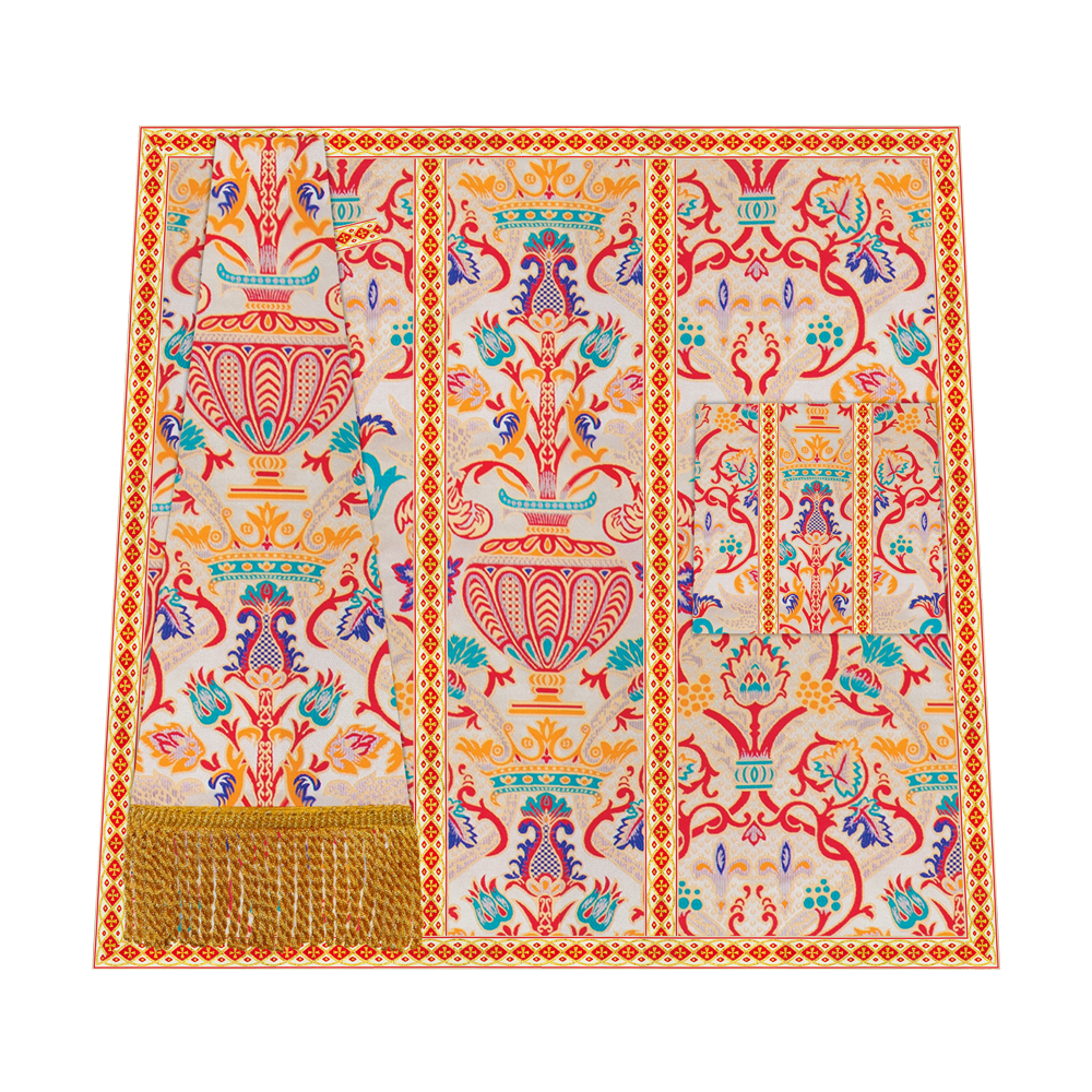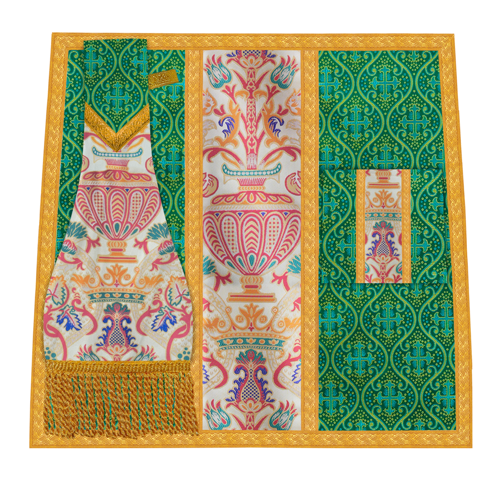 Our Mass Set collection showcases the timeless artistry of liturgical craftsmanship, bringing reverence, beauty, and tradition into every detail. Each piece is carefully created from high-quality fabrics chosen for durability and sophistication, ensuring both elegance and long-lasting performance. With graceful designs inspired by sacred heritage, these sets enhance the dignity of every liturgical celebration.