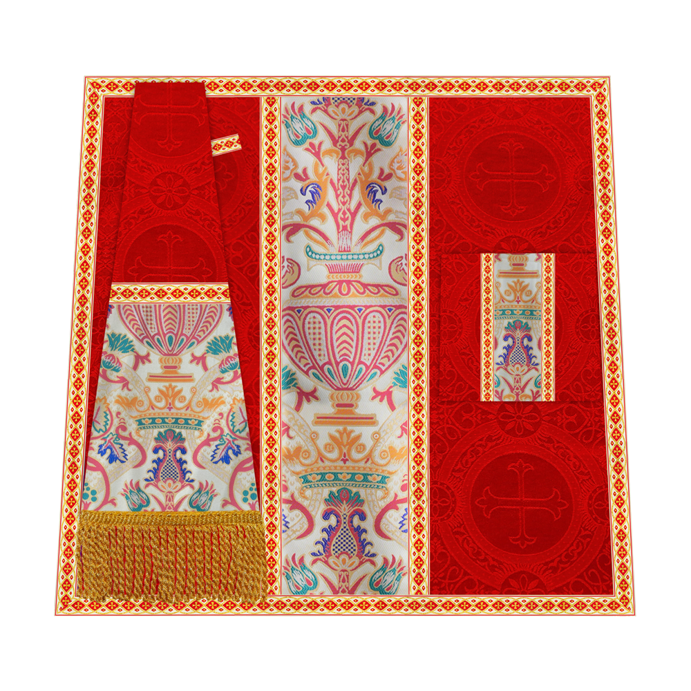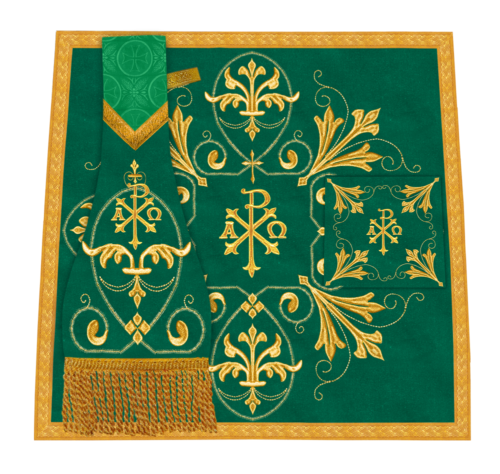 Crafted with meticulous attention to detail, each Altar Mass Set includes essential items such as the Maniple, Chalice Veil, Chalice Pall, and Burse. Every component reflects impeccable workmanship, meeting the highest standards required for sacred use. Superior materials, thoughtful design, and ceremonial refinement come together to create a collection that honors tradition while offering exceptional practicality.