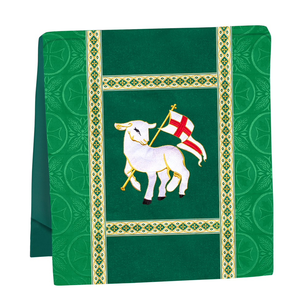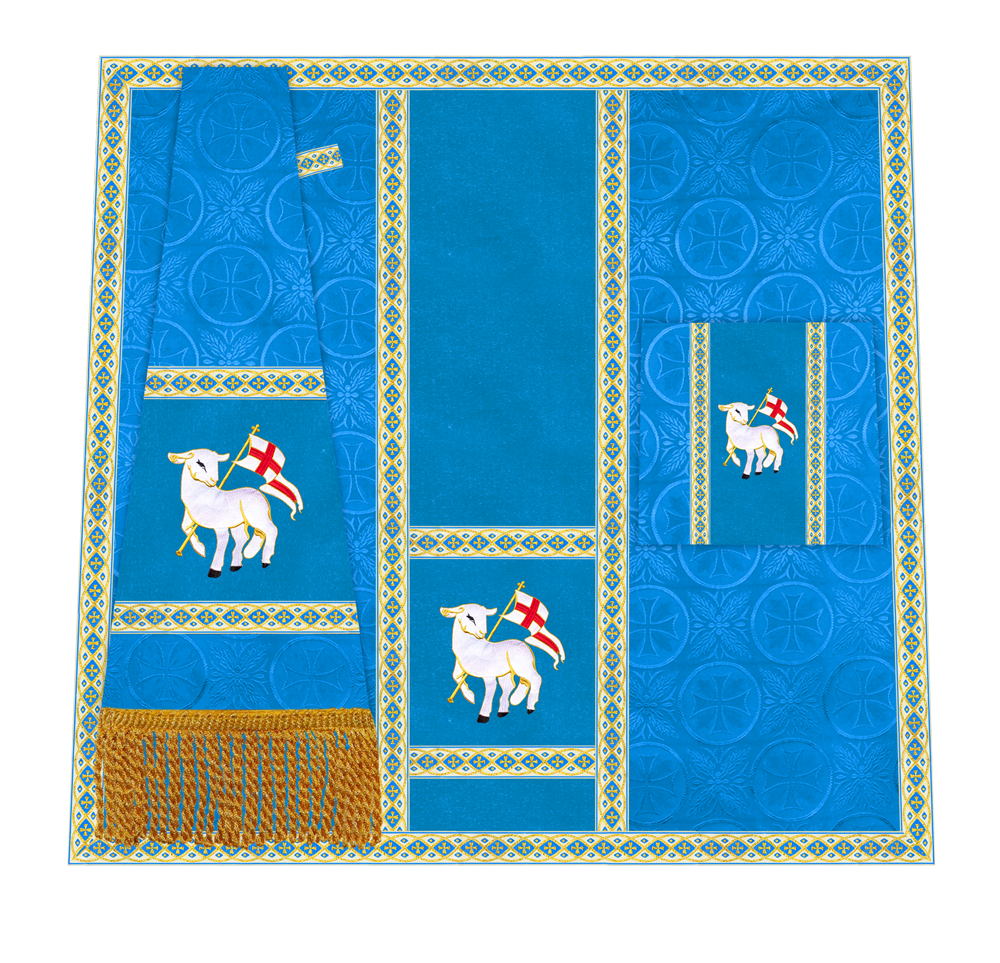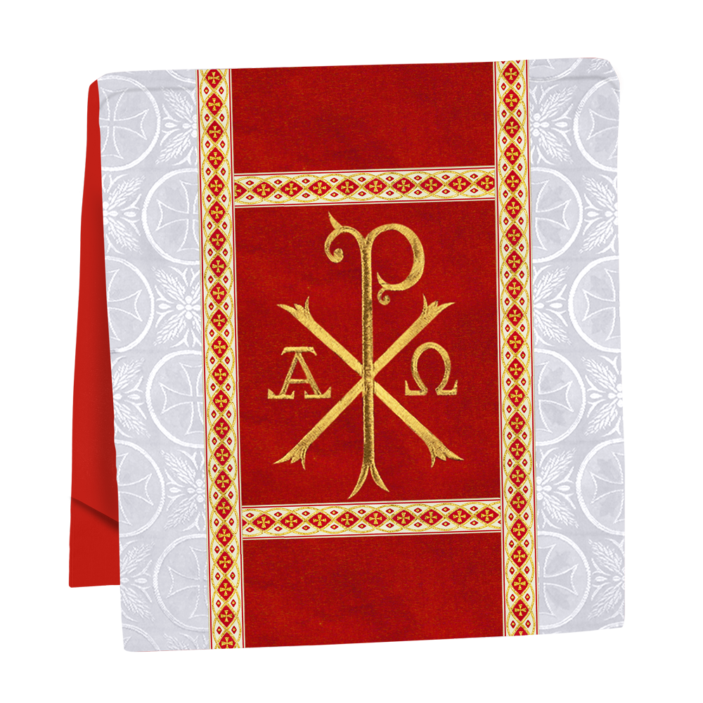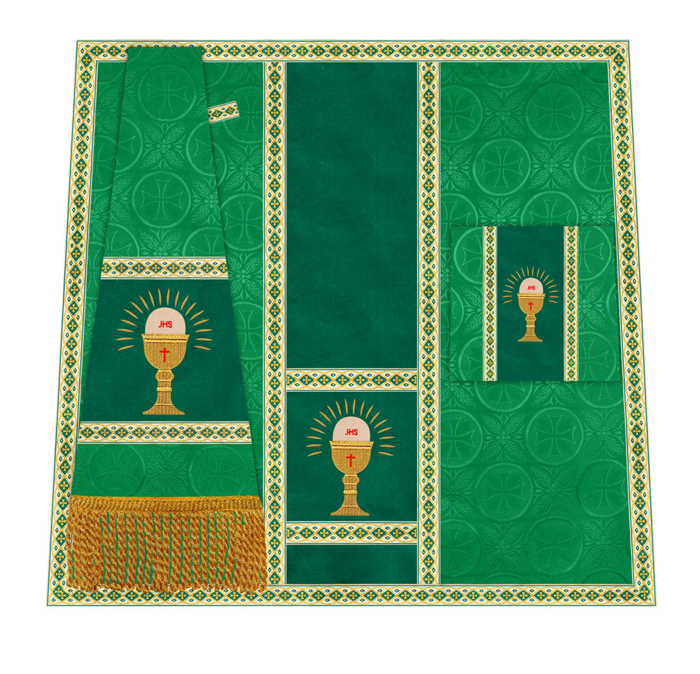 • Complete Mass Set: Includes Chalice Veil (20" x 20"), Maniple (19"), Burse (10" x 9"), and Chalice Pall (7" x 7")
