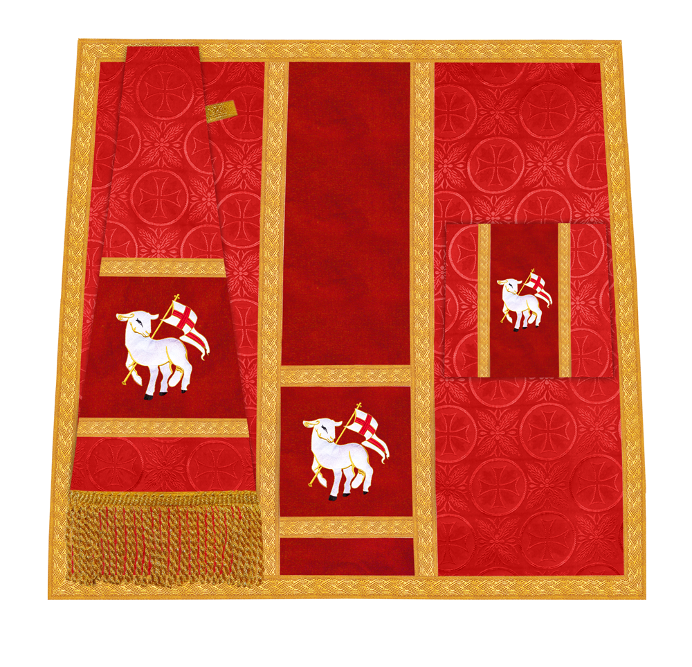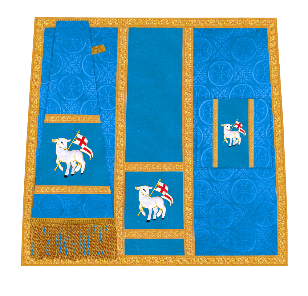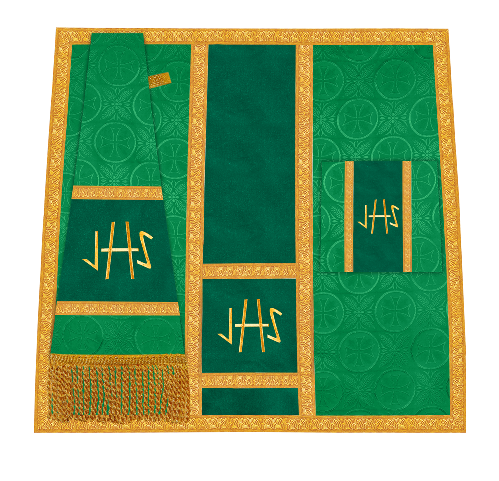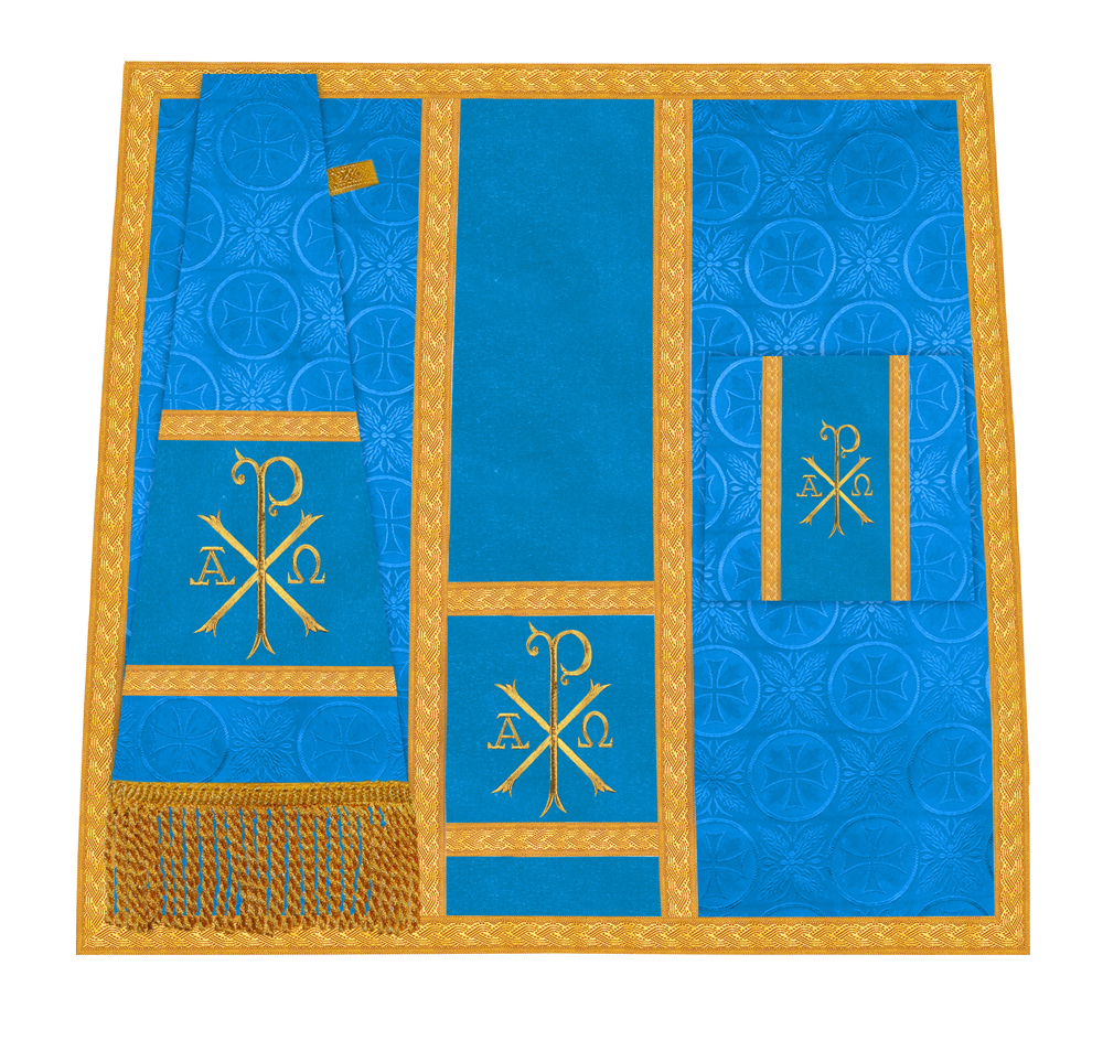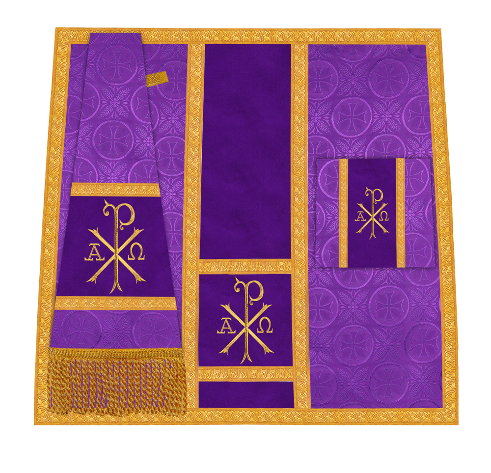 Elevate every sacred ceremony with the Church mass set adorned with liturgical motif, a masterpiece of devotion and craftsmanship.