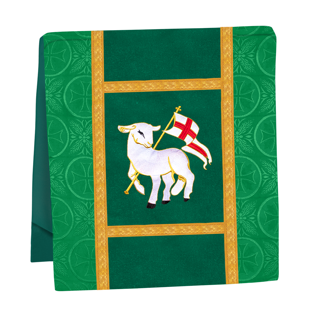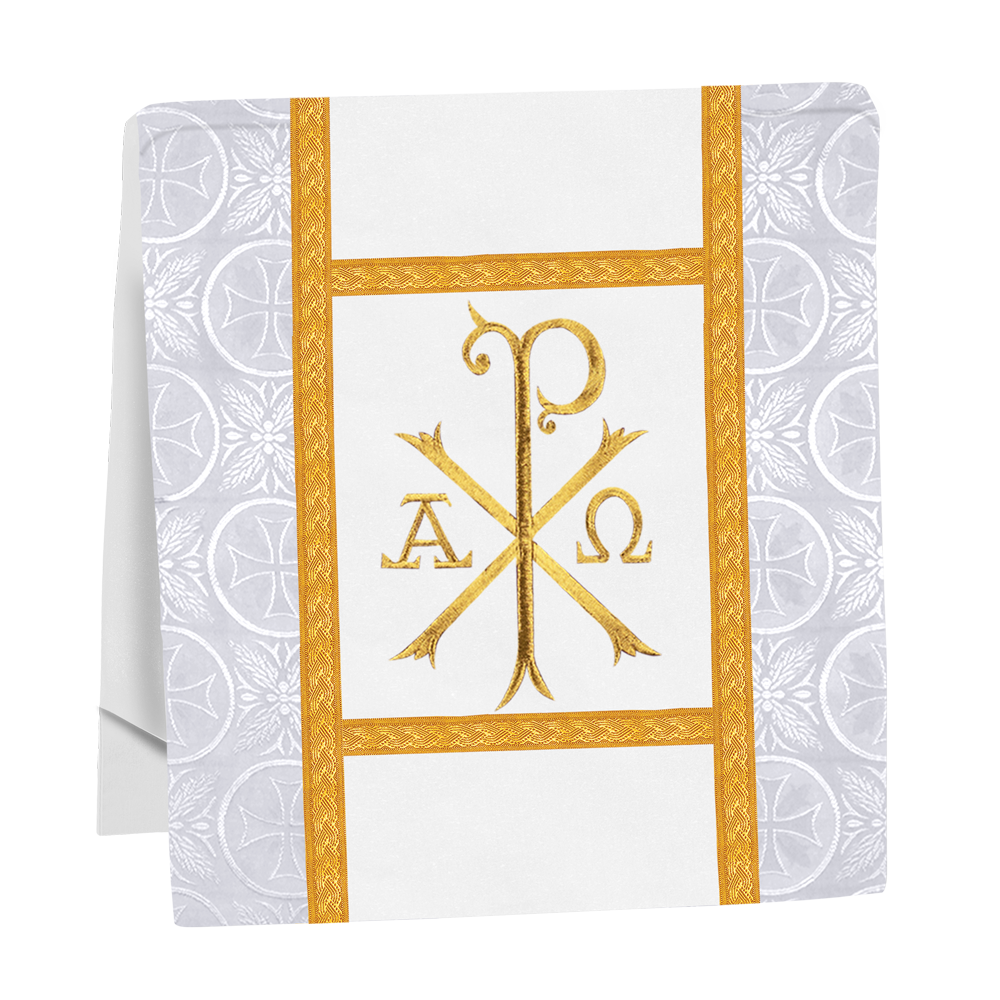 • Complete Mass Set: Includes Chalice Veil (20" x 20"), Maniple (19"), Burse (10" x 9"), and Chalice Pall (7" x 7")