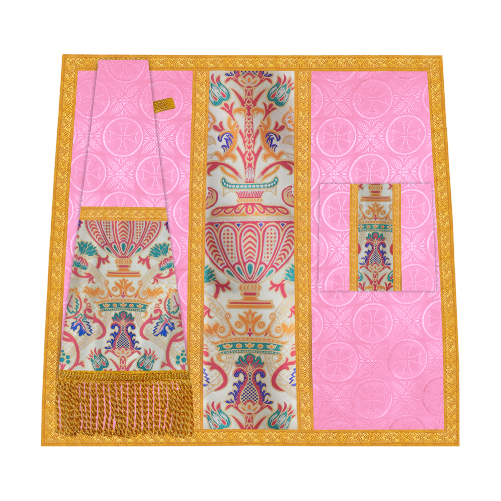 The Coronation Tapestry Altar Mass Set is meticulously crafted from premium fabrics, including Damask, Brocade, Ogee, and Folium. Each material is selected for its luxurious texture, rich visual appeal, and lasting durability, ensuring the altar set maintains its prestige through countless liturgical celebrations. Skillful artisans hand-finish every piece, combining heritage, quality, and ceremonial artistry.