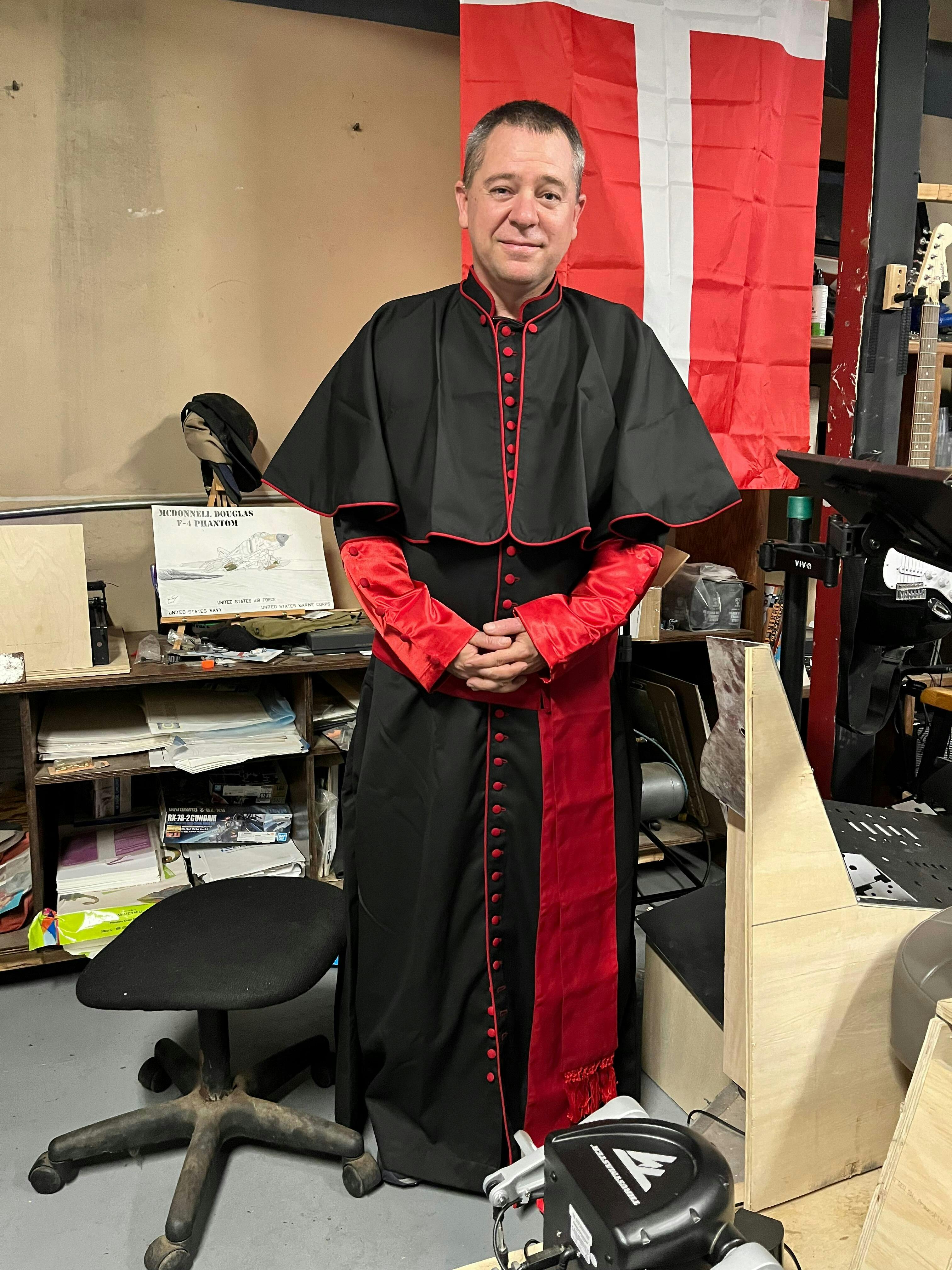 Custom - tailored cassock adorned with trims & fabric exposed buttons and matching Band Cincture enhanced with knotted fringes is the pinnacle attire of PSG