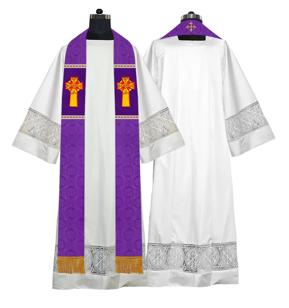 Enhance your sacred services with the Traditional Stole with Embroidered Cross Motif. This premium clergy stole blends tradition, luxury, and faith, allowing you to perform every ceremony with pride and distinction.