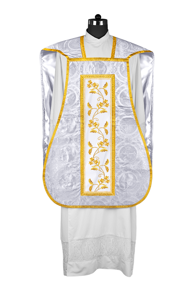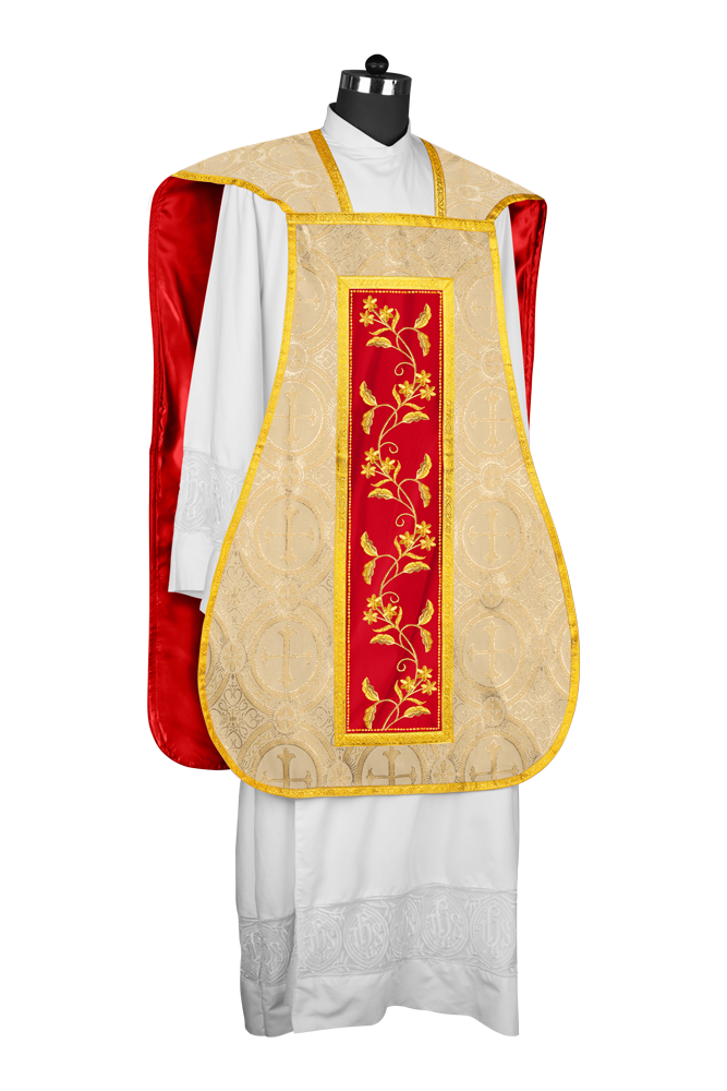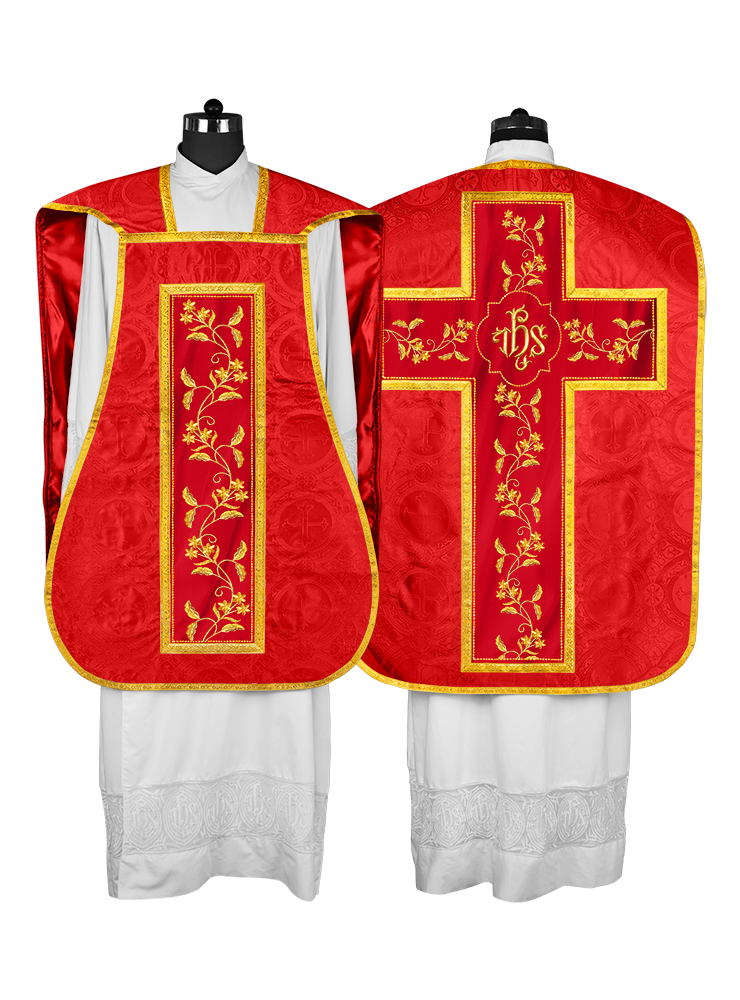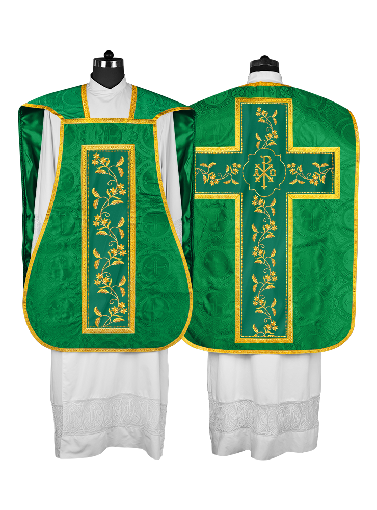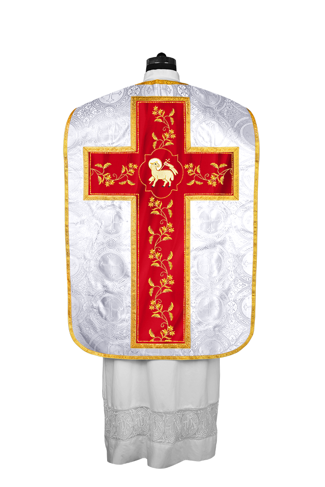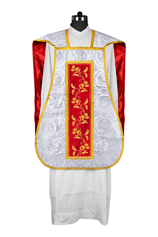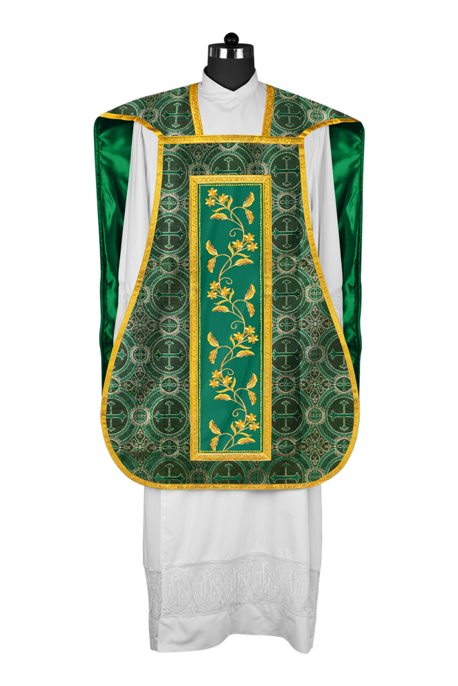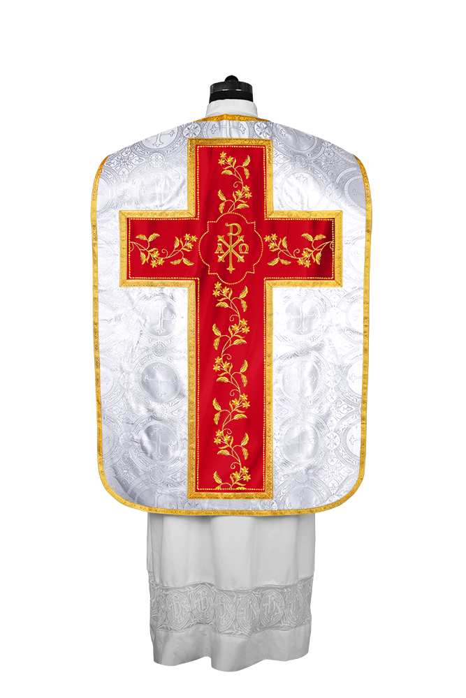 • Handmade craftsmanship honoring centuries-old Roman Catholic vestment tradition.