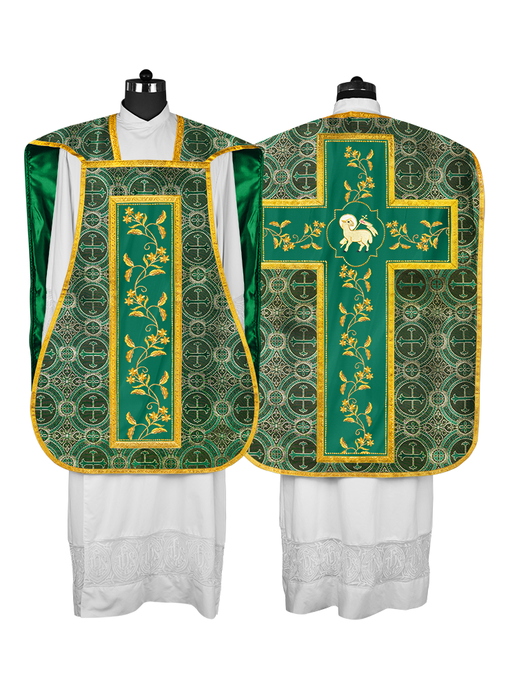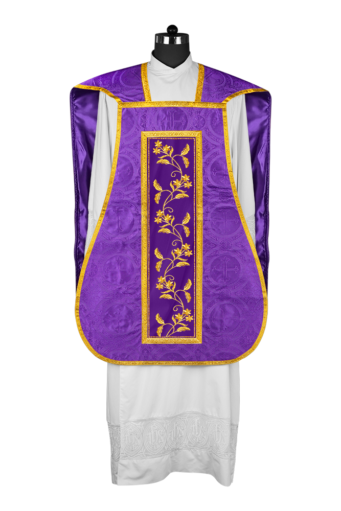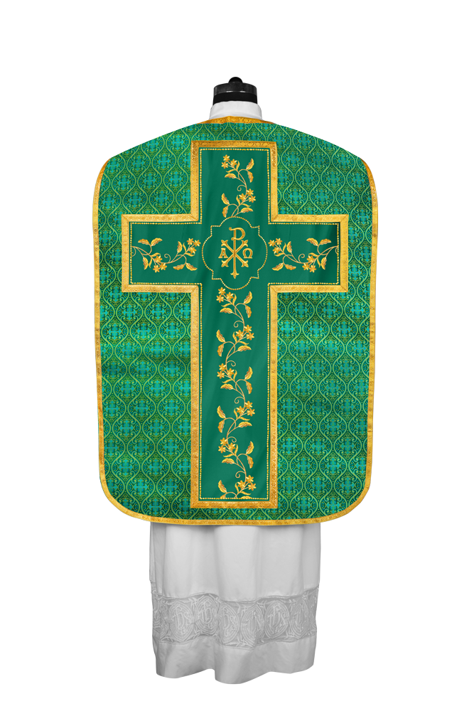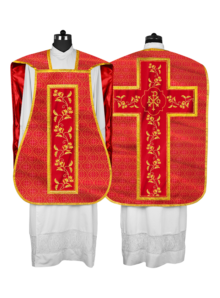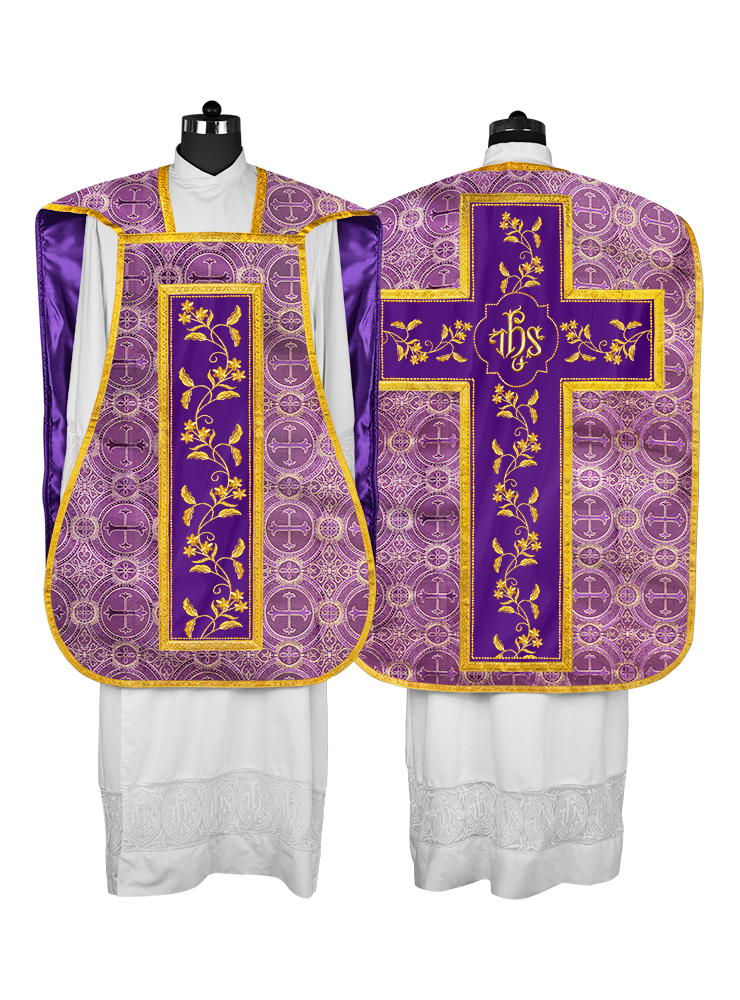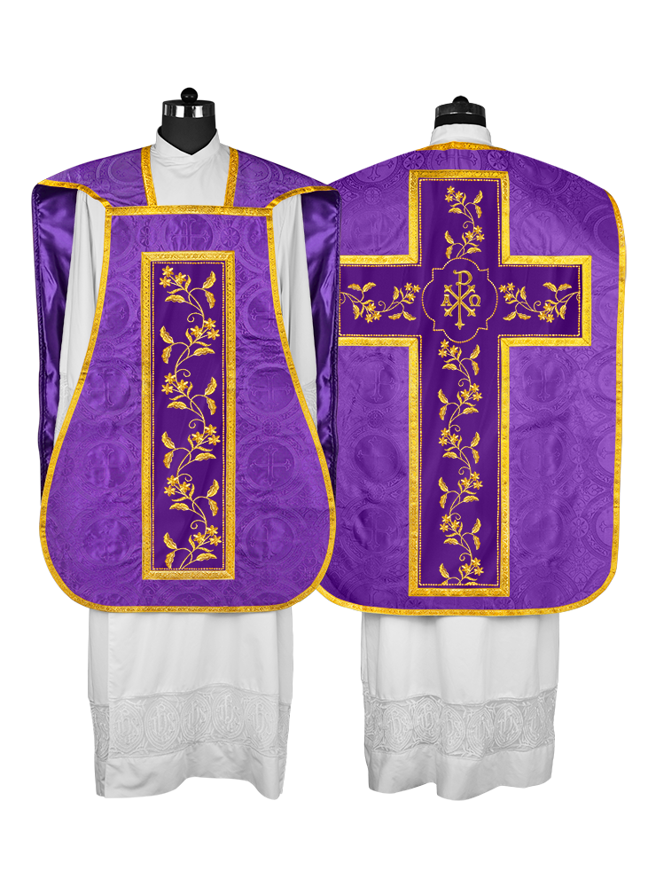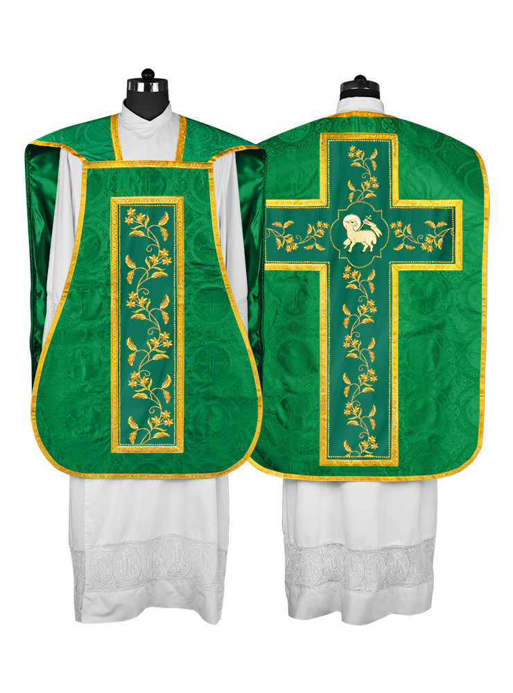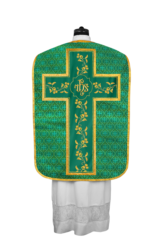 • Handmade craftsmanship honoring centuries-old Roman Catholic vestment tradition.