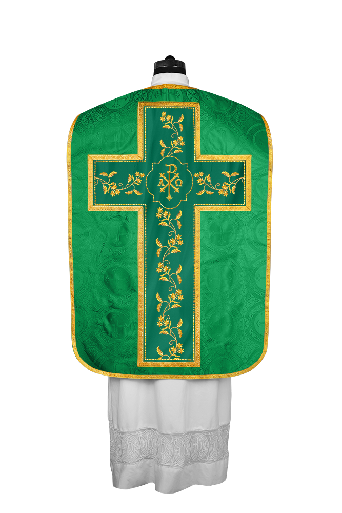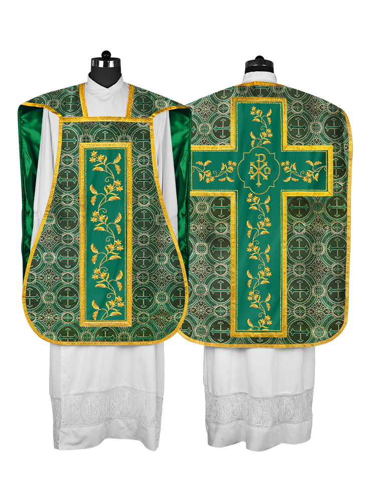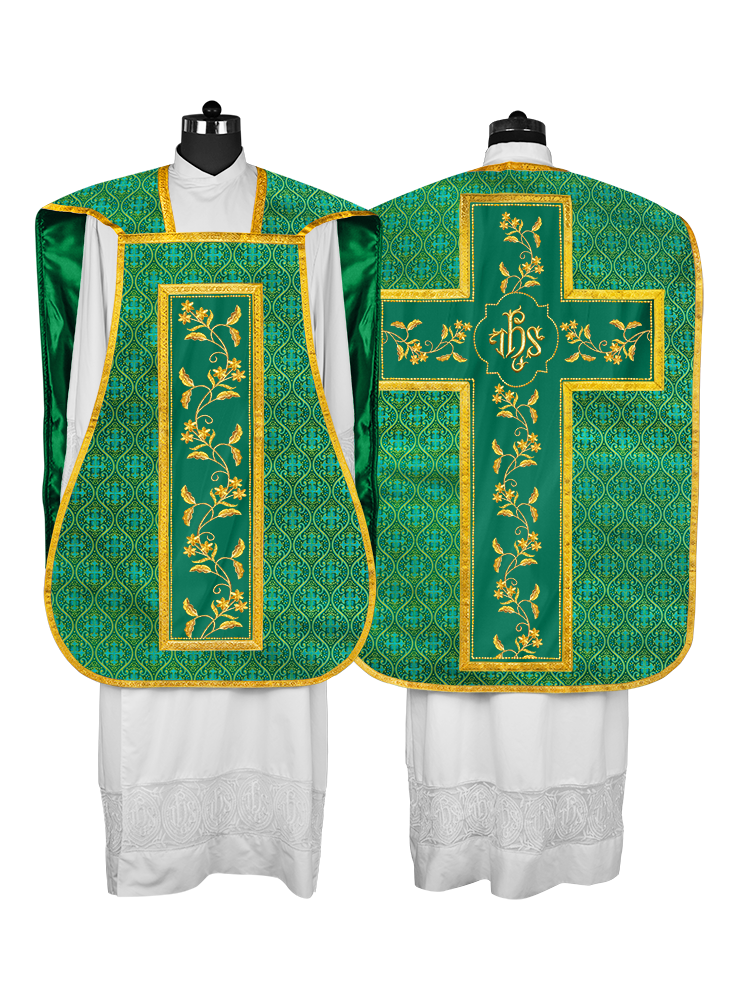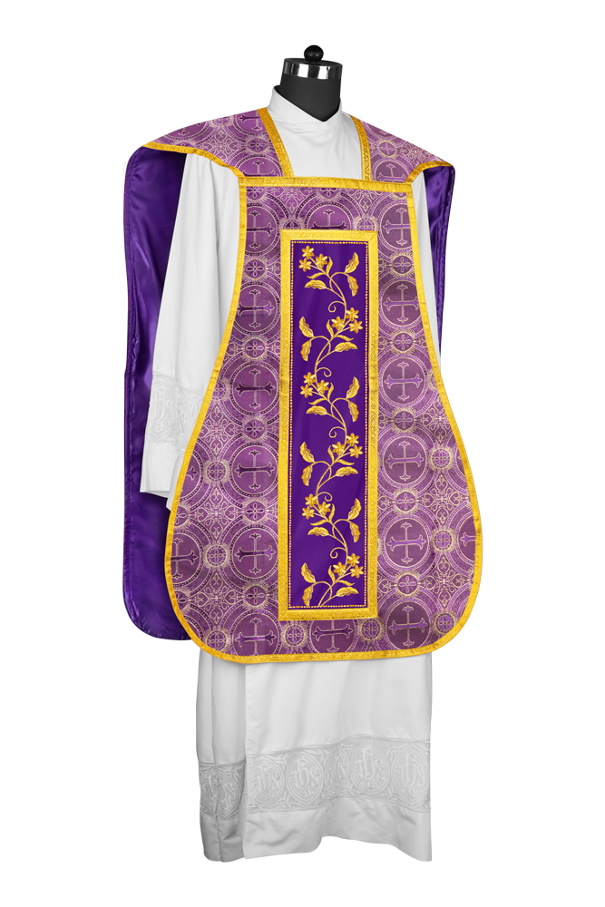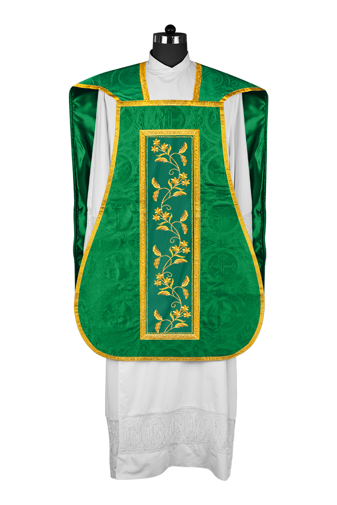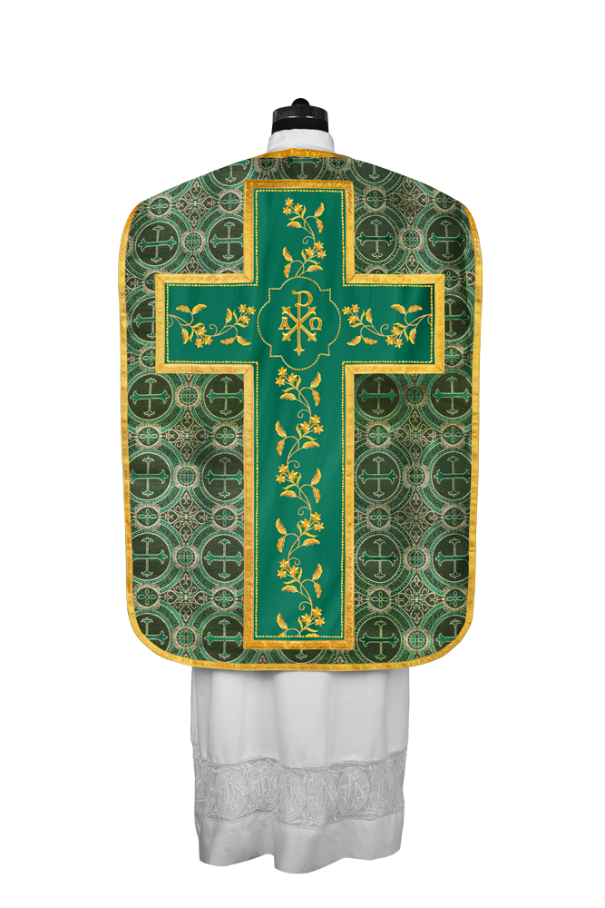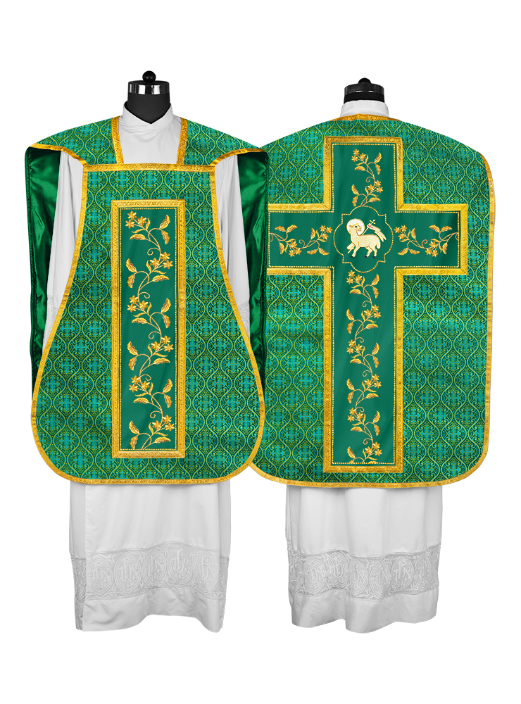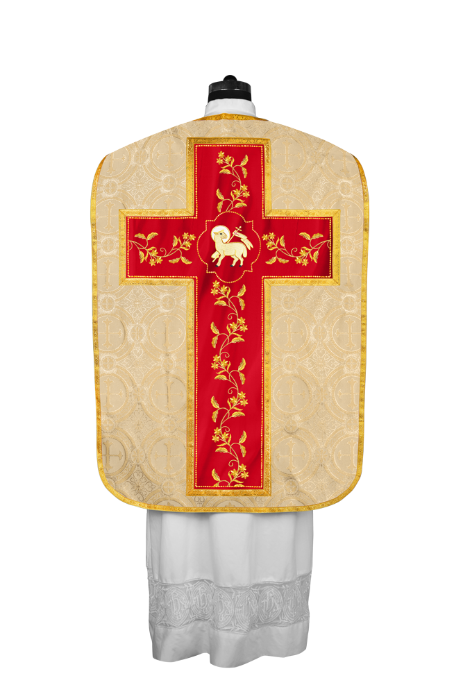 • Handmade craftsmanship honoring centuries-old Roman Catholic vestment tradition.