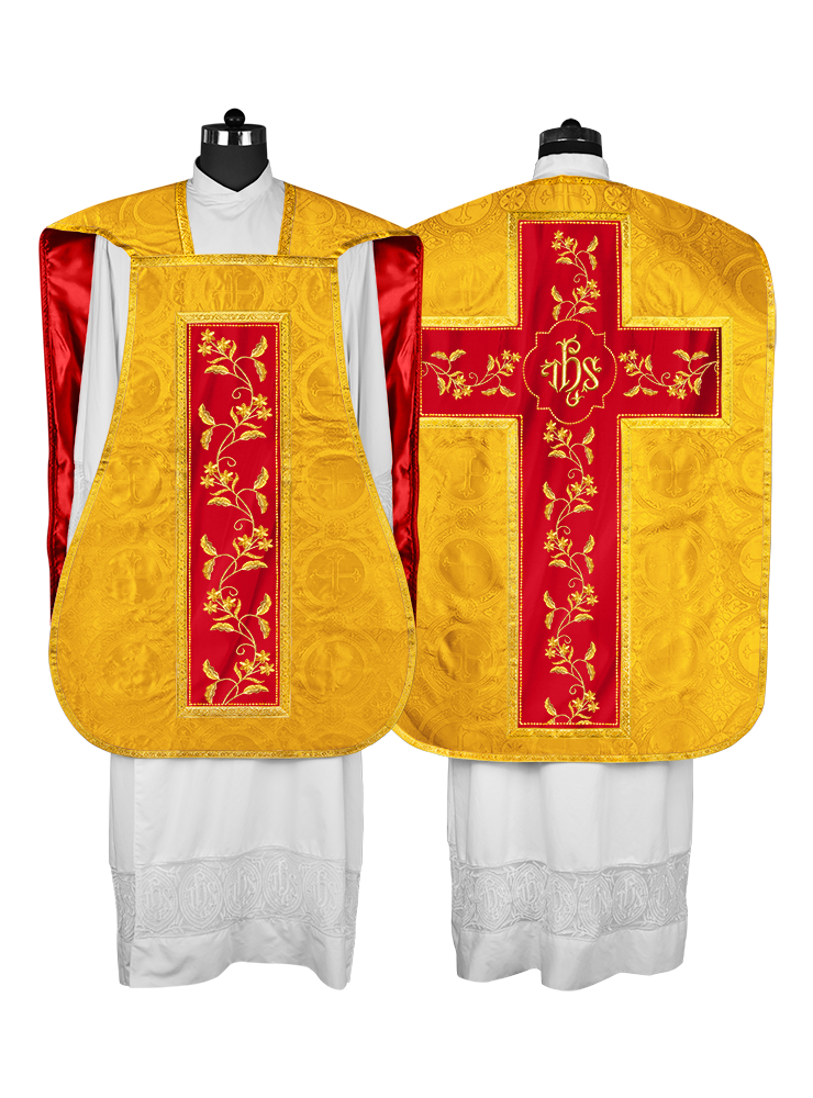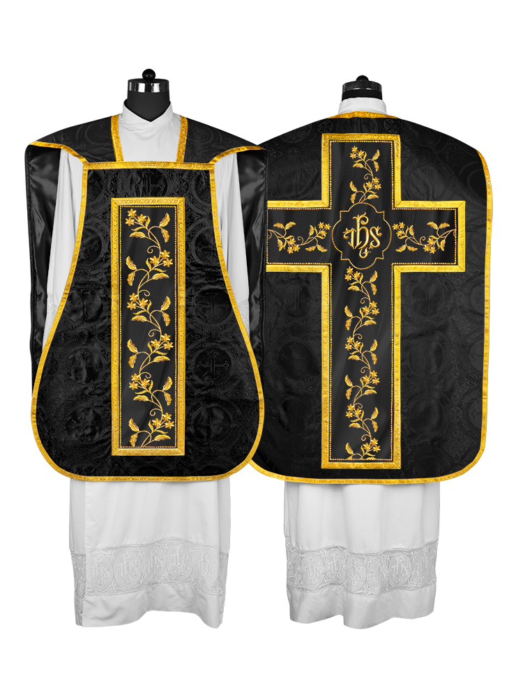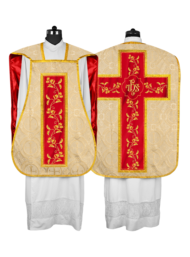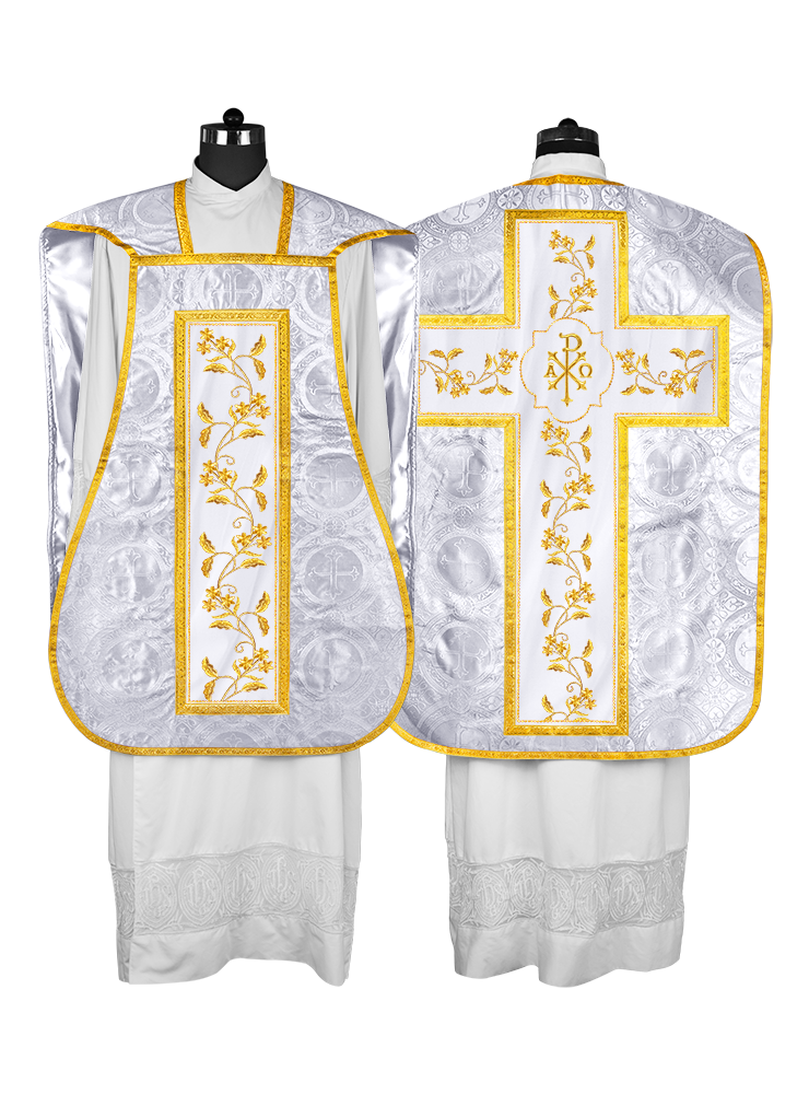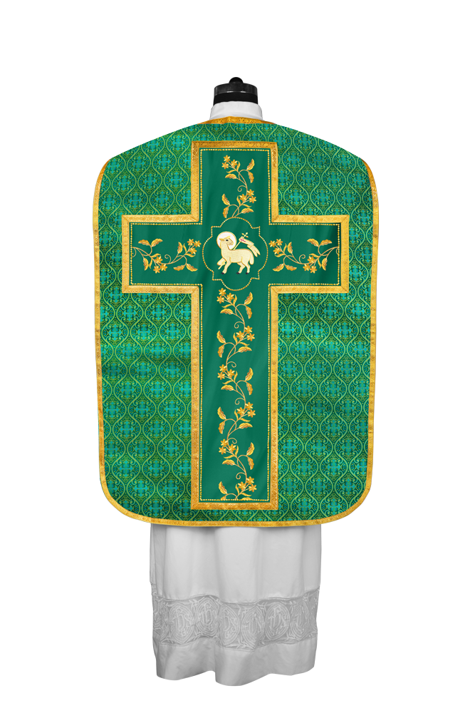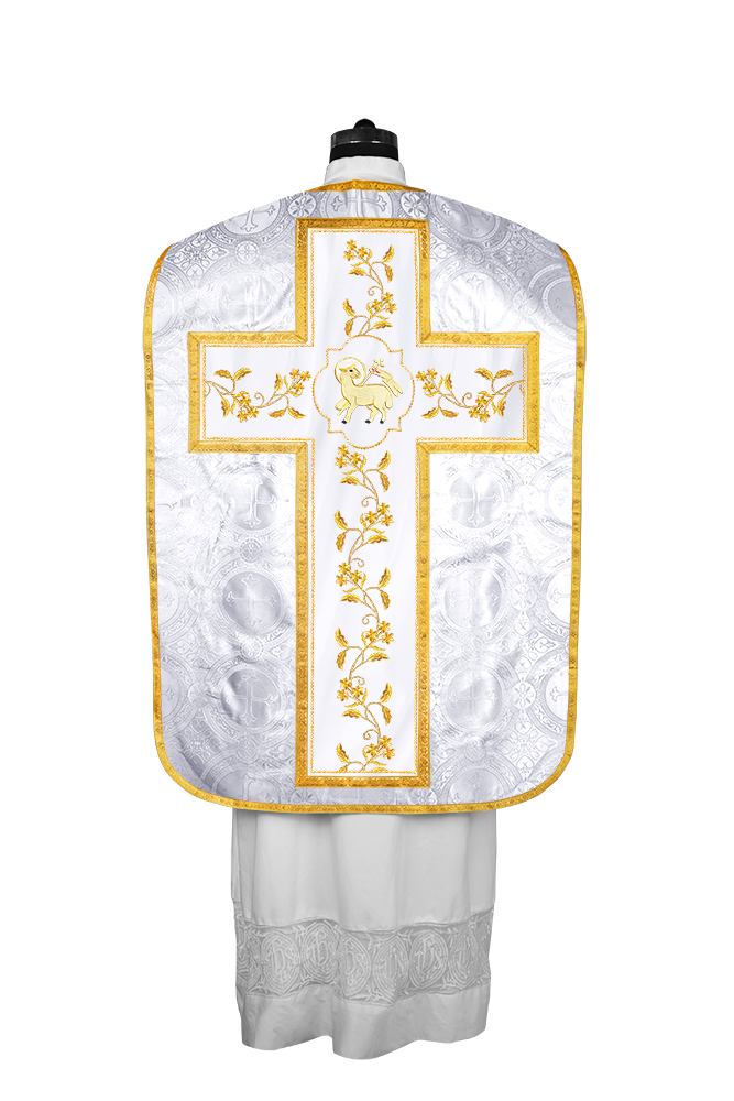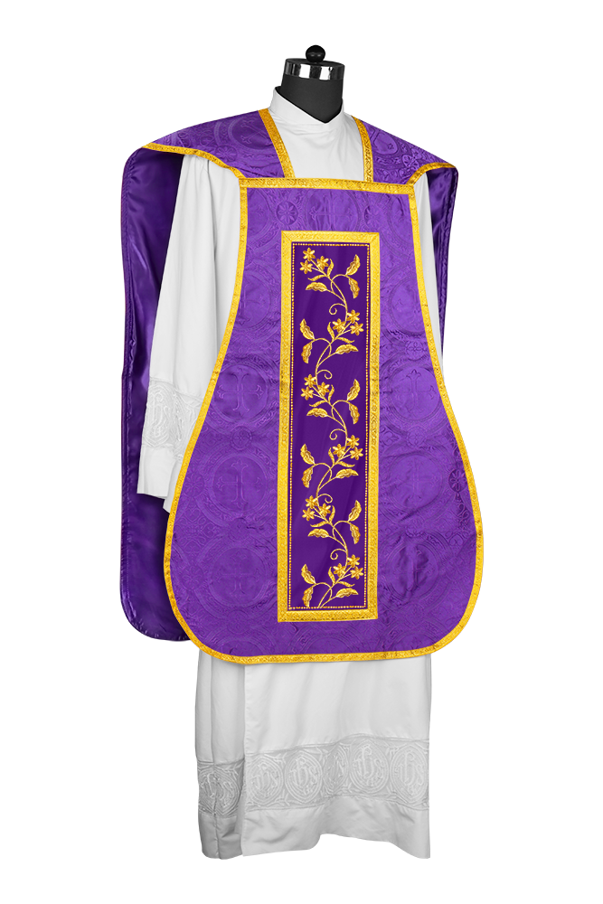 • Handmade craftsmanship honoring centuries-old Roman Catholic vestment tradition.