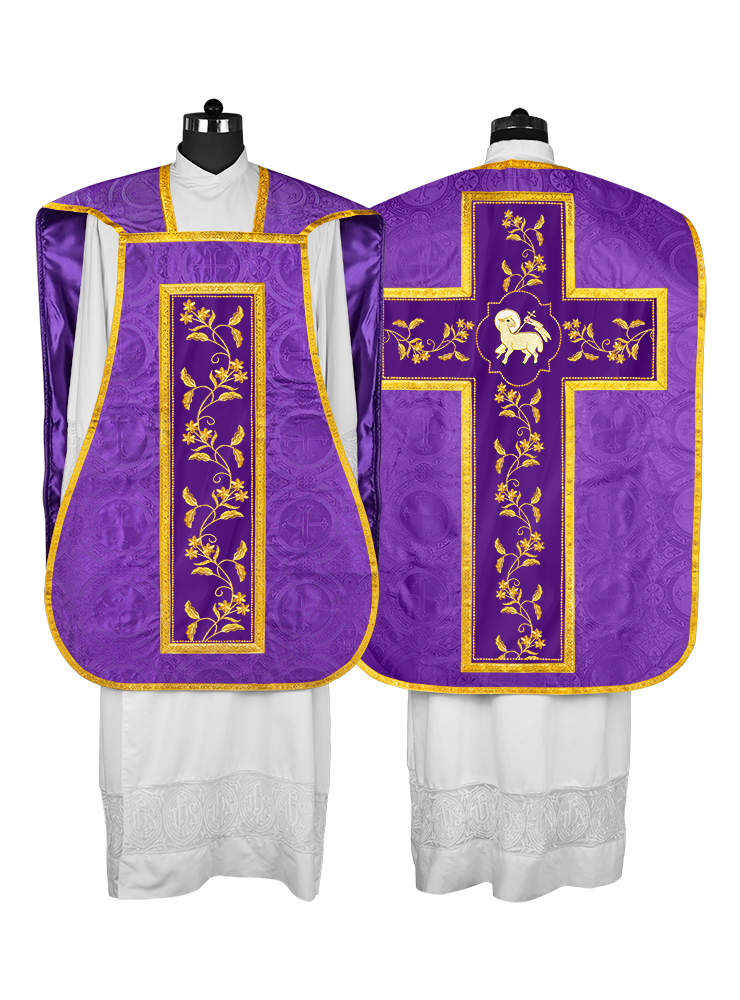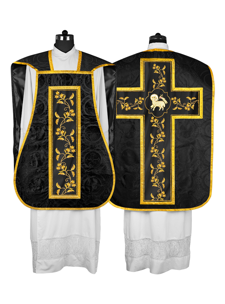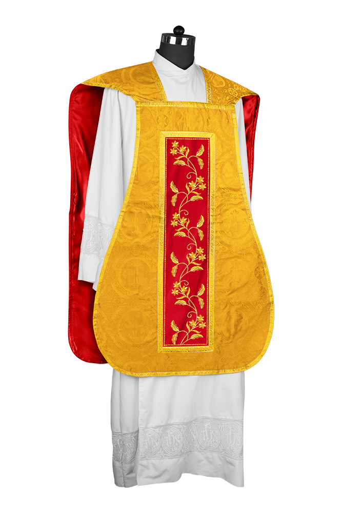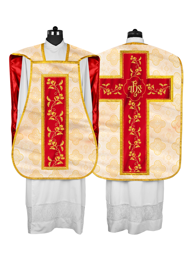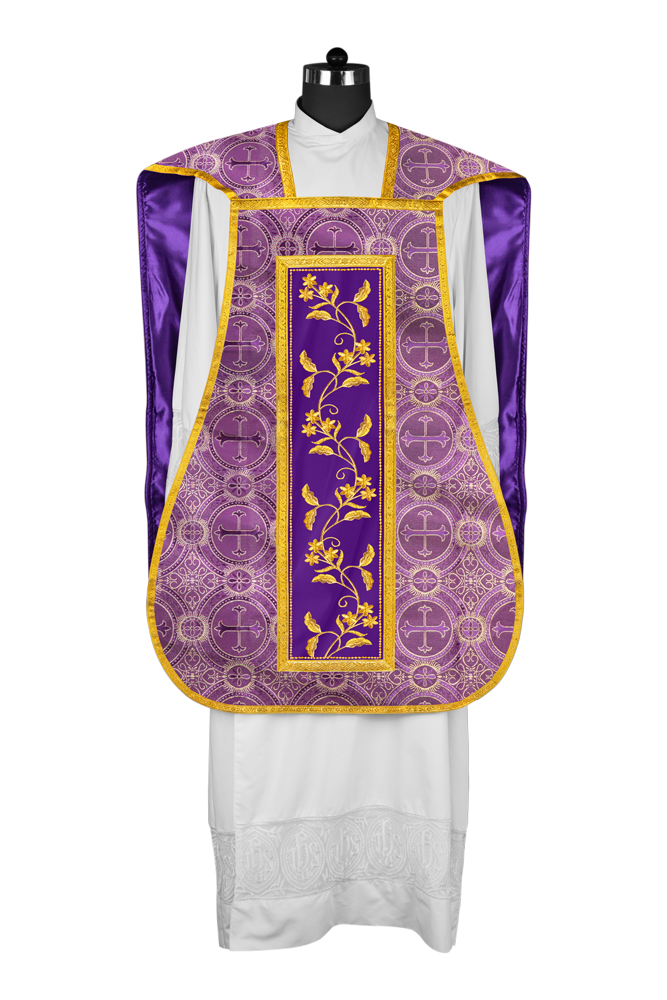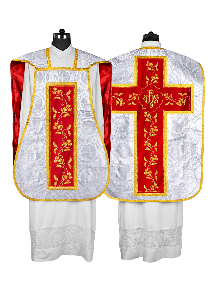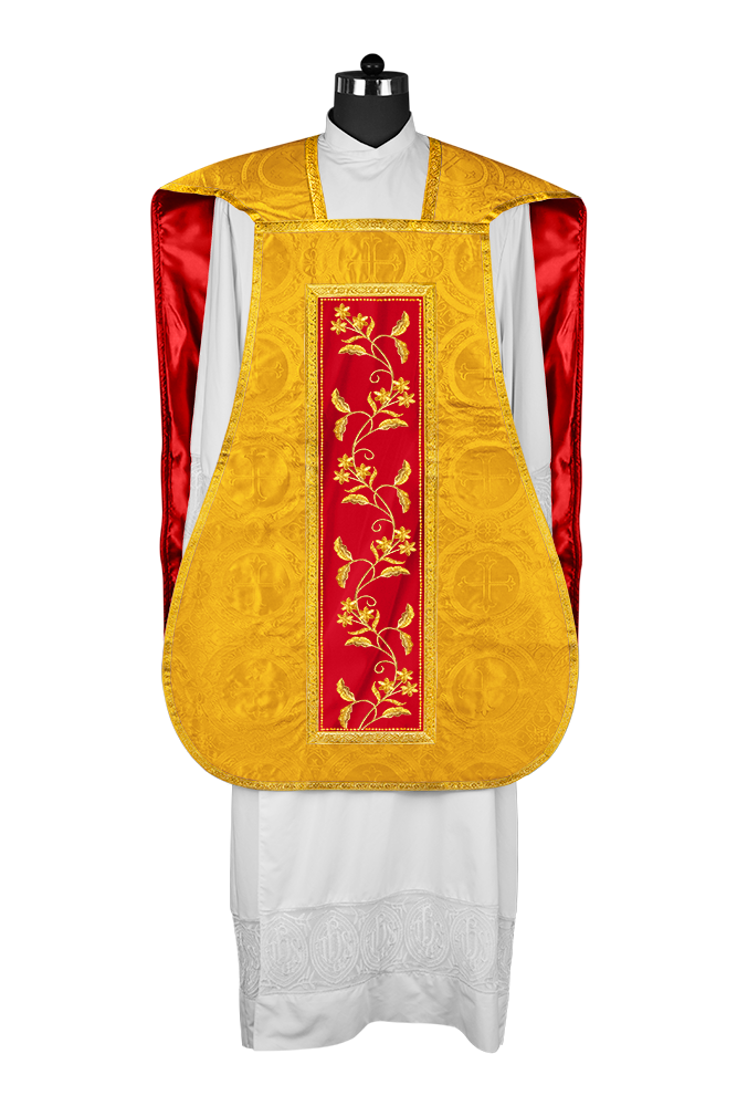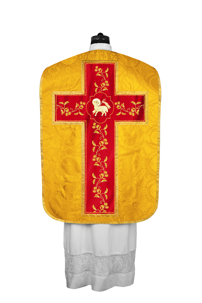 • Handmade craftsmanship honoring centuries-old Roman Catholic vestment tradition.