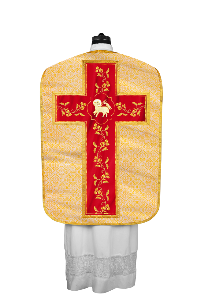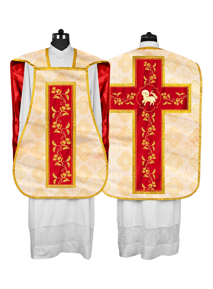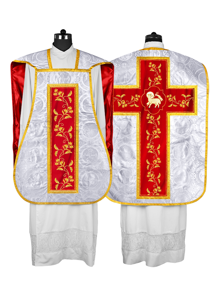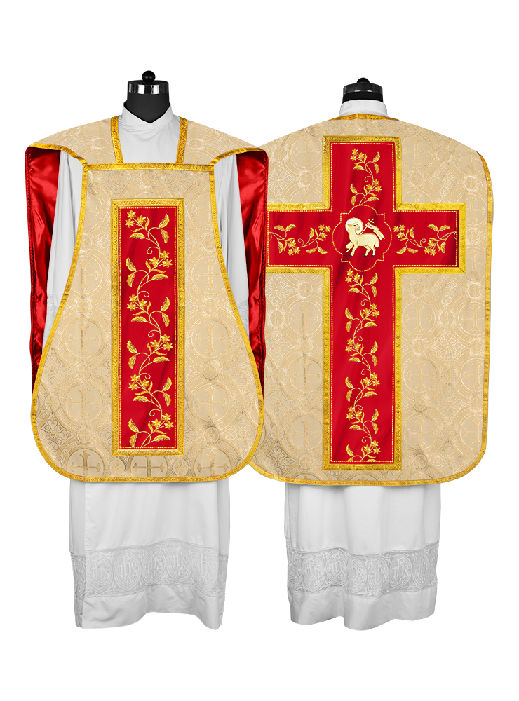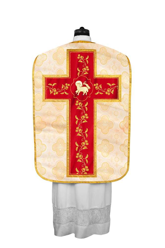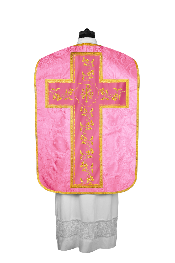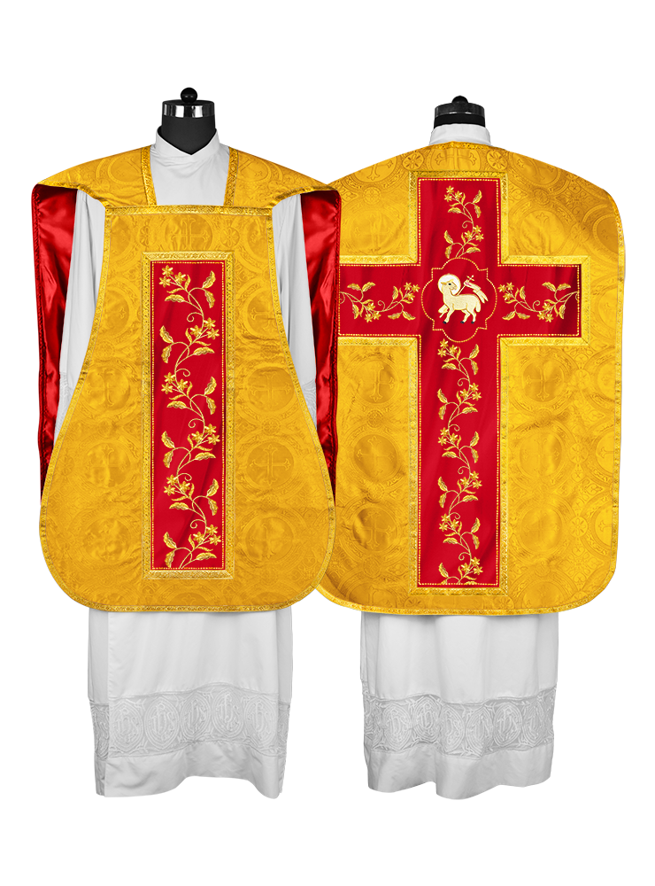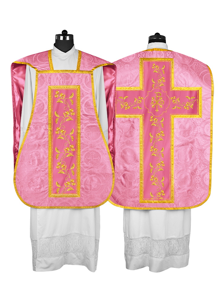 • Handmade craftsmanship honoring centuries-old Roman Catholic vestment tradition.