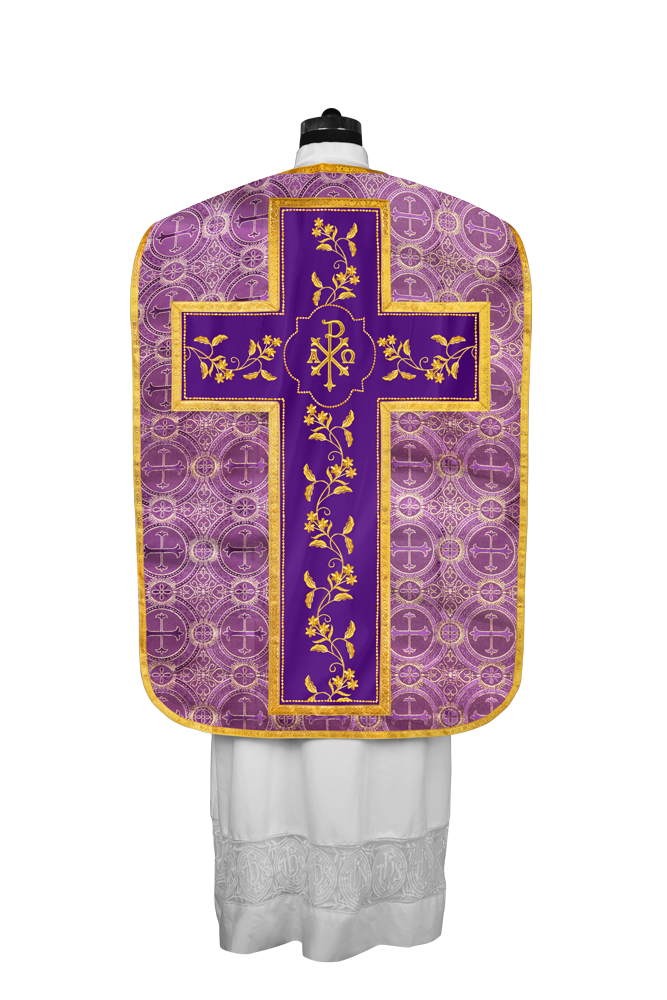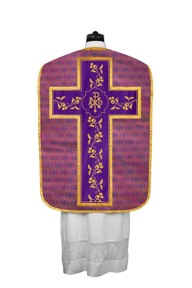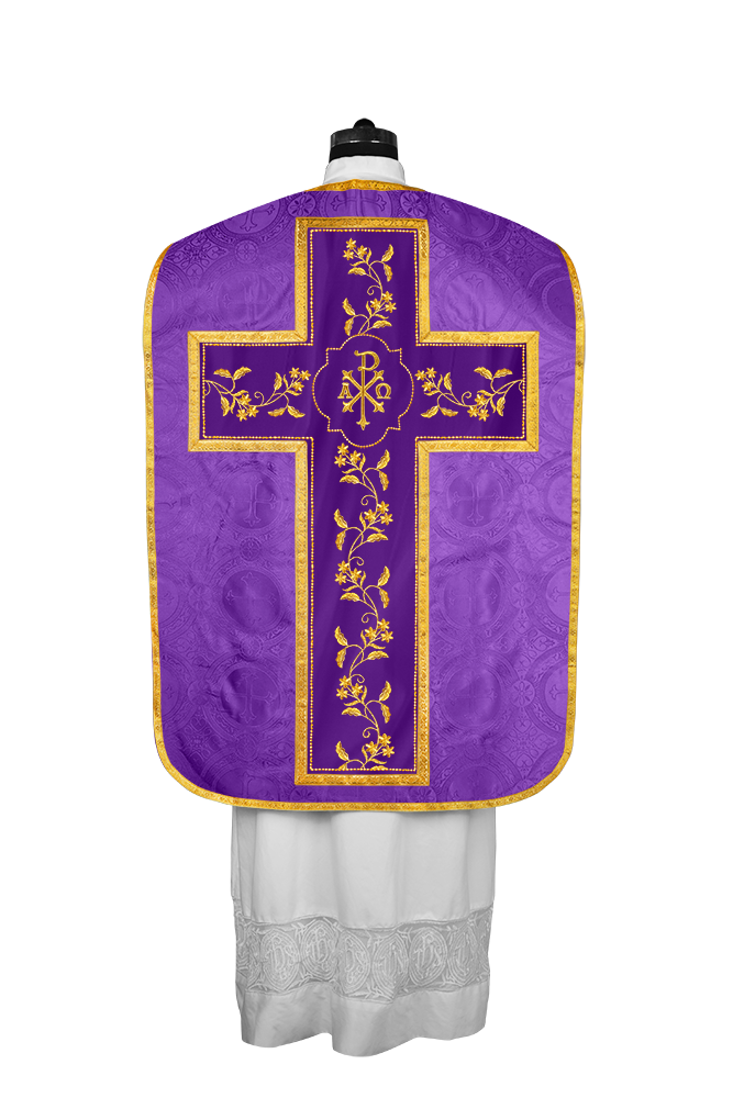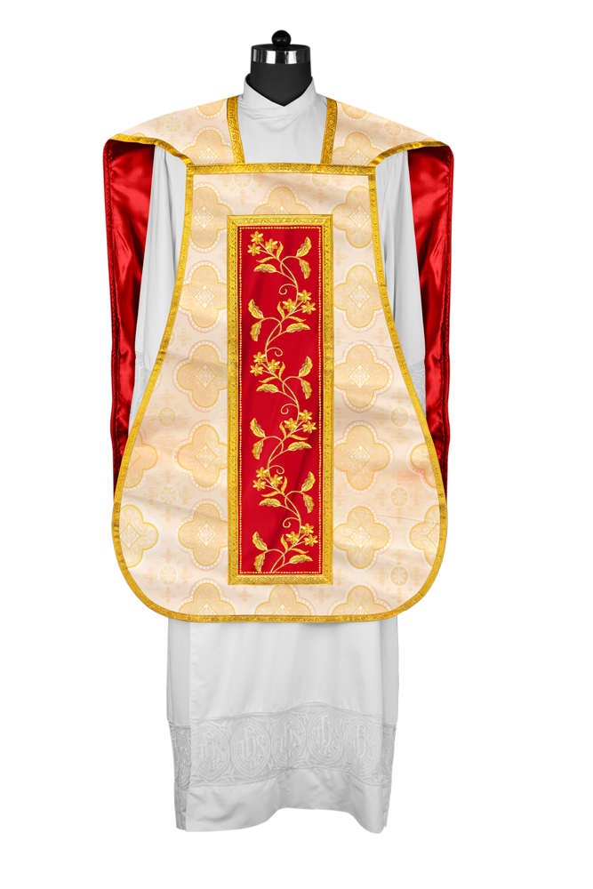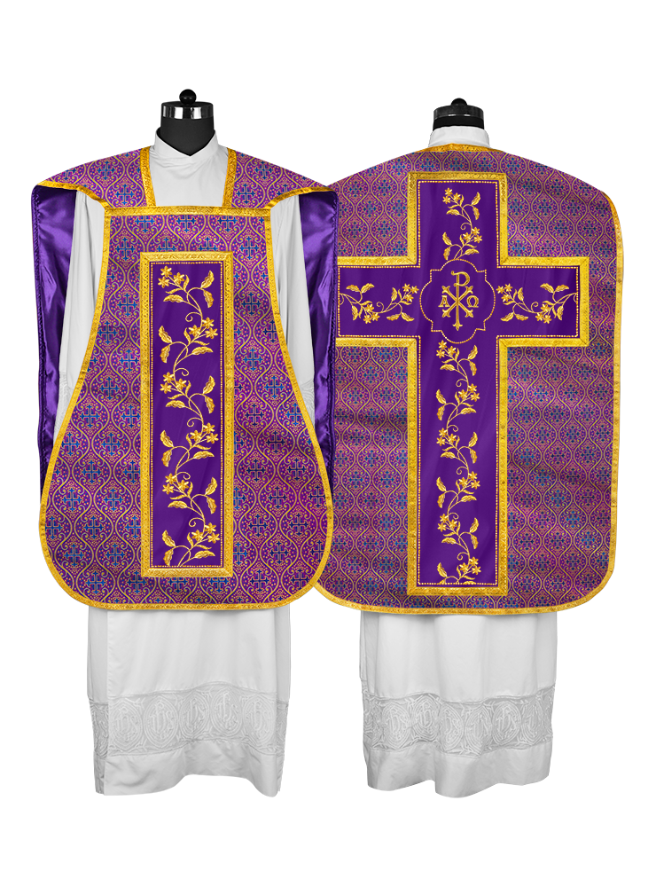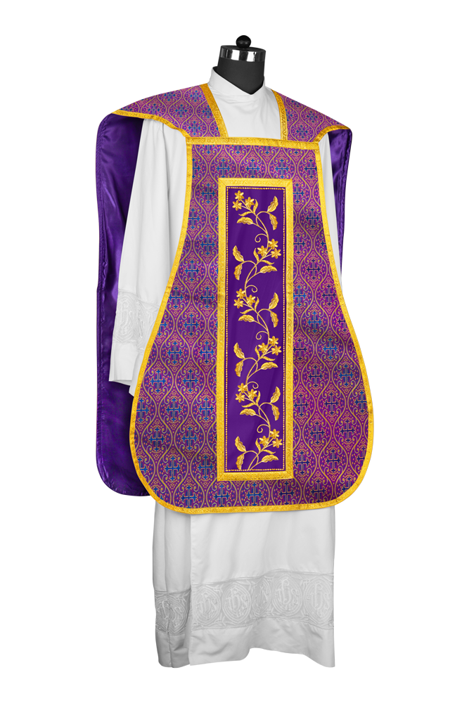 This Embroidered Roman Fiddleback Chasuble is a handcrafted liturgical vestment designed for clergy who value authenticity, reverence, and time-honoured tradition.