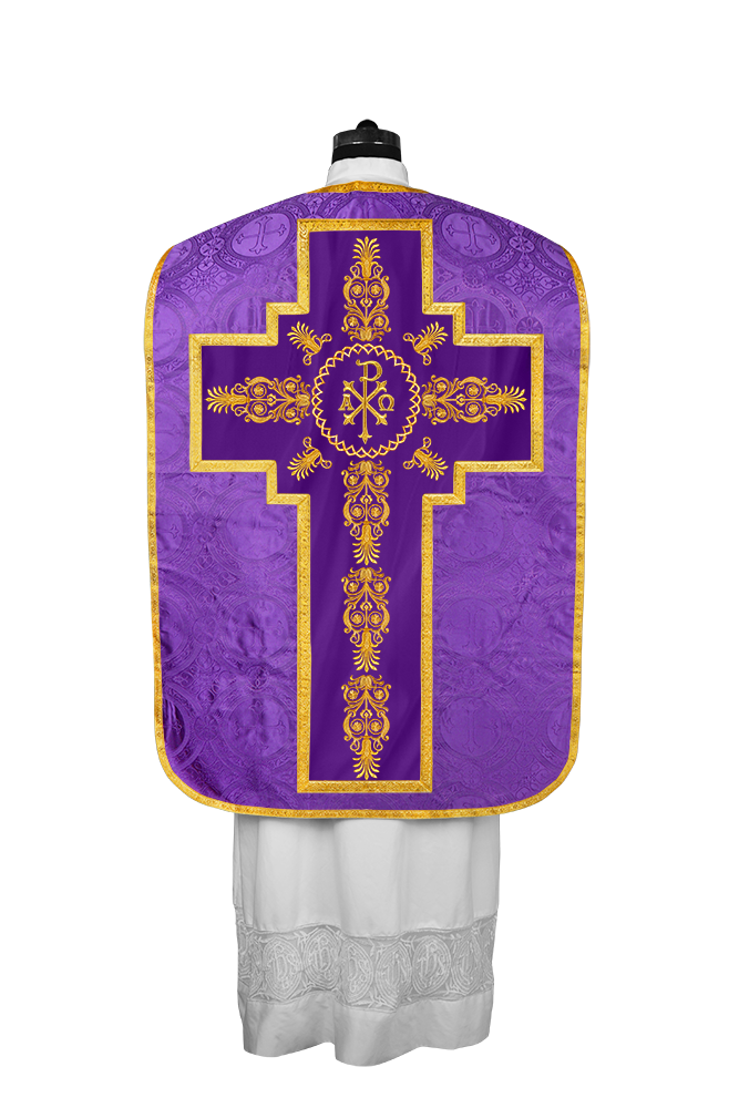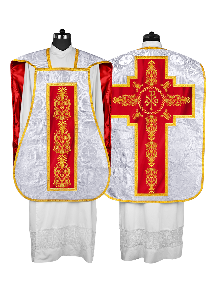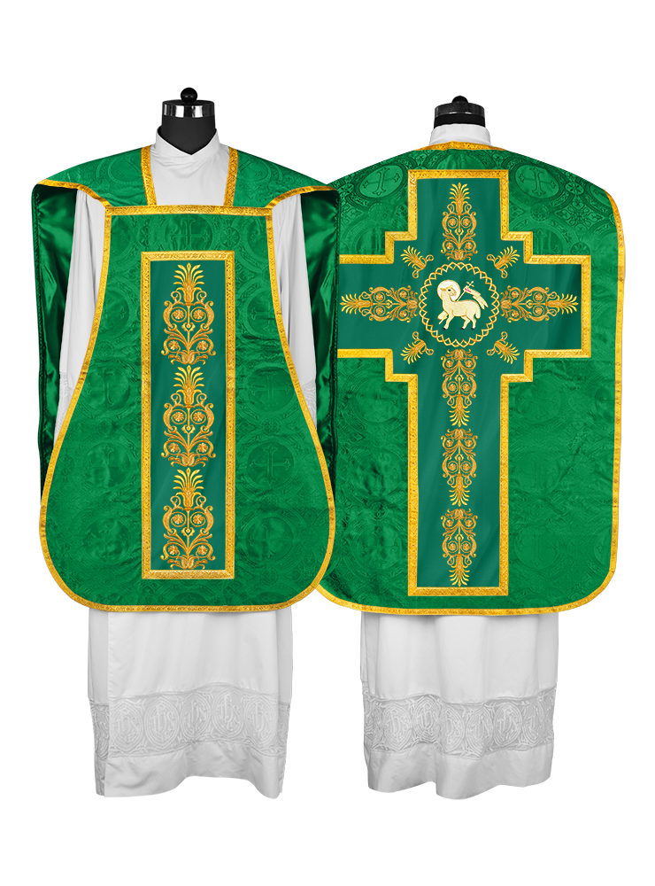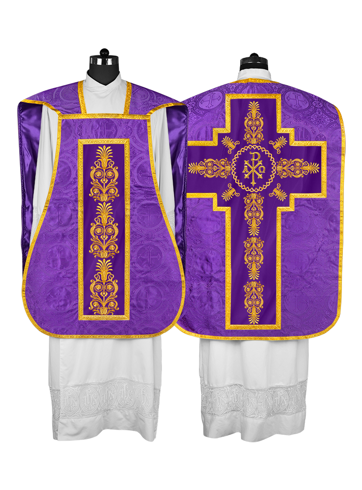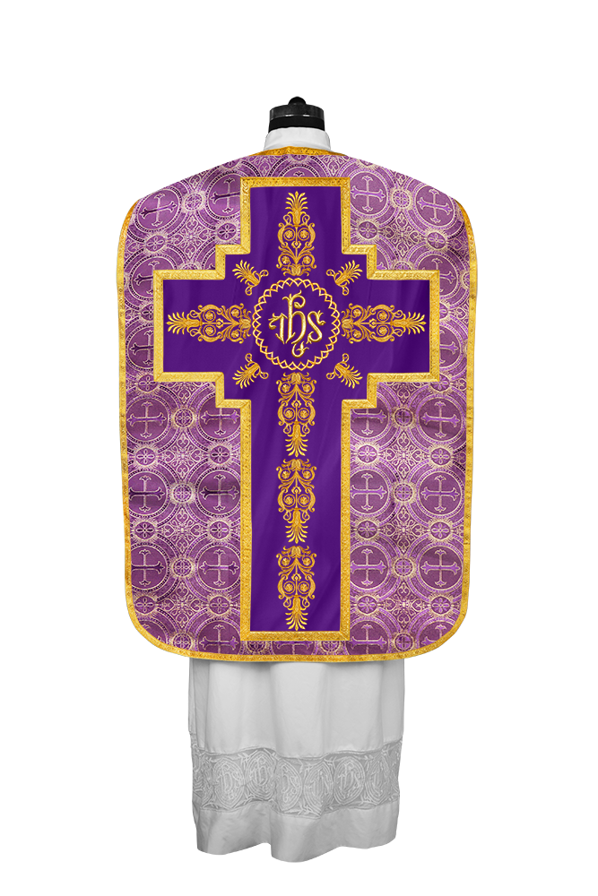 • Handmade craftsmanship honoring centuries-old Roman Catholic vestment tradition.
