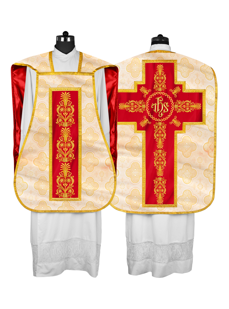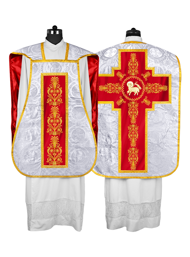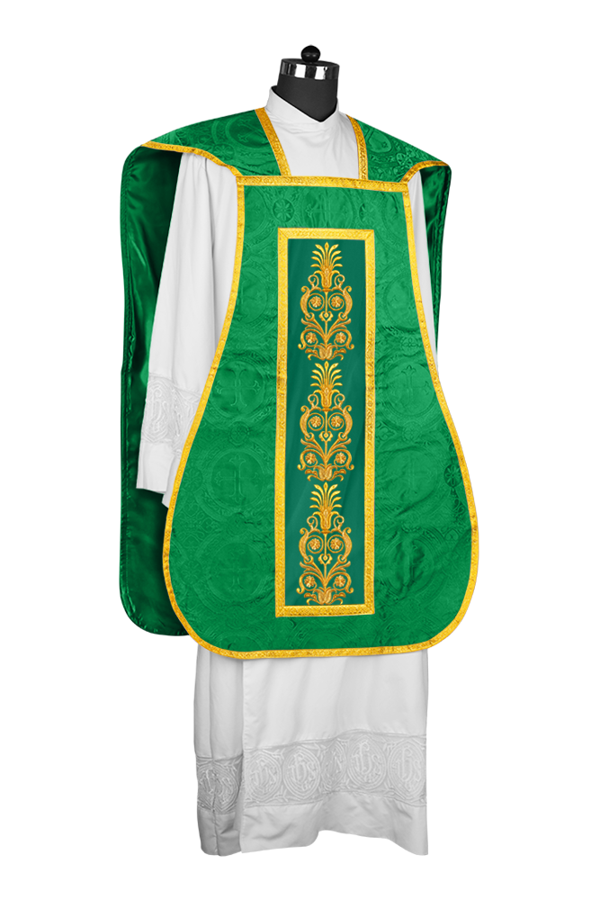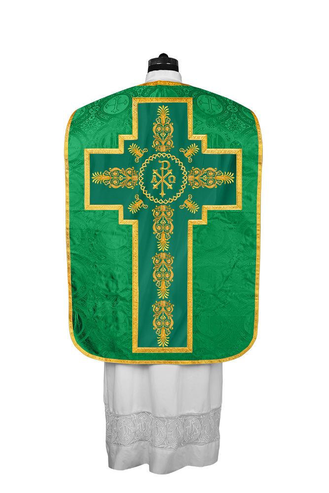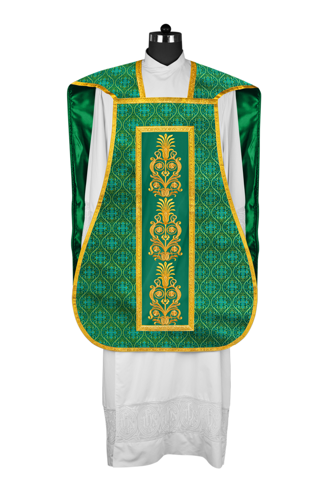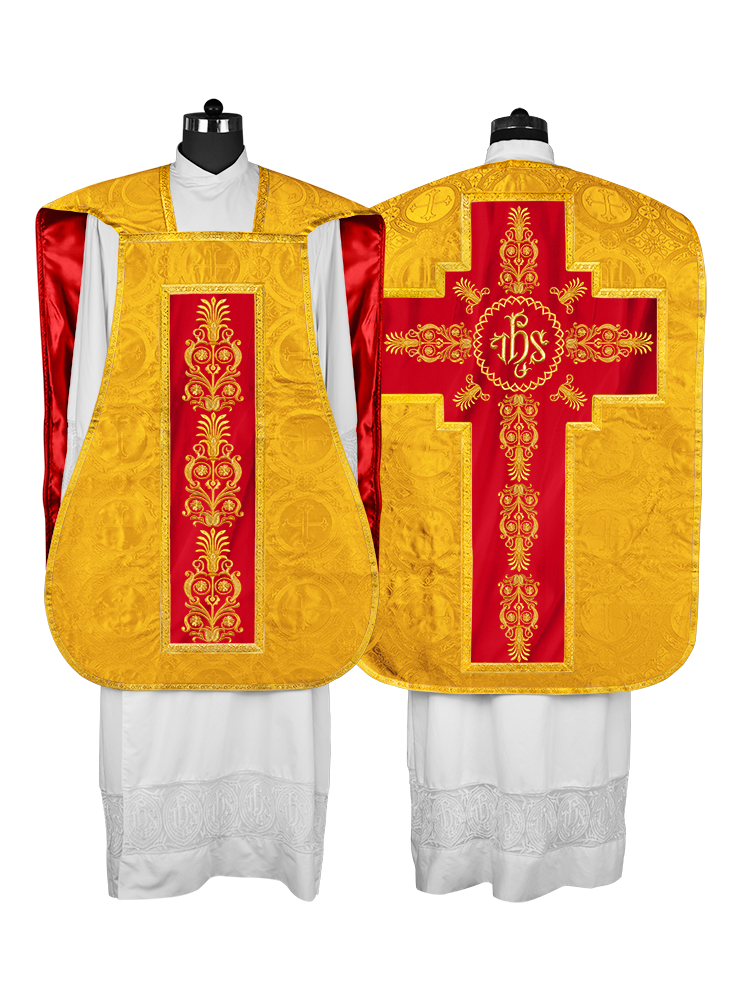 • Handmade craftsmanship honoring centuries-old Roman Catholic vestment tradition.