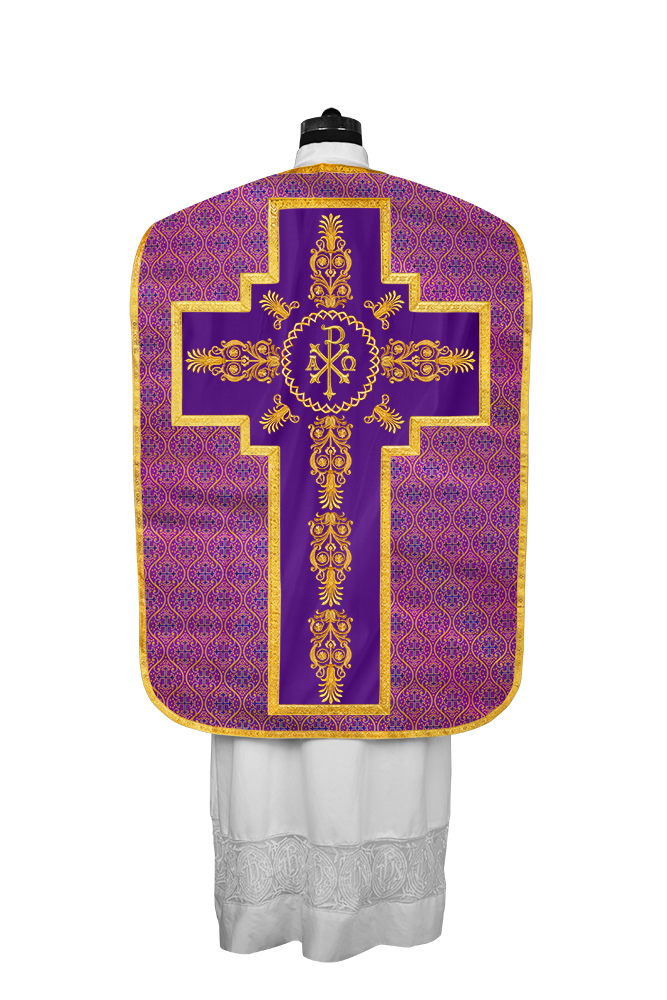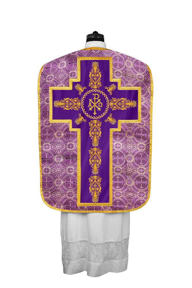 This Embroidered Roman Fiddleback Chasuble is a handcrafted liturgical vestment designed for clergy who value authenticity, reverence, and time-honoured tradition.