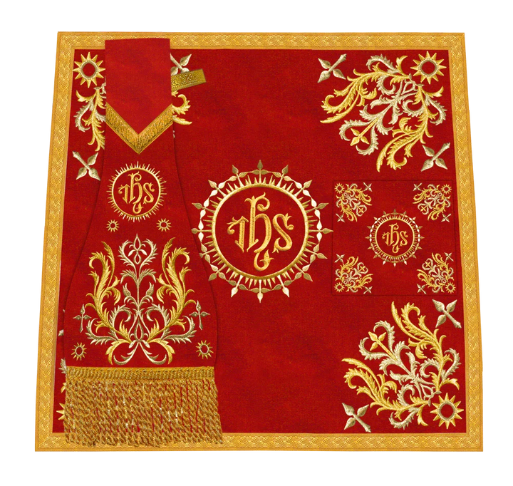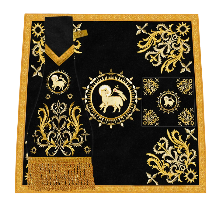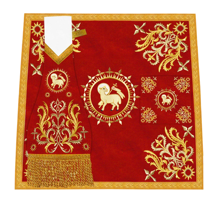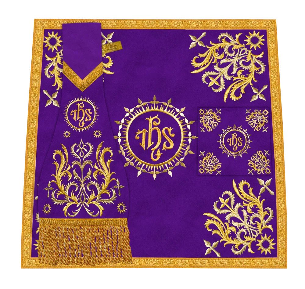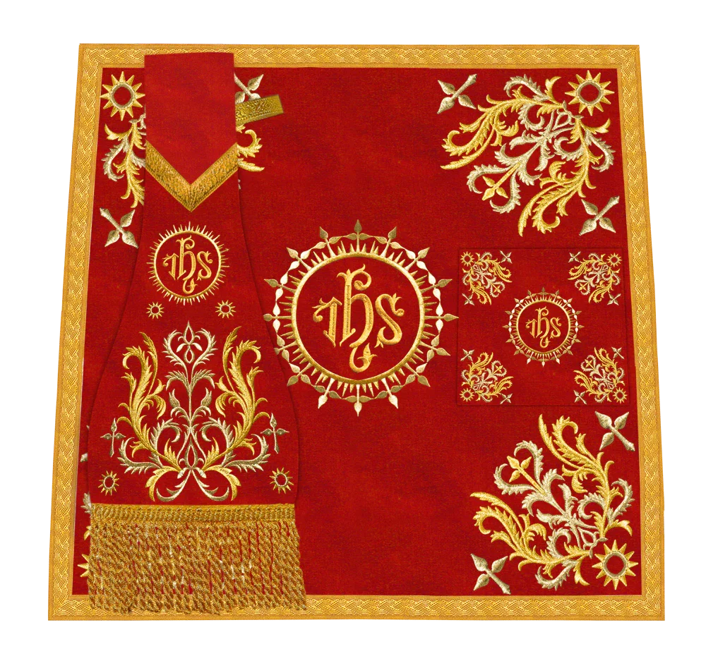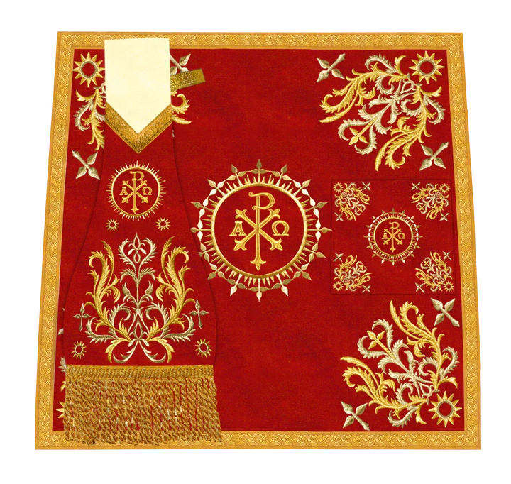 Elevate every celebration of the Eucharist with the Embroidered Mass Set. It is meticulously crafted for clergy who value reverence, tradition, and exceptional craftsmanship. Made from premium Taffeta fabric, each piece offers a luxurious texture and subtle sheen. The set provides enduring quality and enhances the solemnity of every liturgical ceremony.