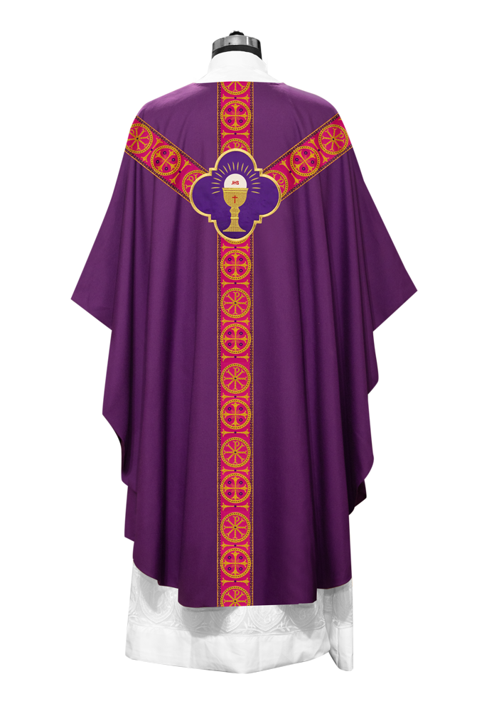 • Select from IHS, PAX, Agnus Dei, or Chalice motifs, intricately woven into the central orphrey.