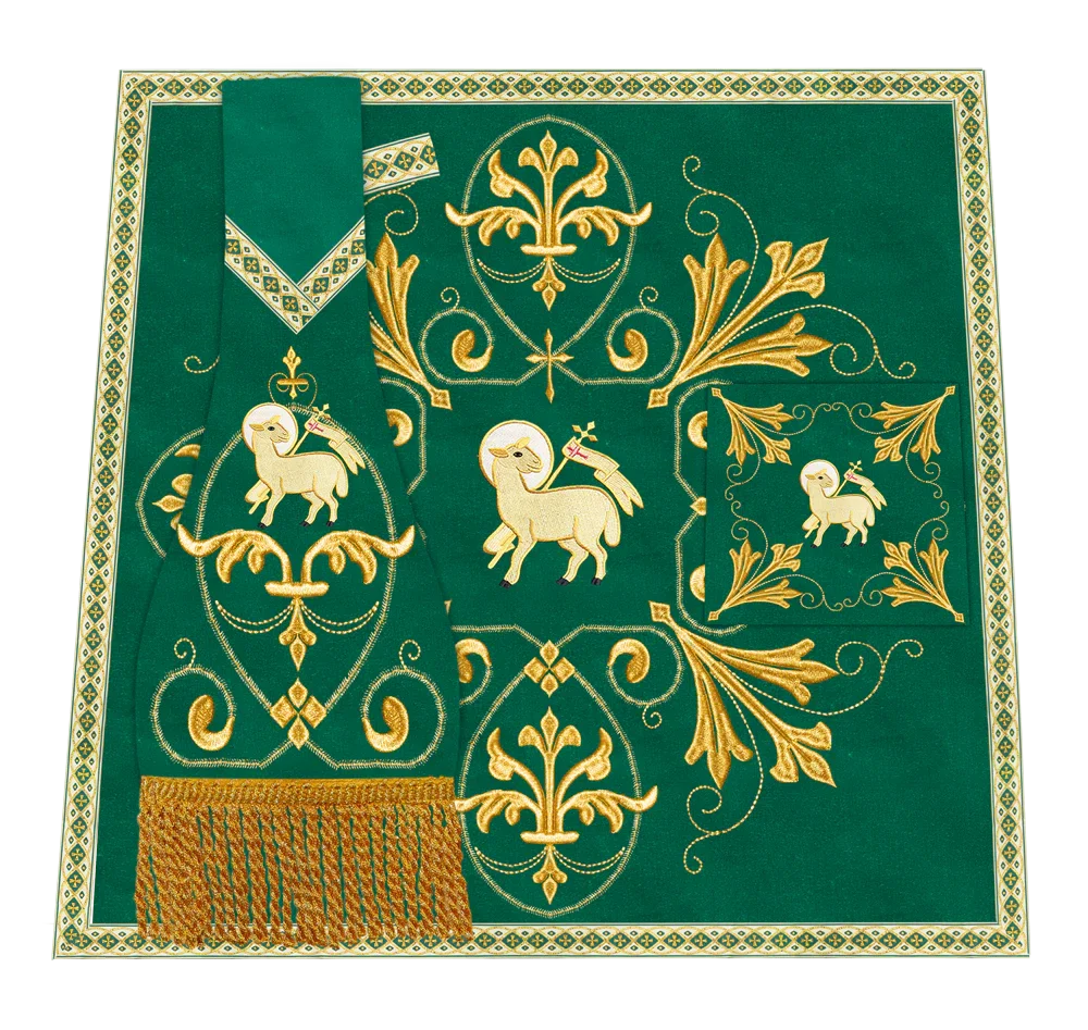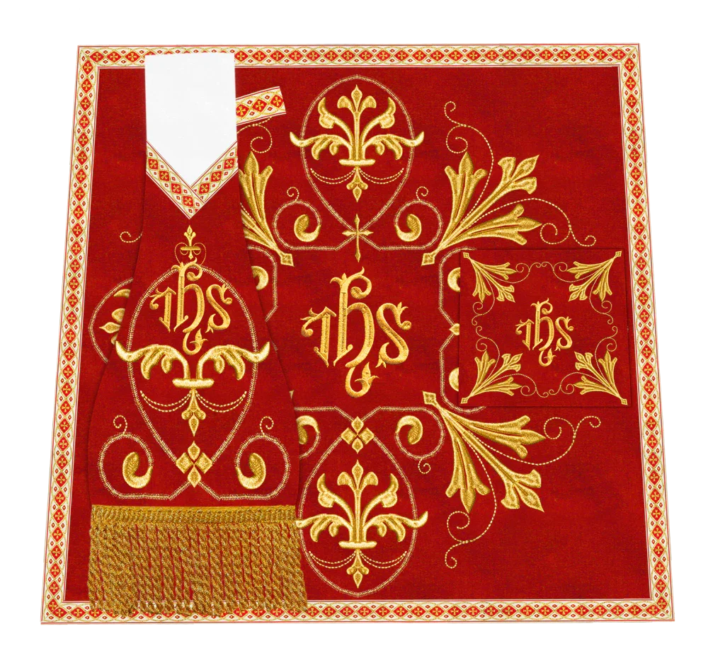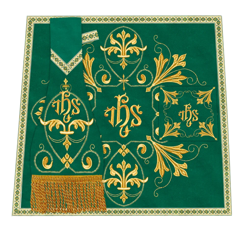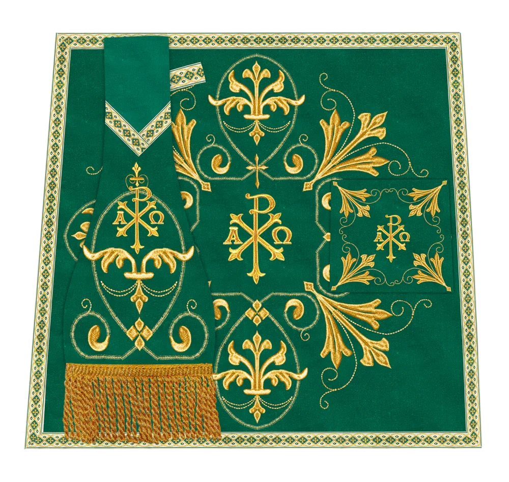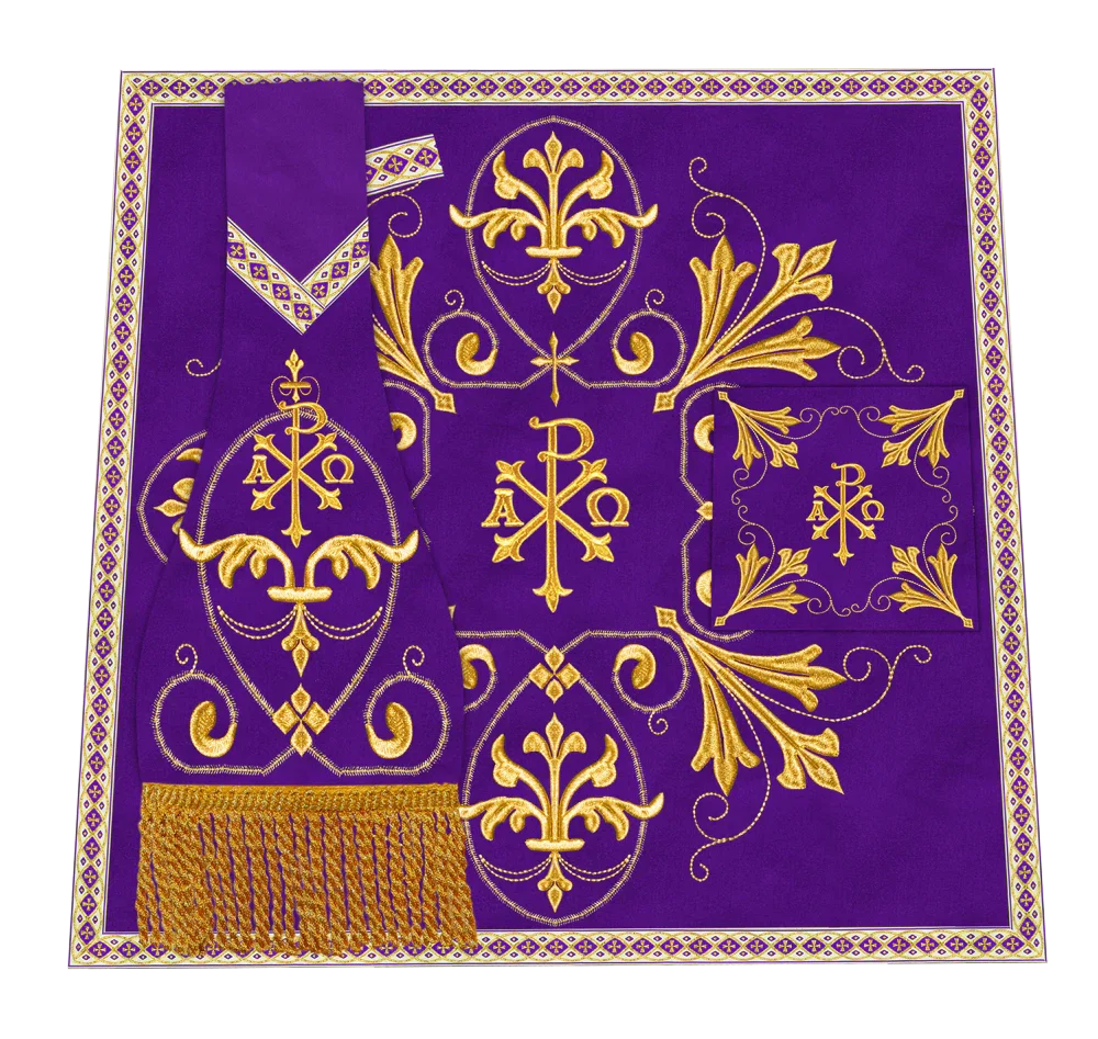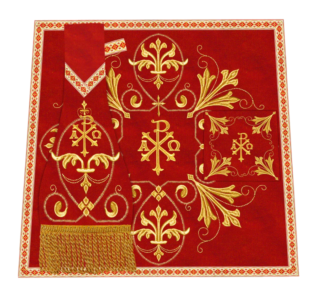 Elevate every celebration of the Eucharist with the Church Mass Set. It is meticulously crafted for clergy who value reverence, tradition, and exceptional craftsmanship. Made from premium Taffeta fabric, each piece offers a luxurious texture and subtle sheen. The set provides enduring quality and enhances the solemnity of every liturgical ceremony.
