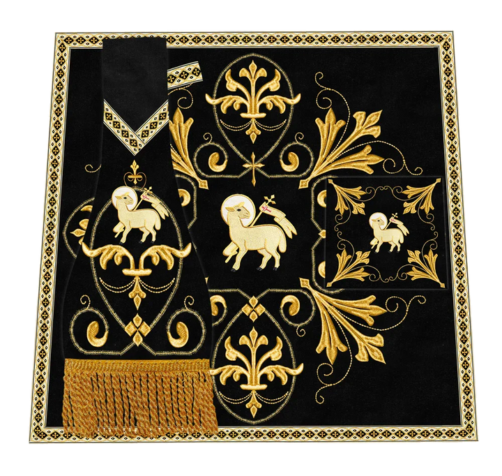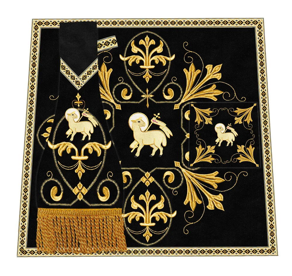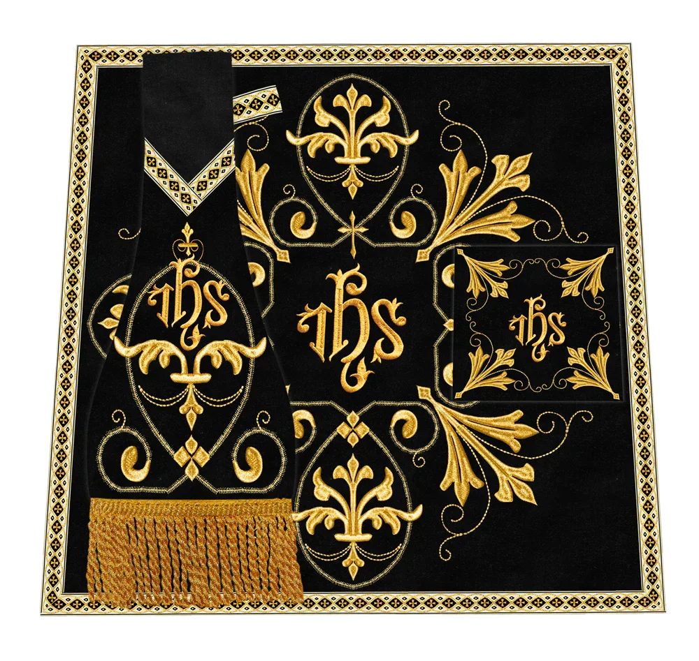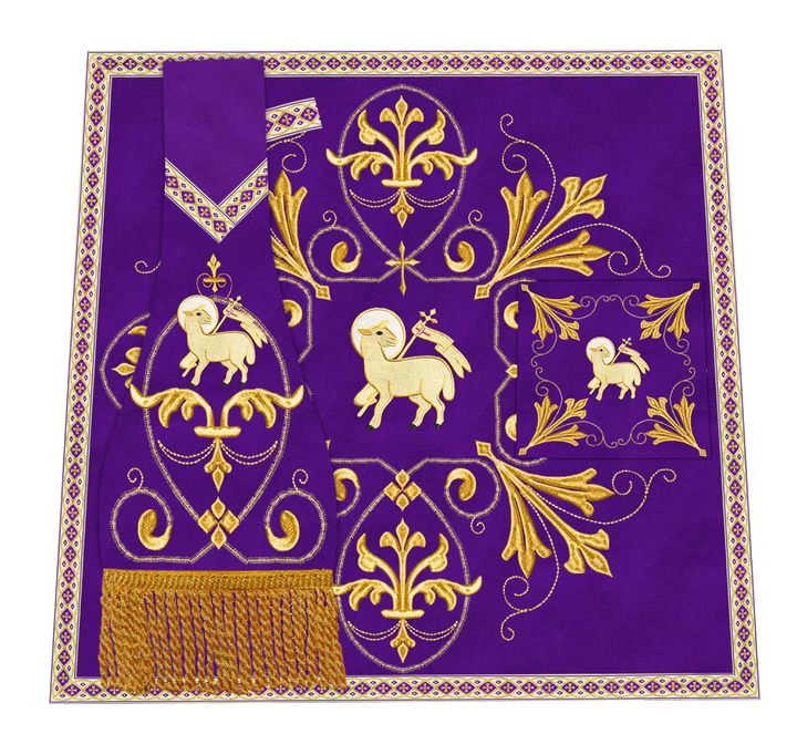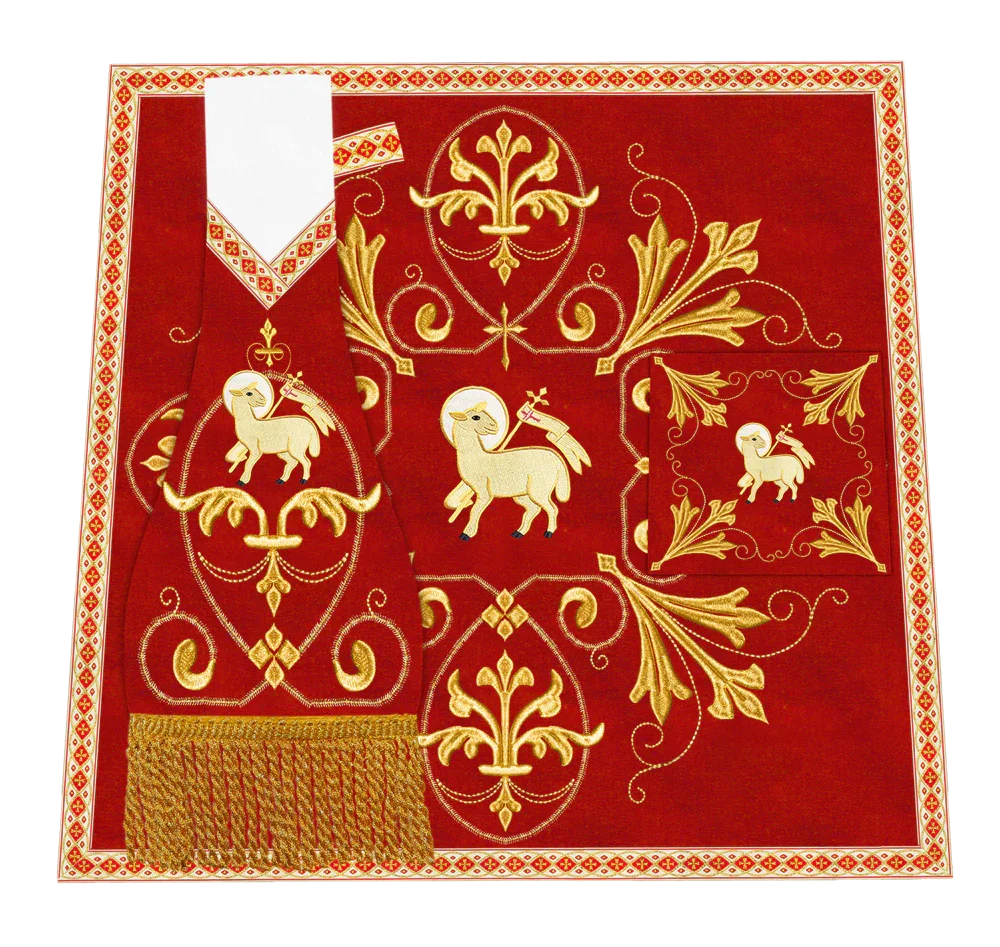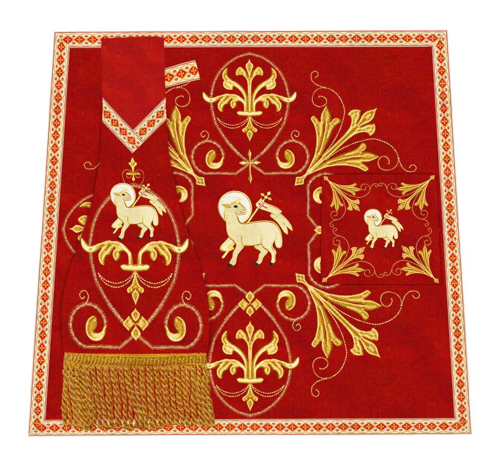 Elevate every celebration of the Eucharist with the Church Mass Set. It is meticulously crafted for clergy who value reverence, tradition, and exceptional craftsmanship. Made from premium Taffeta fabric, each piece offers a luxurious texture and subtle sheen. The set provides enduring quality and enhances the solemnity of every liturgical ceremony.