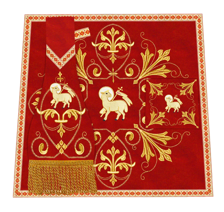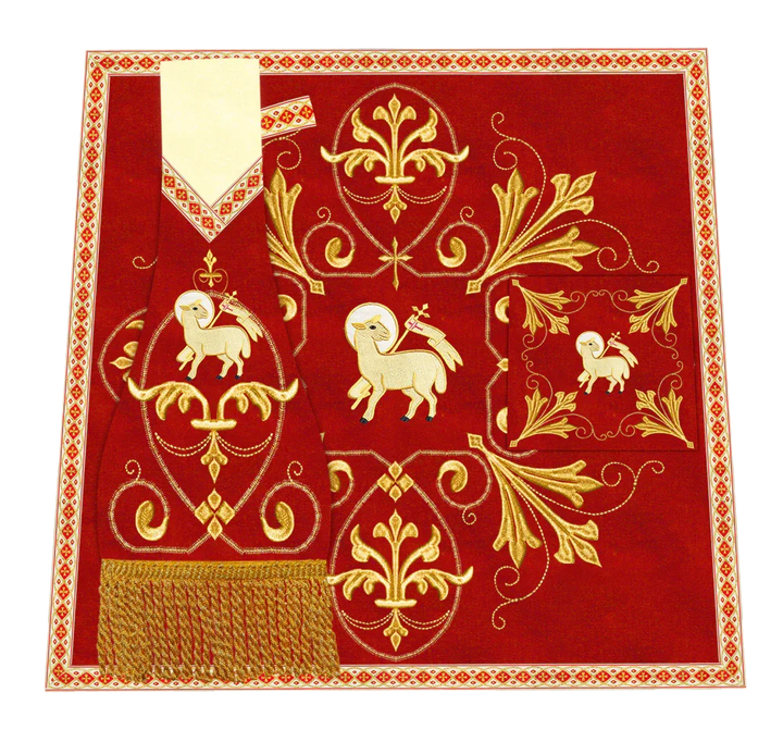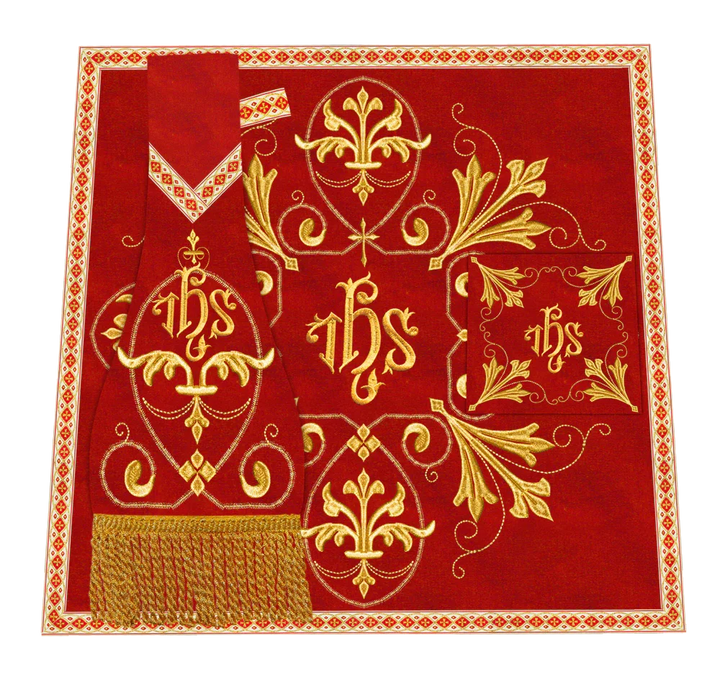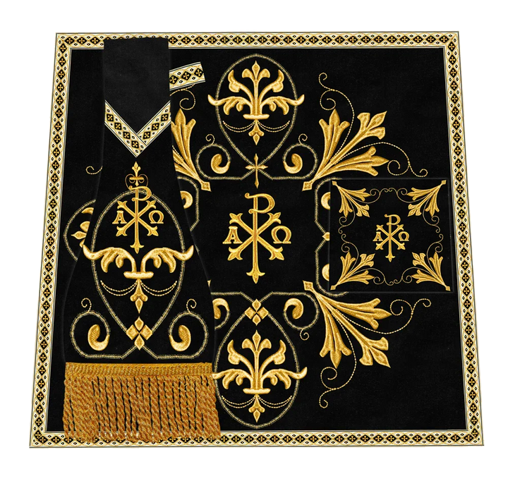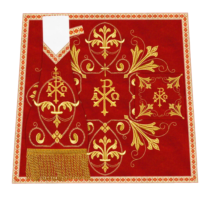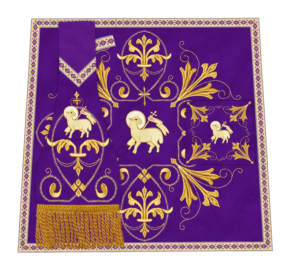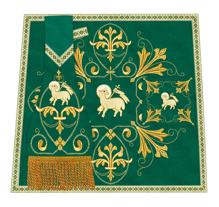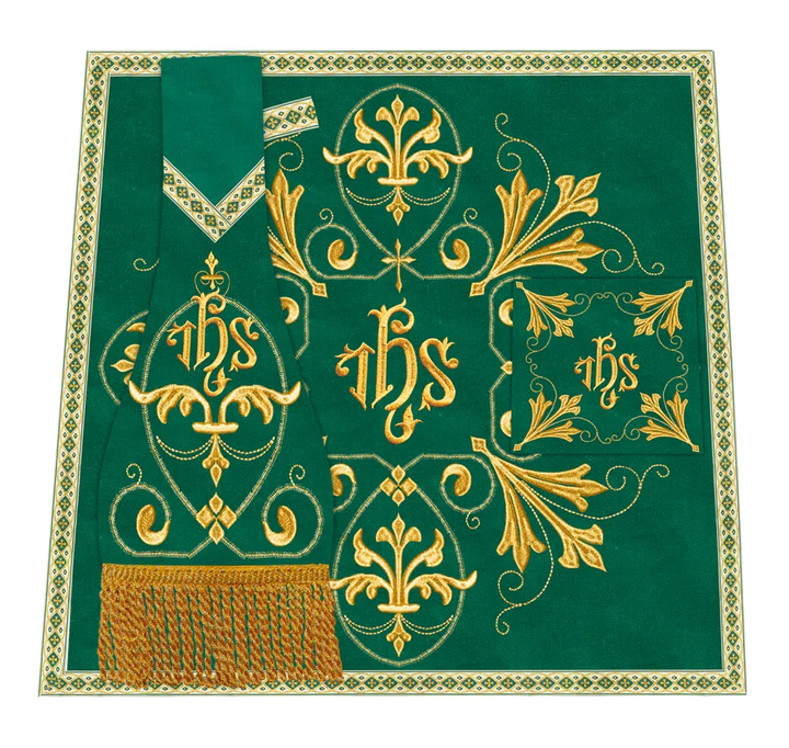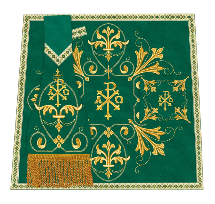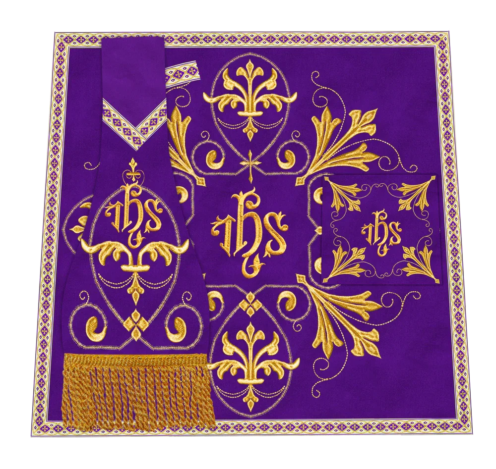 Elevate every celebration of the Eucharist with the Church Mass Set. It is meticulously crafted for clergy who value reverence, tradition, and exceptional craftsmanship. Made from premium Taffeta fabric, each piece offers a luxurious texture and subtle sheen. The set provides enduring quality and enhances the solemnity of every liturgical ceremony.