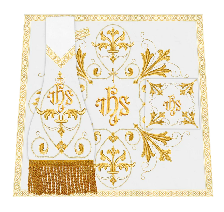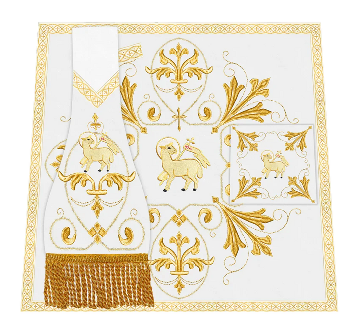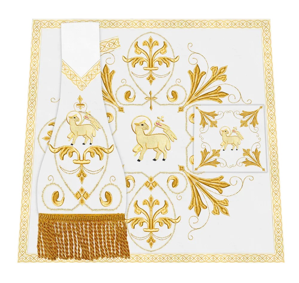 Handcrafted Altar Mass Set in luxurious Taffeta with intricate embroidery, combining tradition, elegance, comfort, and lasting durability.