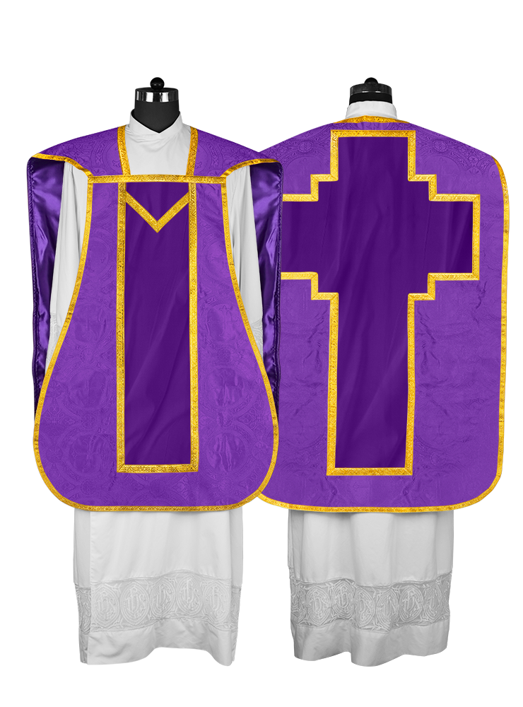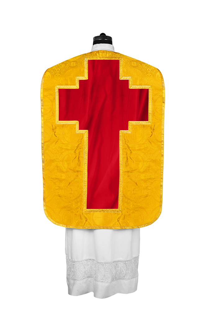 • Ornate orphrey detailed with exquisite gold braiding for a refined, traditional finish