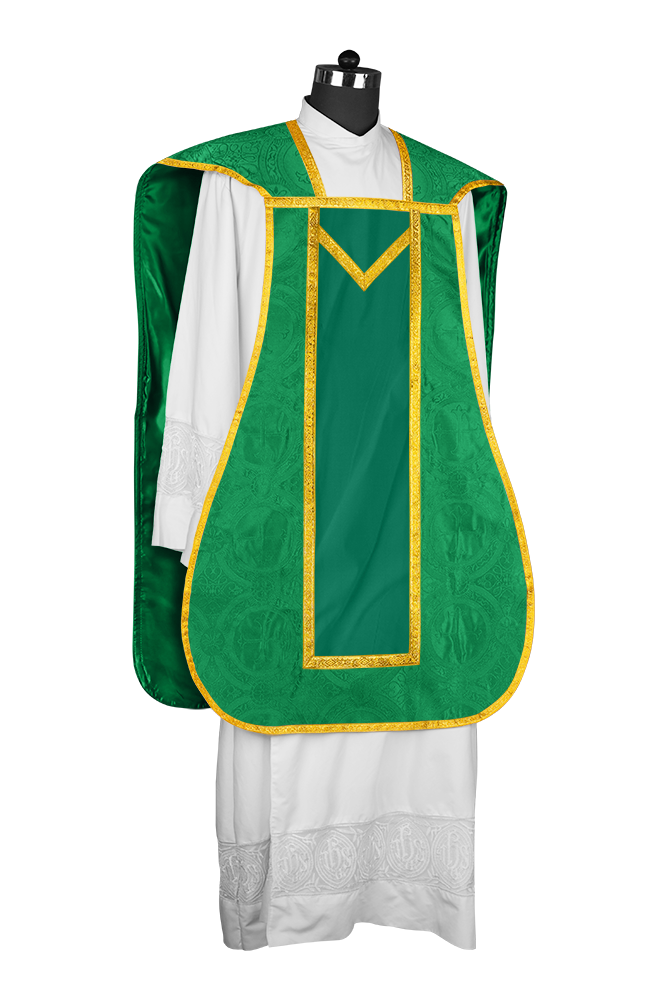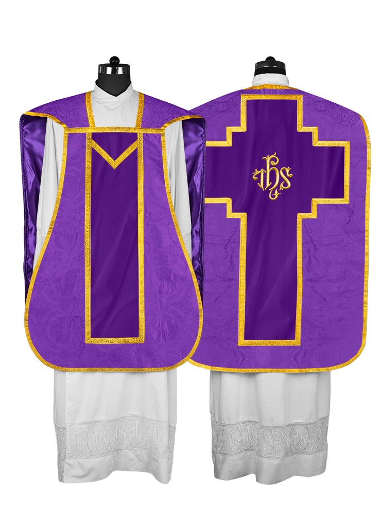Celebrate sacred tradition with this Fiddleback Vestment, featuring beautifully embellished motifs designed to elevate every liturgical service.