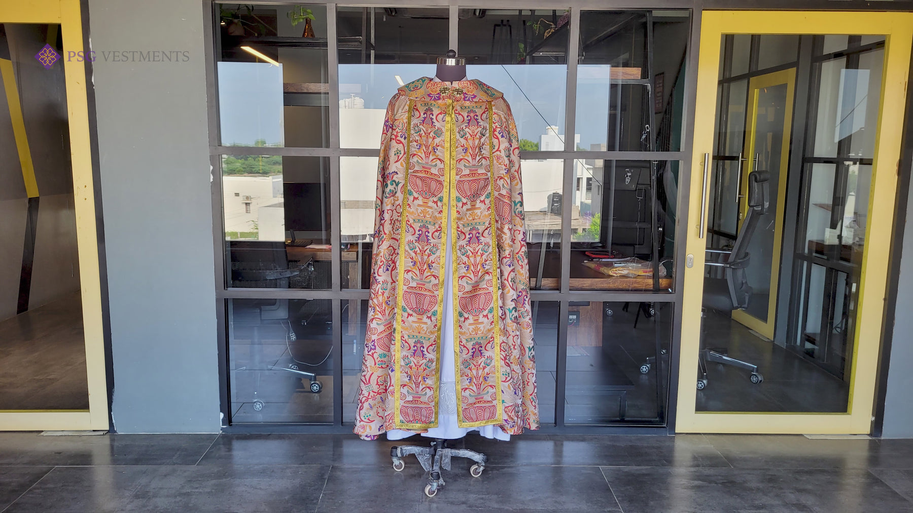 This Gothic Cope unites historical Gothic artistry with modern excellence—an ideal choice for clergy who wish to embody both faith and refinement in every sacred occasion.