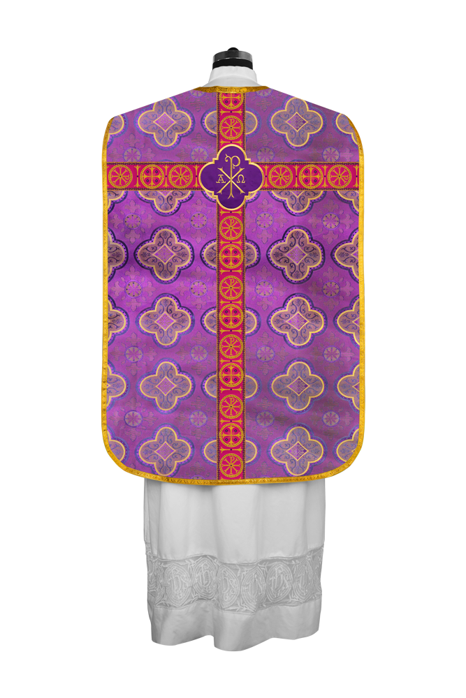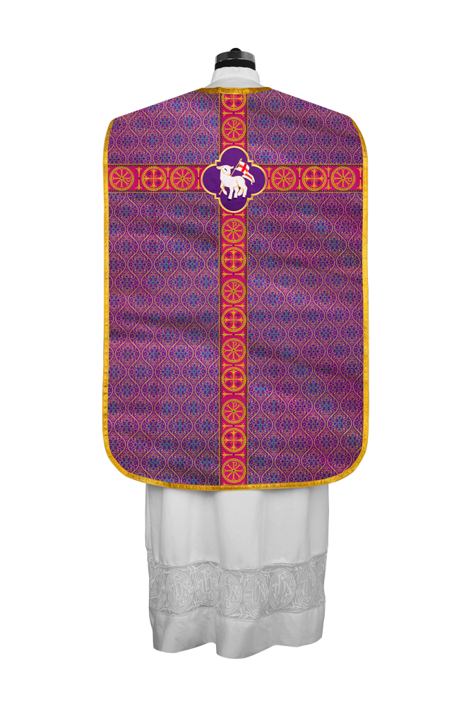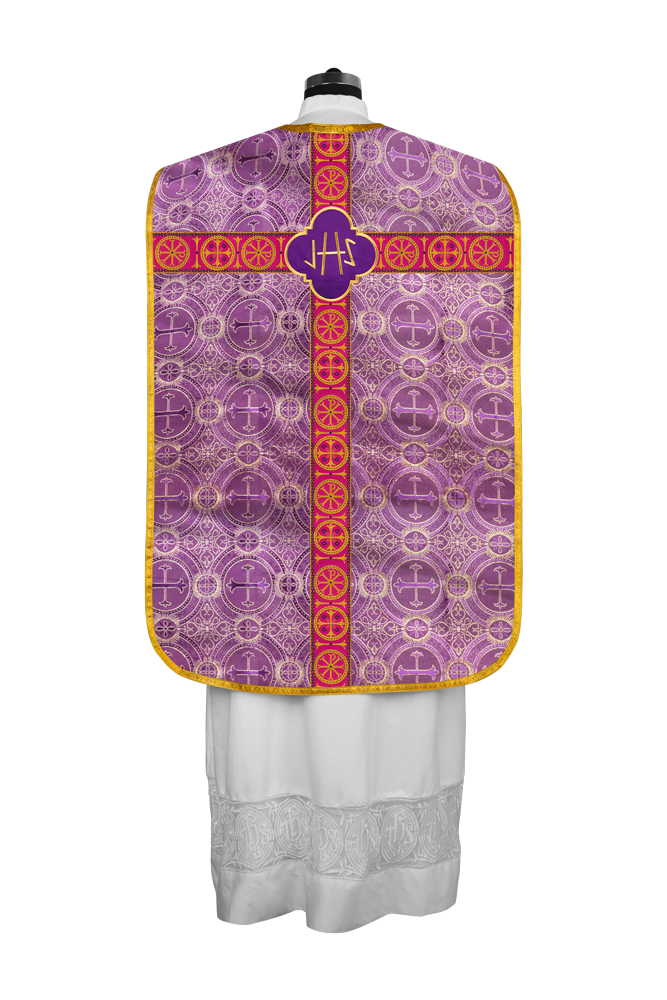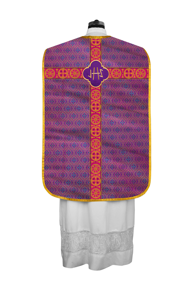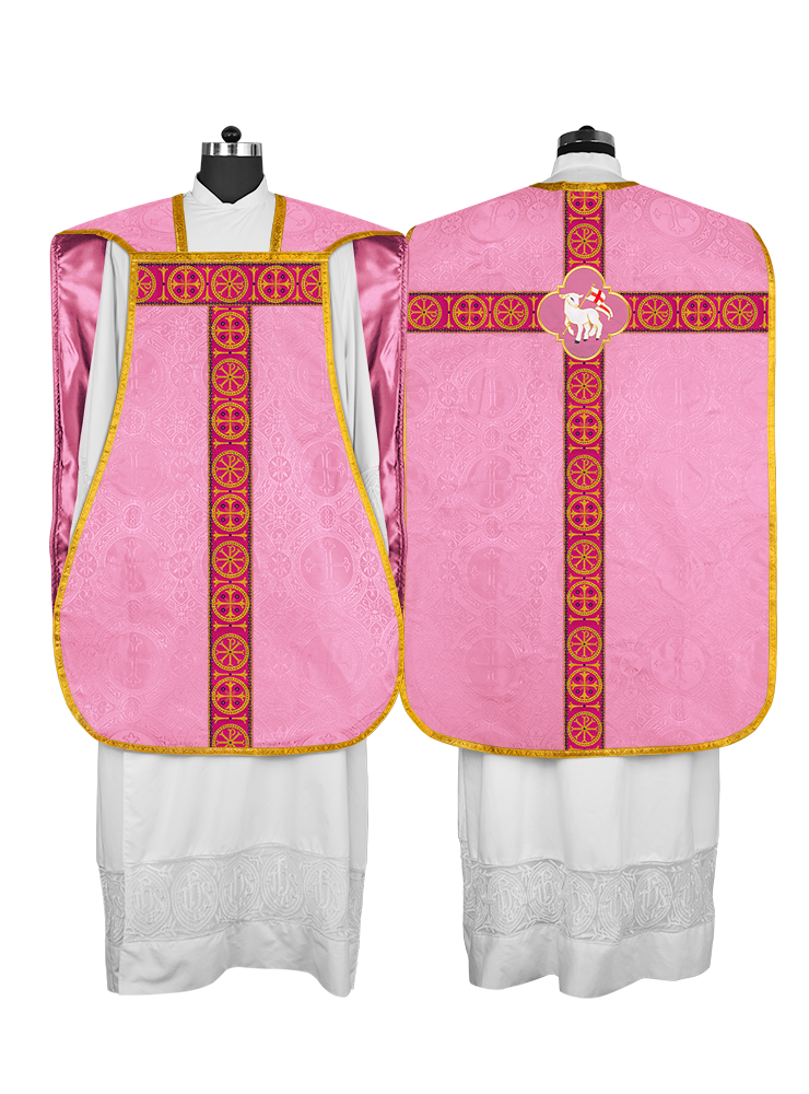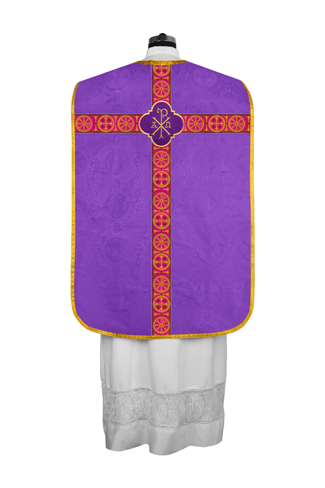 Casulla romana con motivo espiritual y trenzas ornamentadas