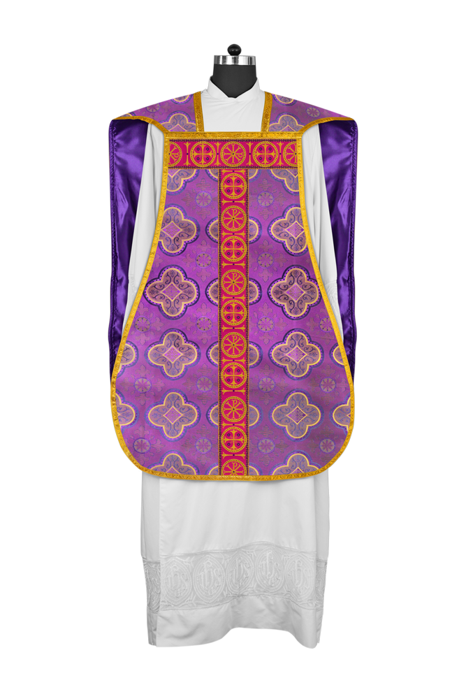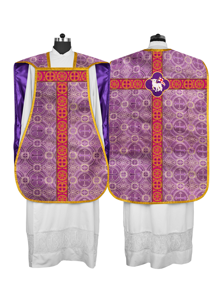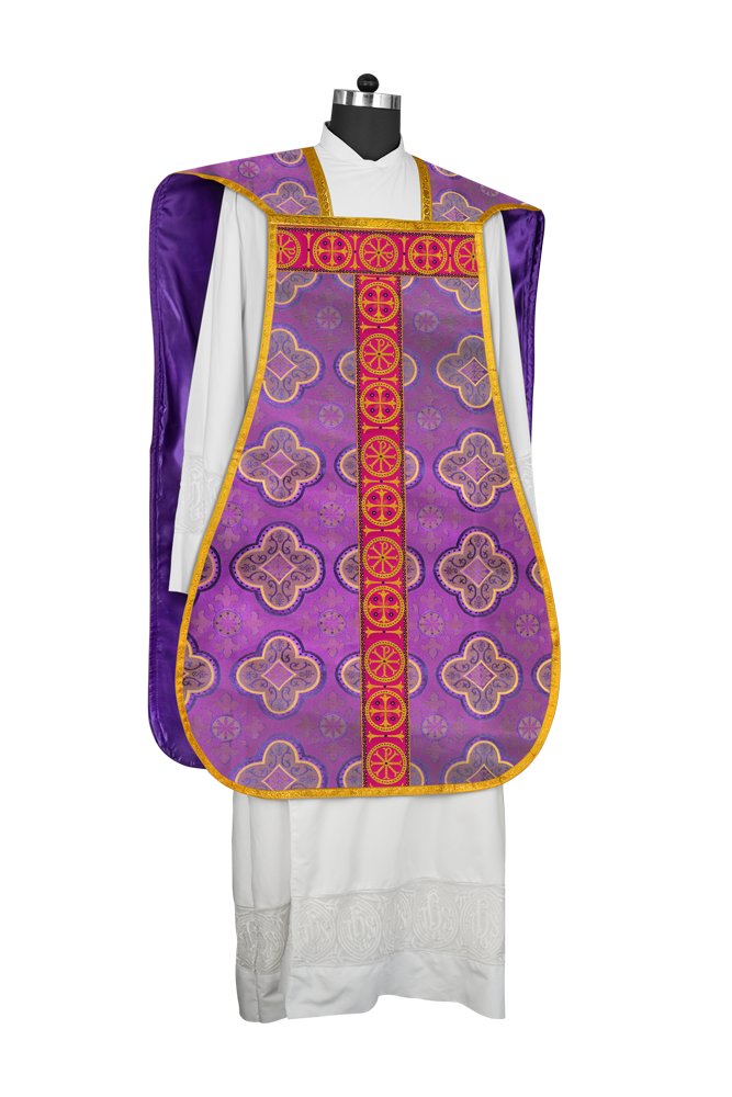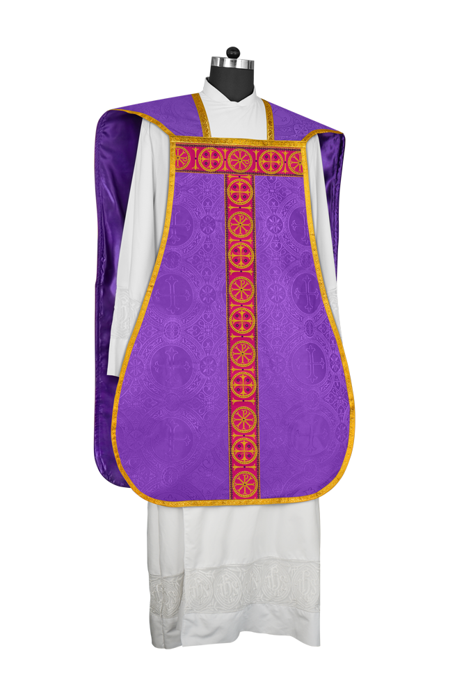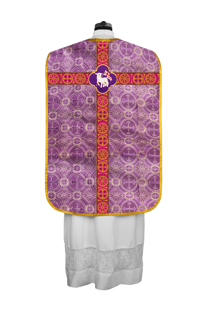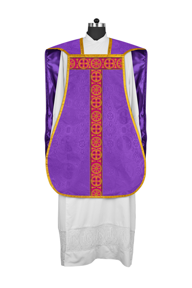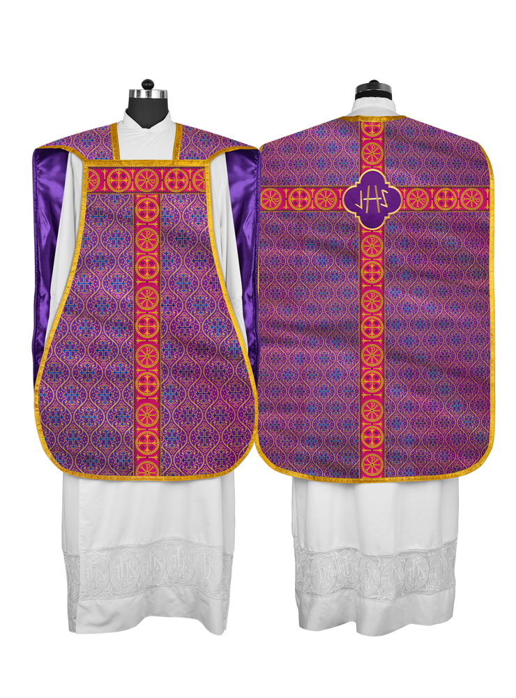 Casulla romana con motivo espiritual y trenzas ornamentadas