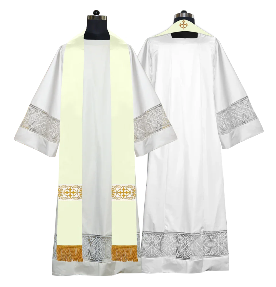 • La estola a juego está incluida en el conjunto (50" de largo; 6" de ancho)