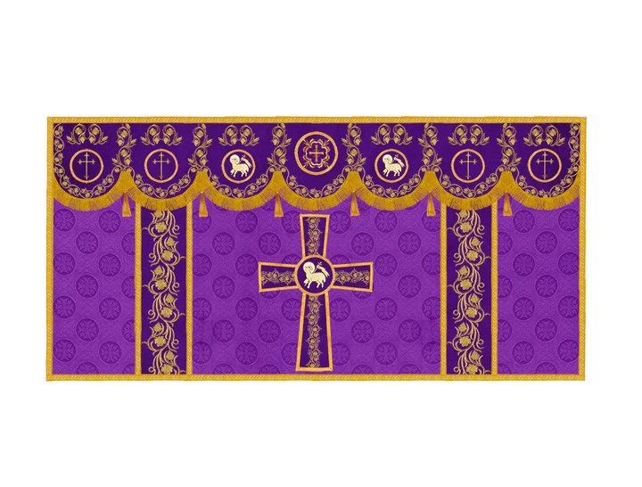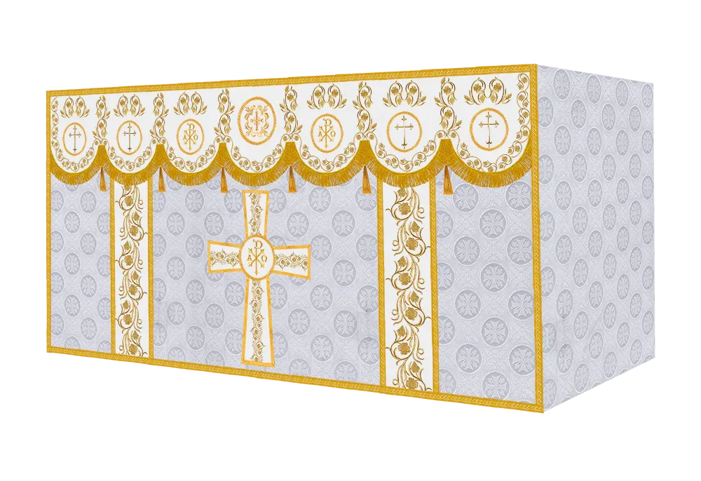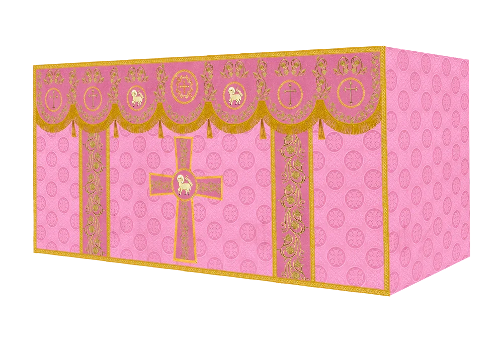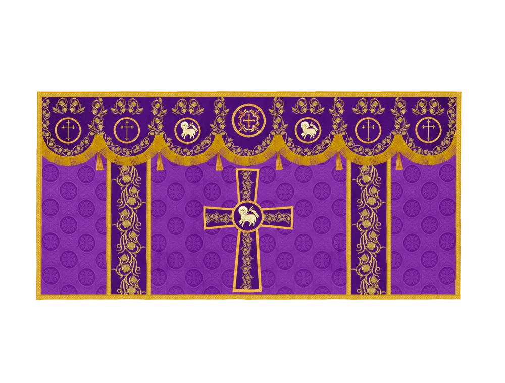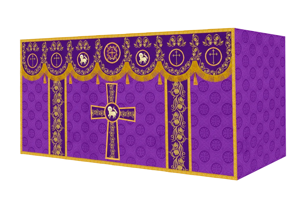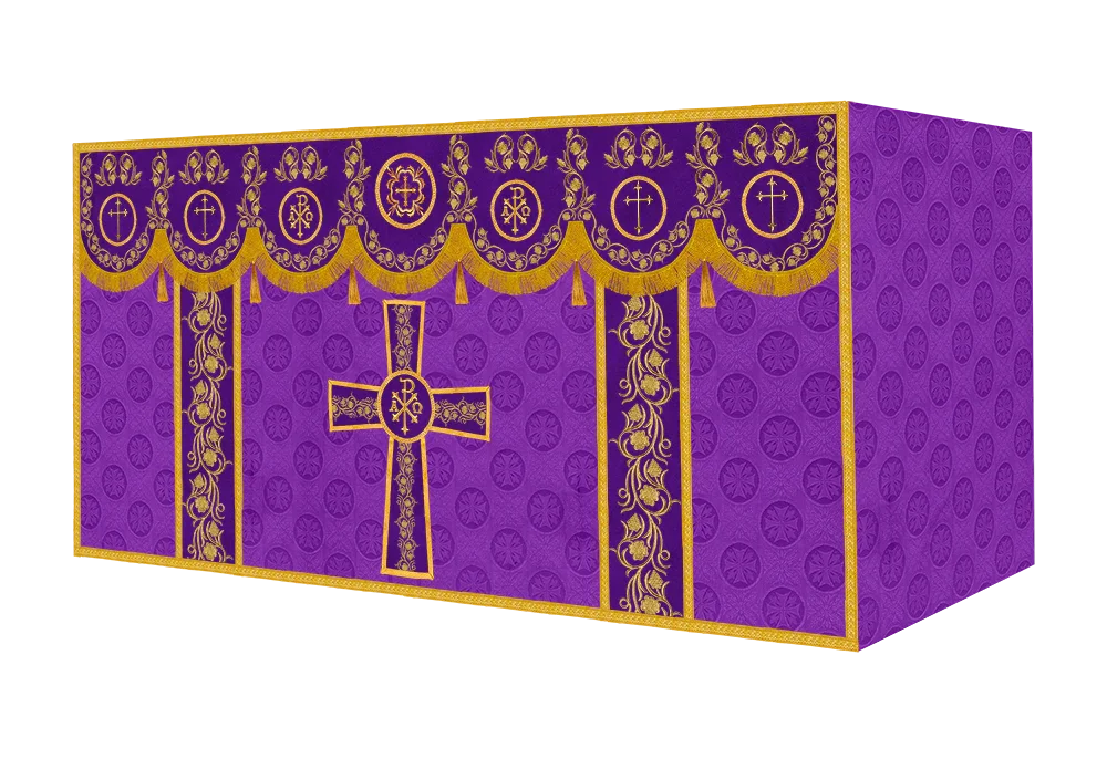 Meticulously handcrafted from premium-quality damask, this Embroidered Altar Cloth exudes elegance and durability. The soft, luxurious fabric is available in all standard liturgical colors to complement any worship space. A fully interlined satin drop adds structure and a graceful drape, enhancing the altarβs beauty and reverence