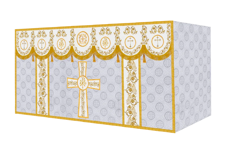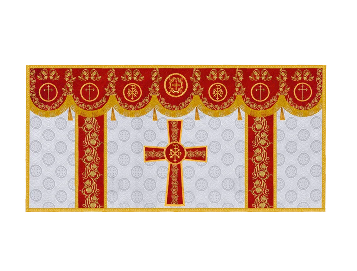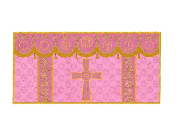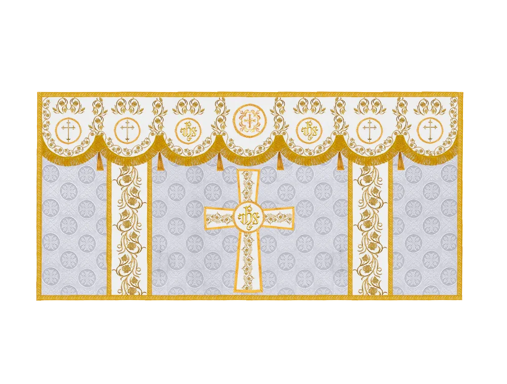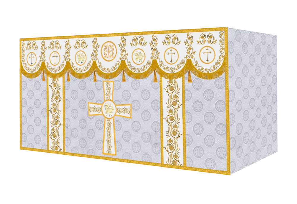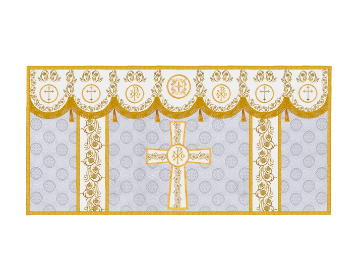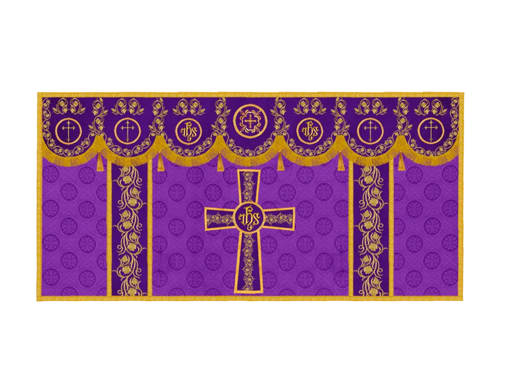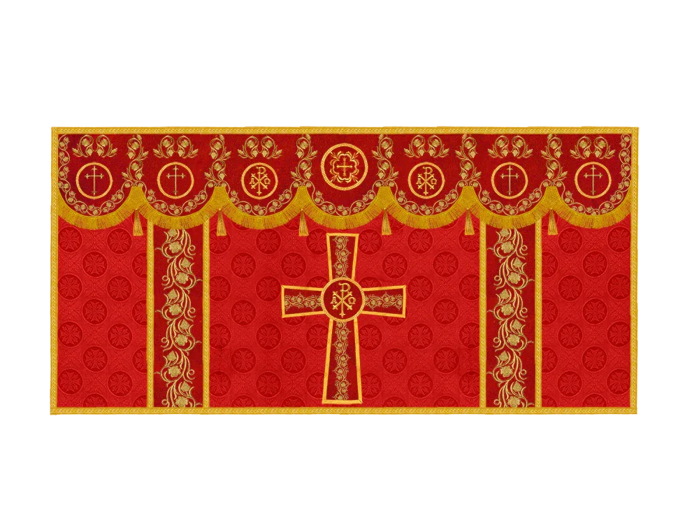 Meticulously handcrafted from premium-quality damask, this Embroidered Altar Cloth exudes elegance and durability. The soft, luxurious fabric is available in all standard liturgical colors to complement any worship space. A fully interlined satin drop adds structure and a graceful drape, enhancing the altarβs beauty and reverence
