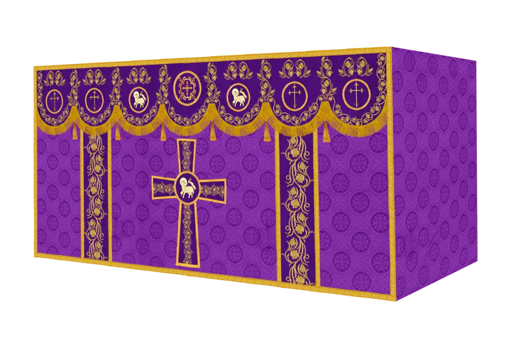 Elevate your sanctuary with the liturgical Altar Cloth Adorned with Detailed Trims and Motif, a perfect blend of sacred tradition and fine craftsmanship. Each cloth is handcrafted by skilled artisans, reflecting timeless beauty, devotion, and the dignity of your worship space.