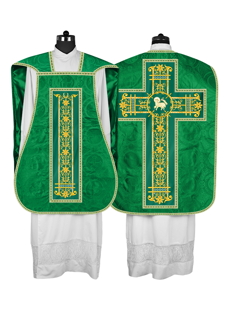 • Handmade craftsmanship honoring centuries-old Roman Catholic vestment tradition.