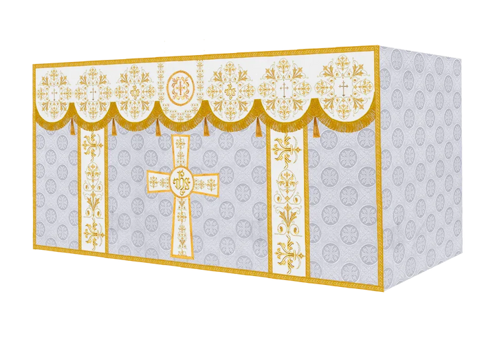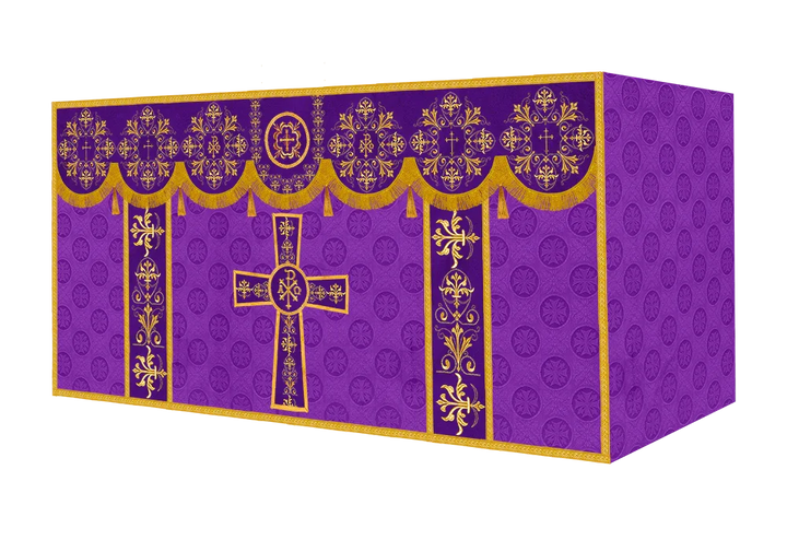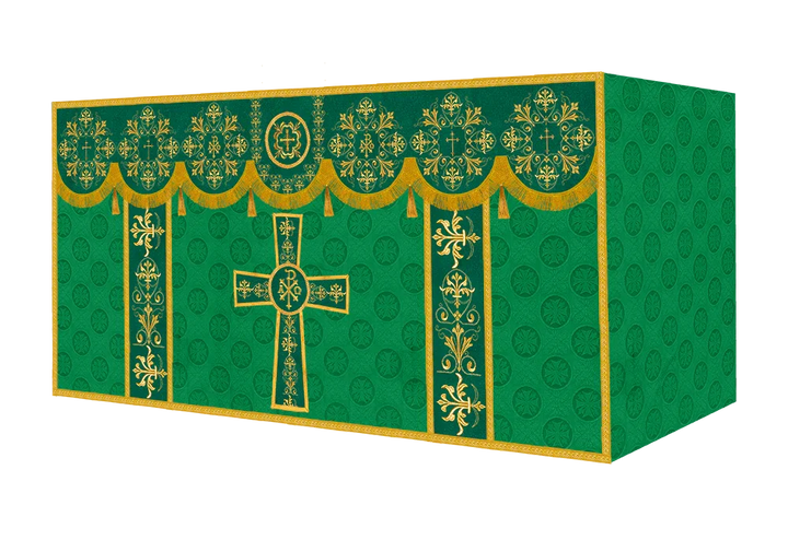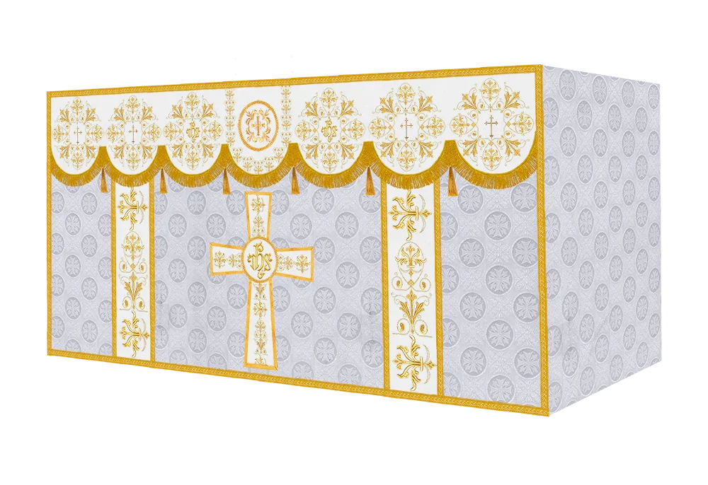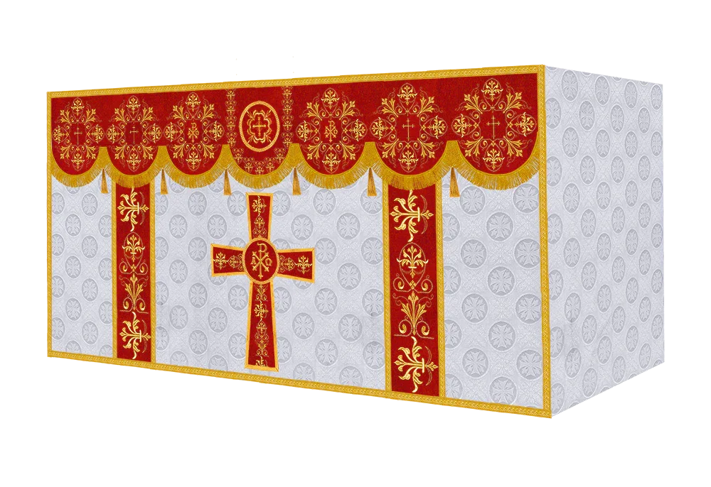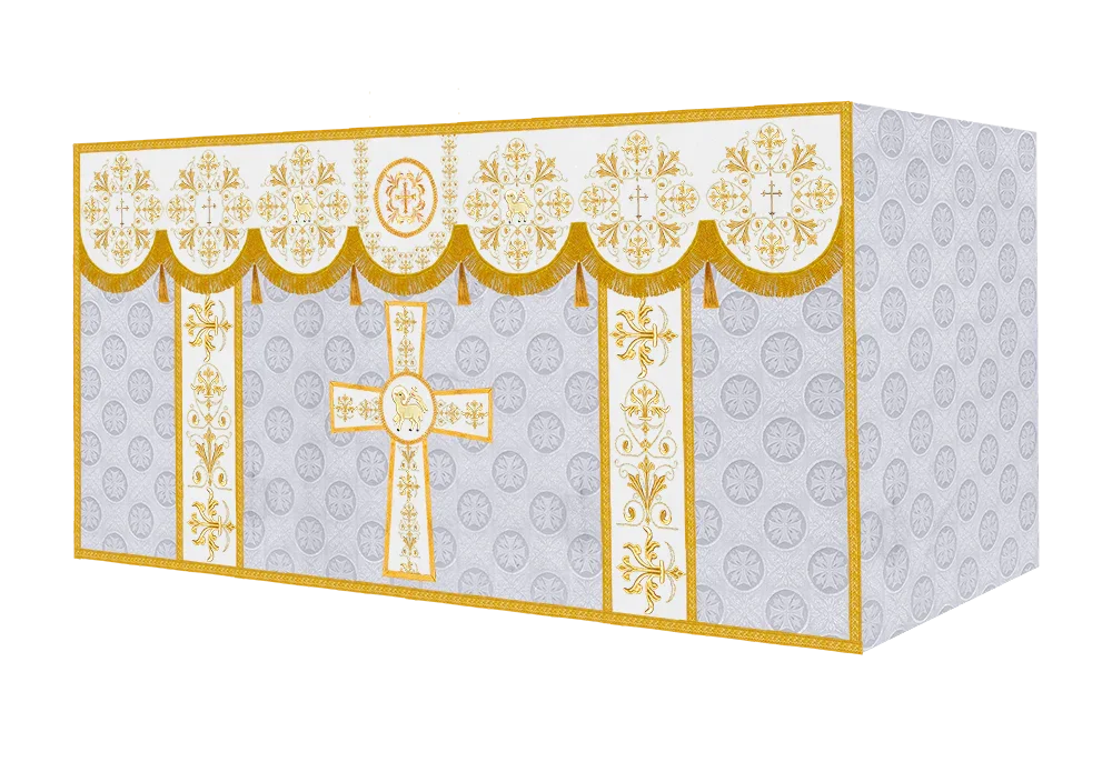 The Liturgical Altar Cloth with Elegant Embroidery Trims blends craftsmanship, luxury, and spiritual significance.Β Its intricate embroidery and refined trims create a dignified centerpiece. The structured satin drop adds elegance to any sanctuary.Β Ideal for congregations that value quality, heritage, and reverence.Β This altar cloth enhances every liturgical celebration.Β It remains a treasured part of your church’s sacred seasons.
