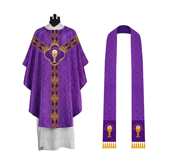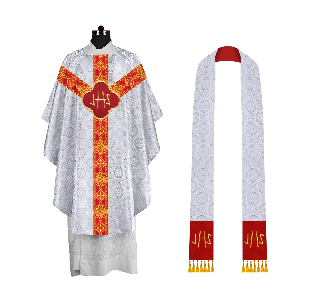 The Liturgical Gothic Chasuble is a finely handcrafted vestment that embodies sacred tradition and timeless craftsmanship.