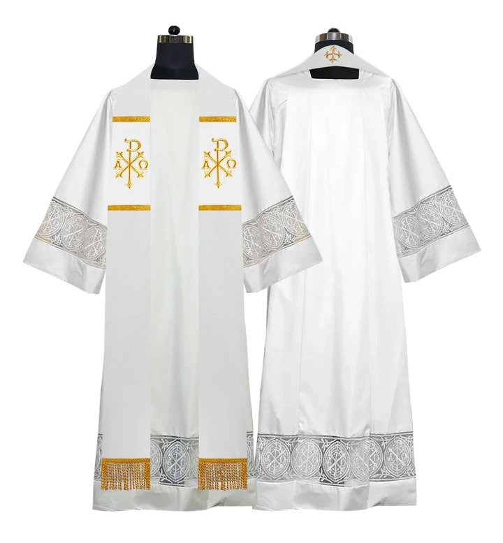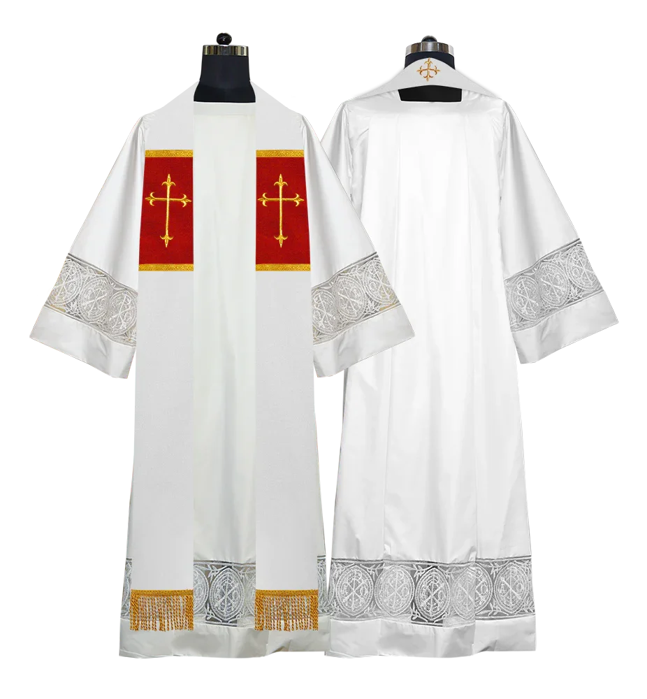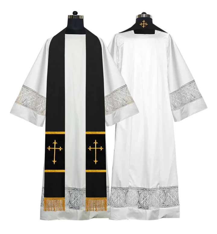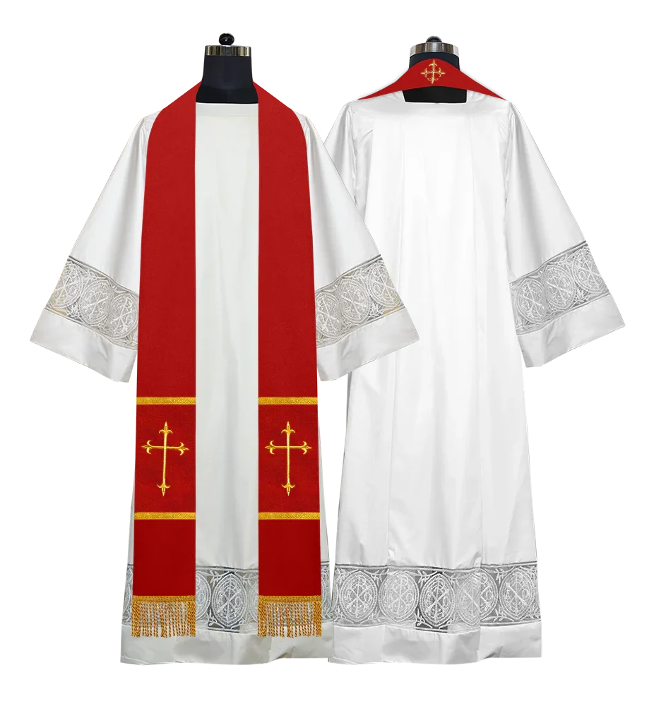 • The elegant stole displays a golden cross embroidered at the back of the neck, radiating reverence and grace.
