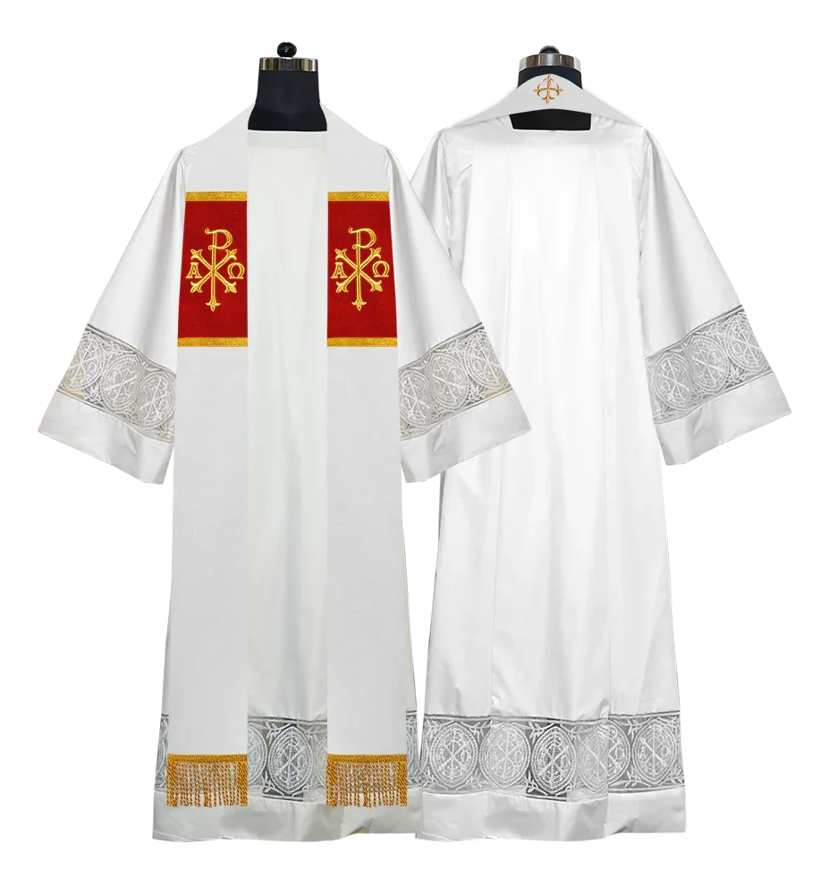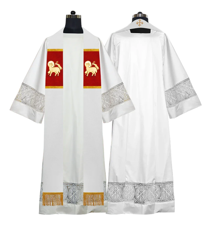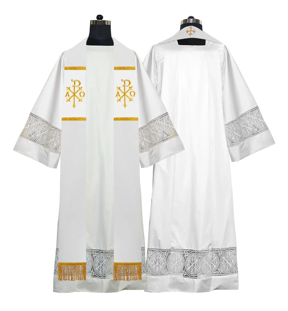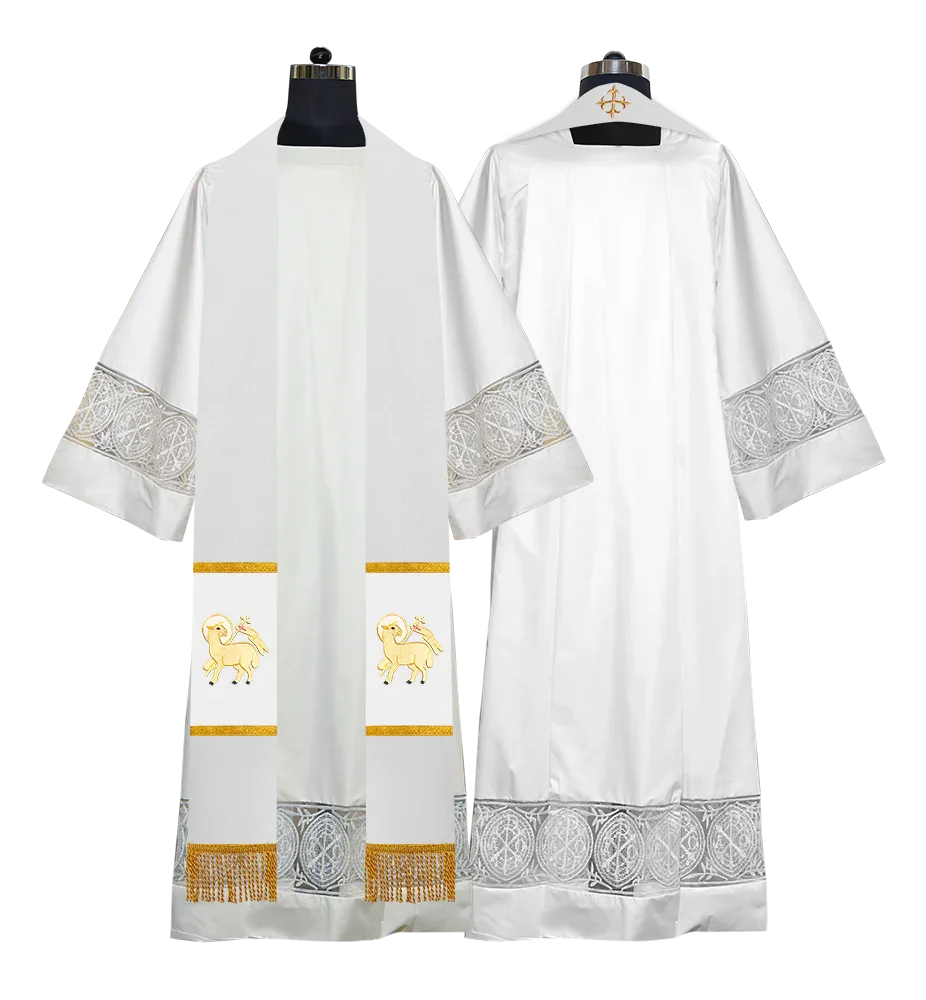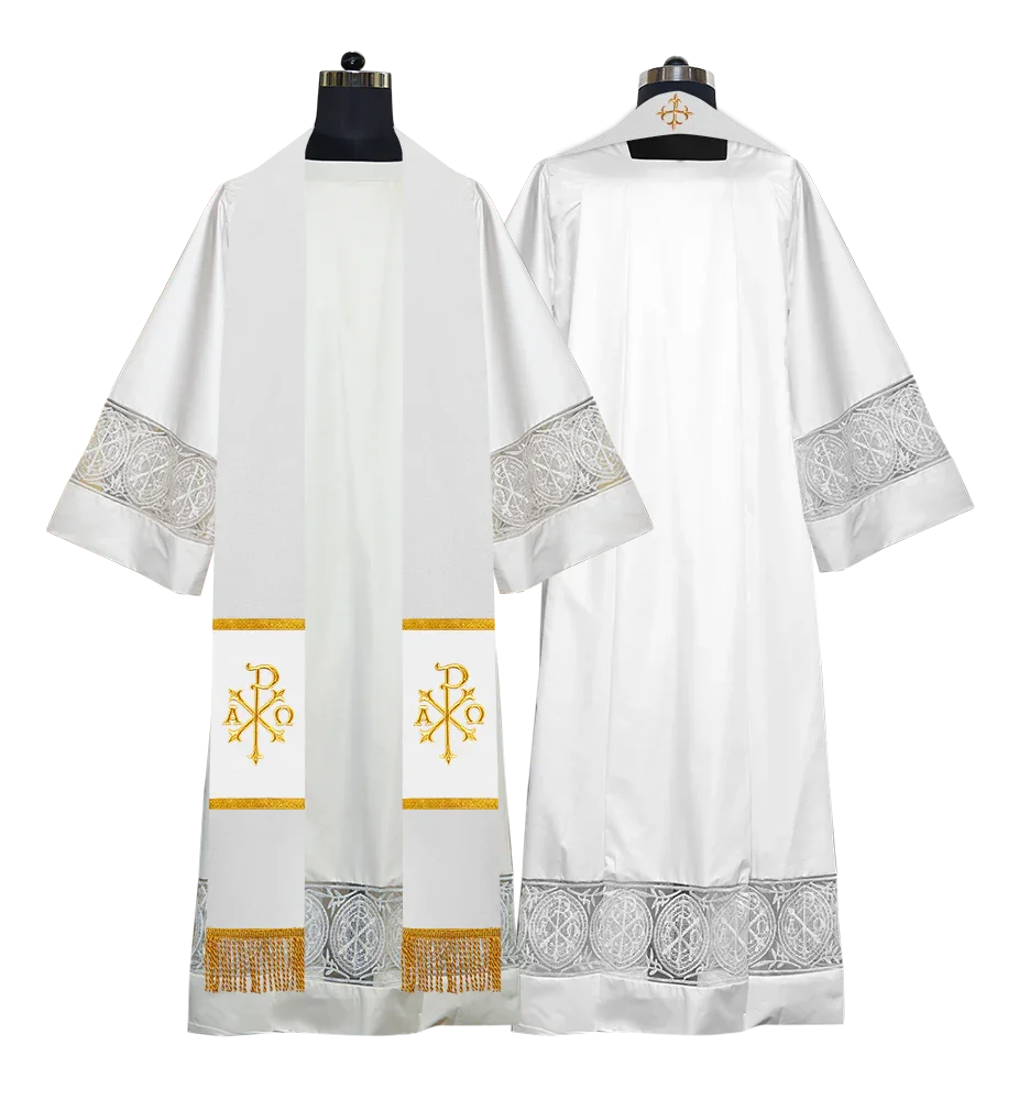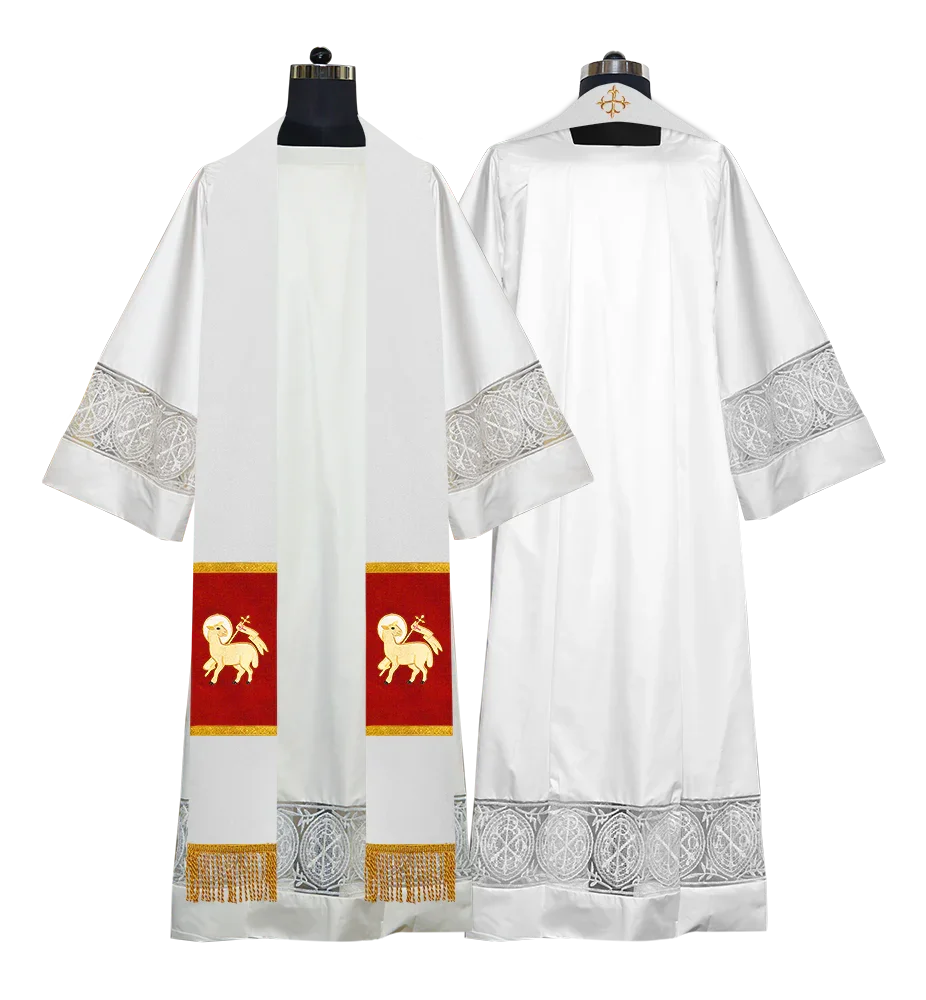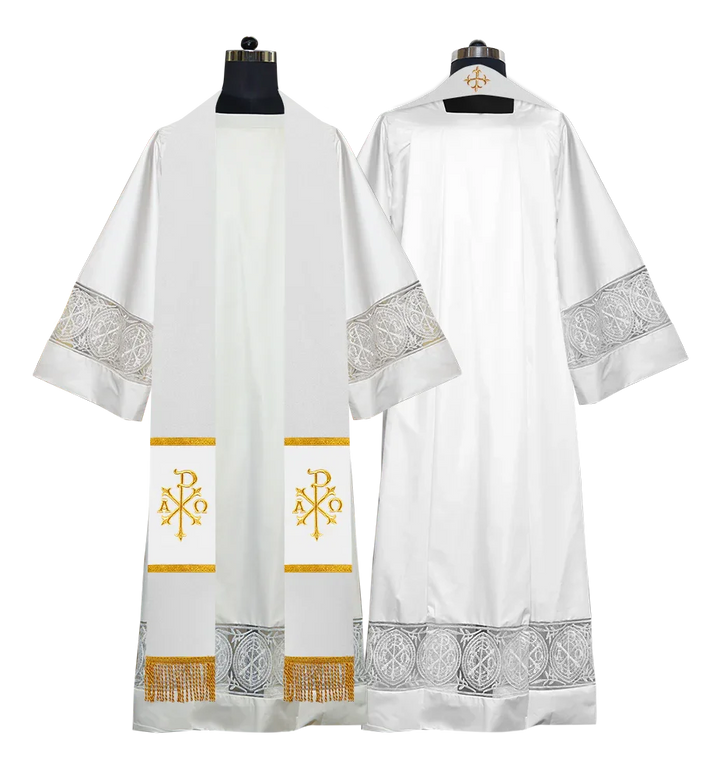 • Each stole features embroidered spiritual motifs, allowing selection from IHS, PAX, Agnus Dei, Jerusalem Cross, or Western Cross designs.